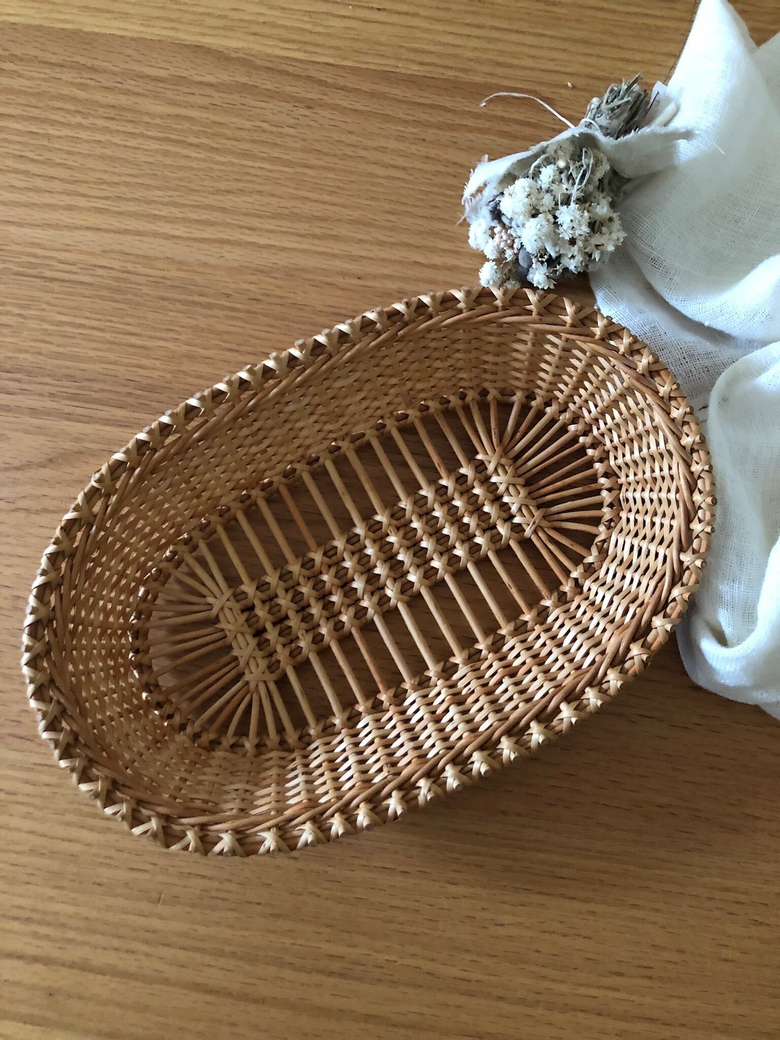 パンや、フルーツなどを入れるために作られた柳のバスケットになります。