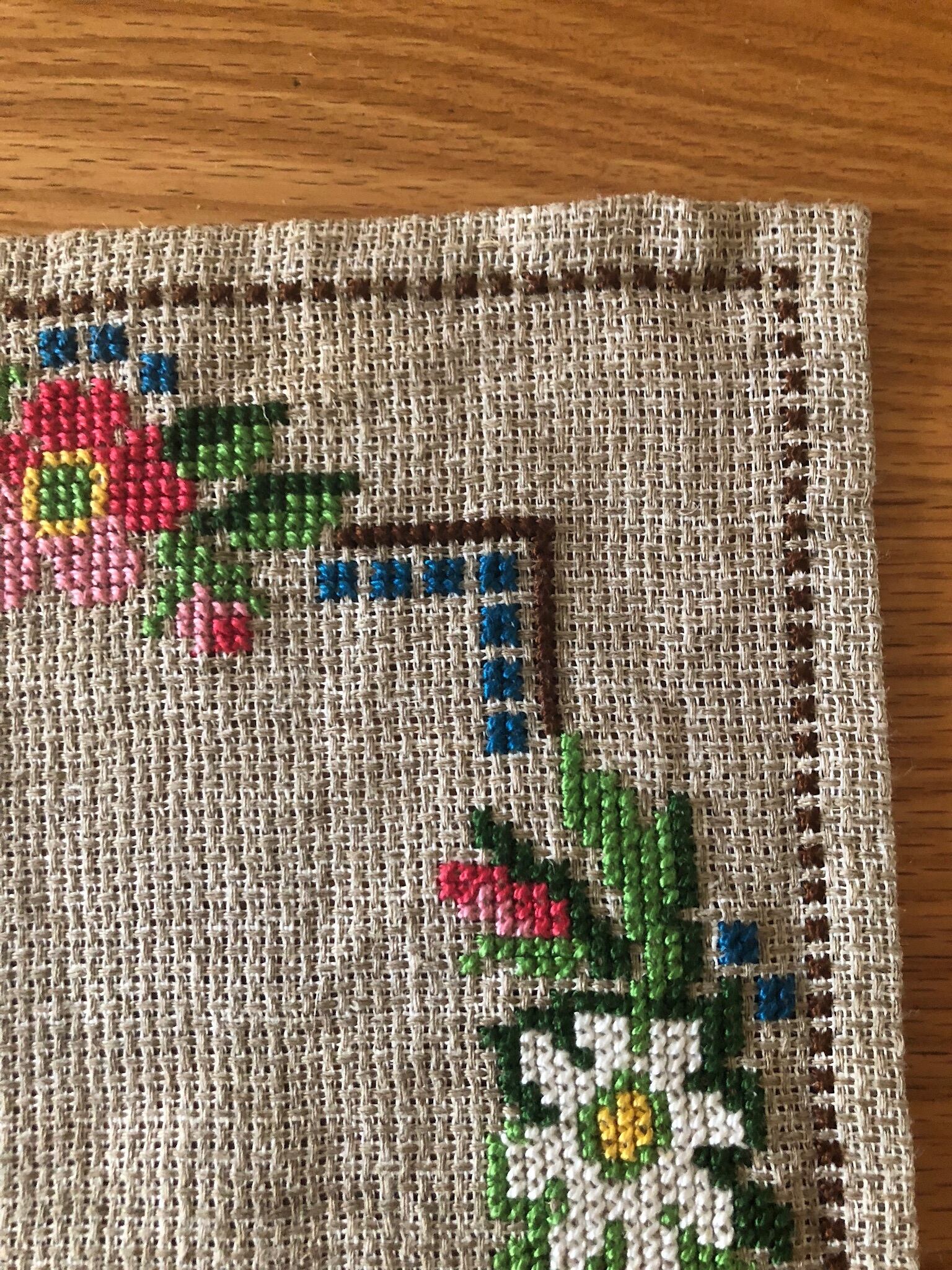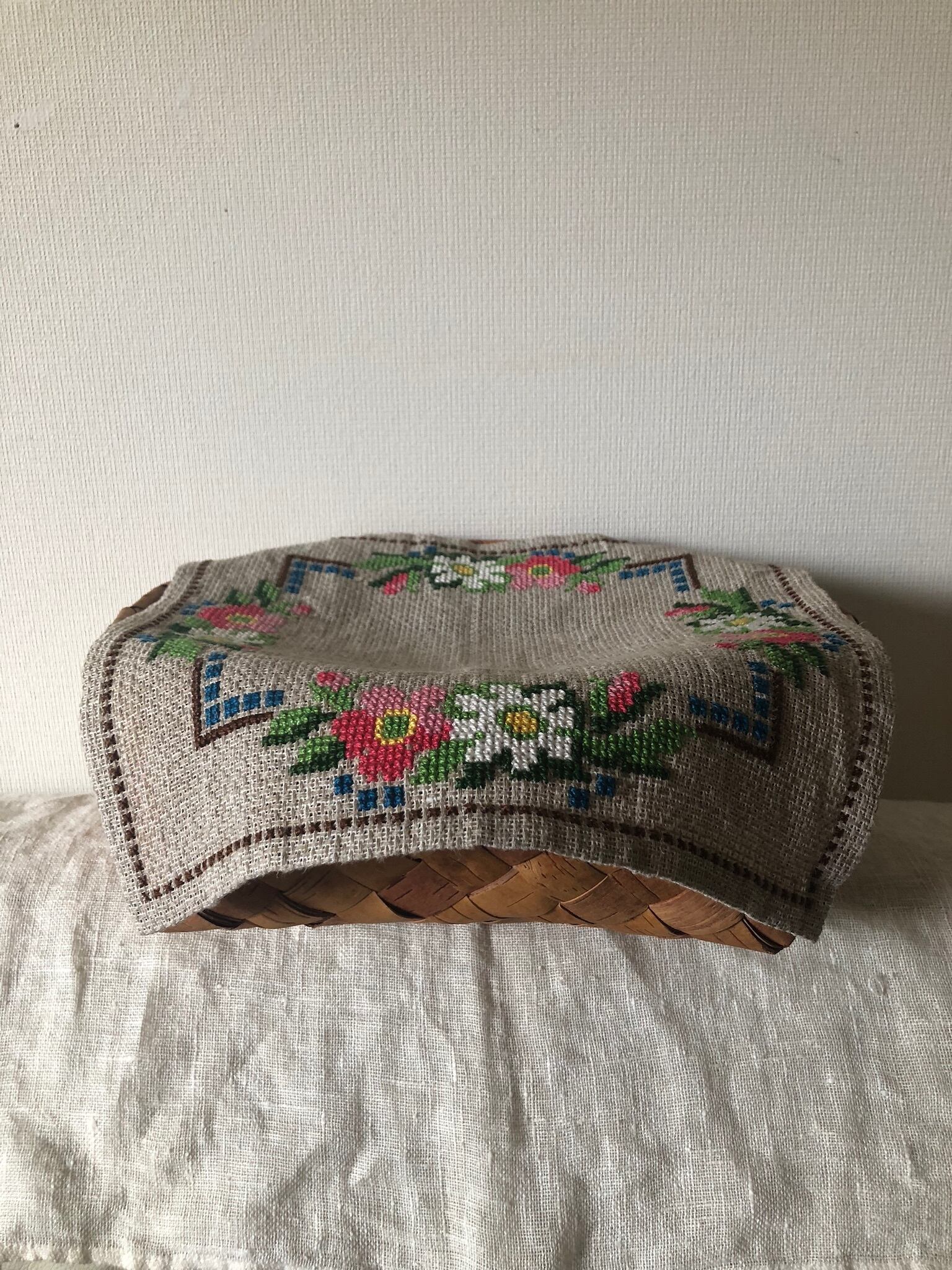 北欧 お花の刺繍リネンクロス ヴィンテージ