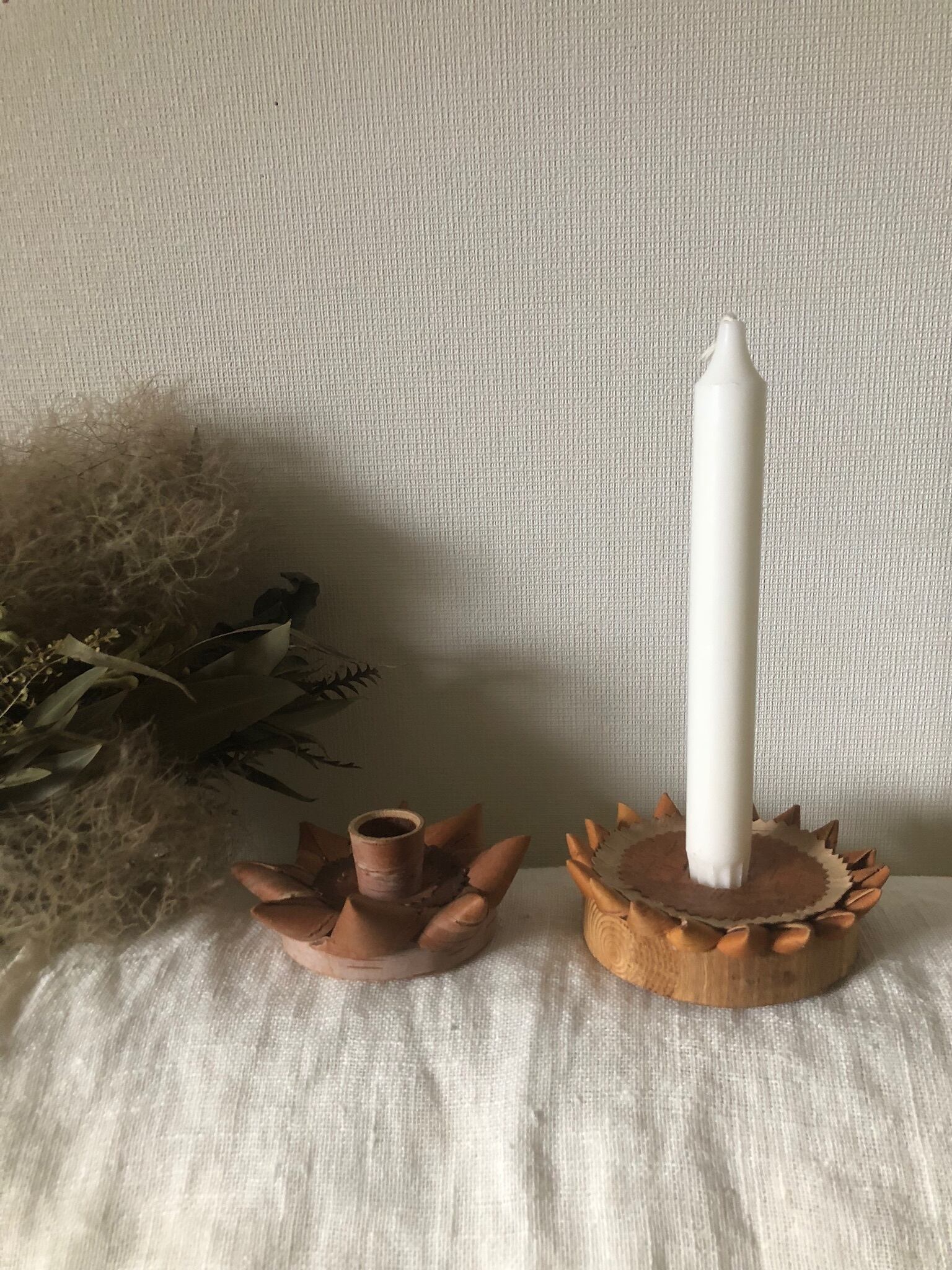 スウェーデンのヴィンテージの白樺のキャンドルスタンドです。1980年代のもの。