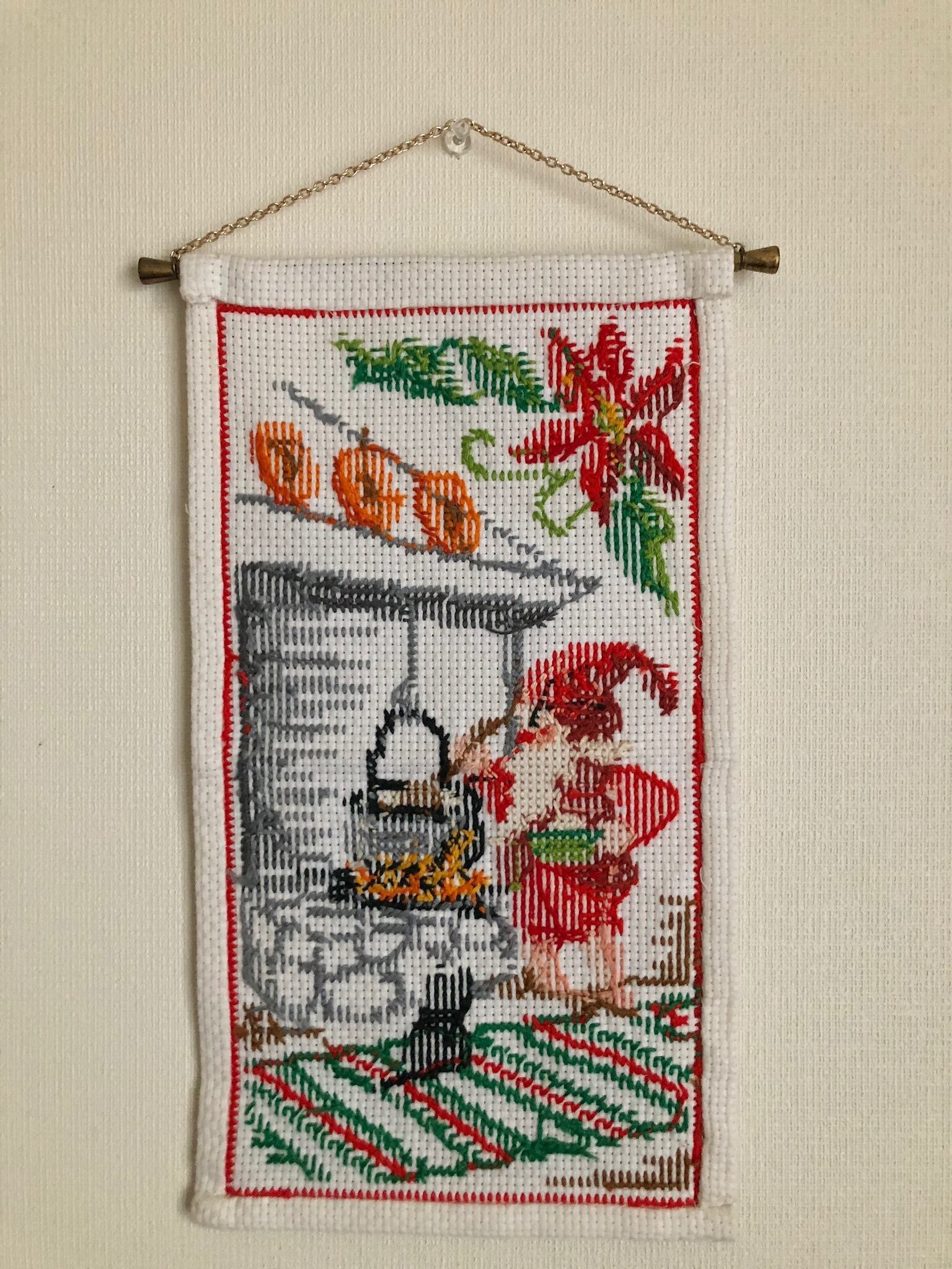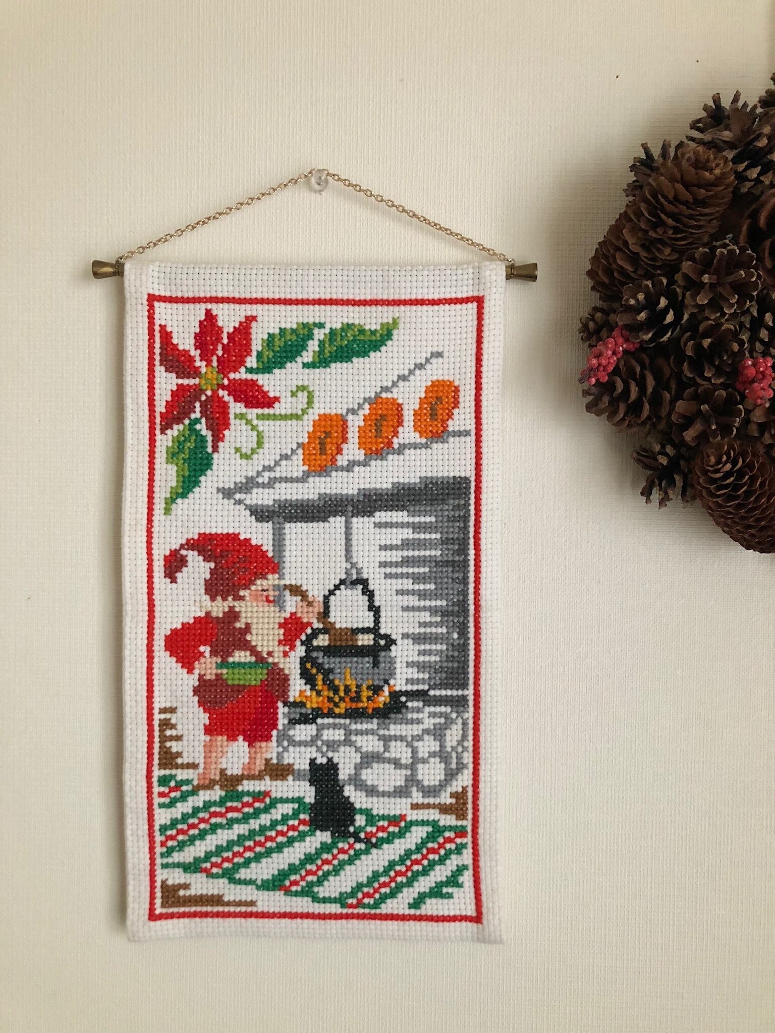 北欧 トムテ刺繍のタペストリー ヴィンテージ