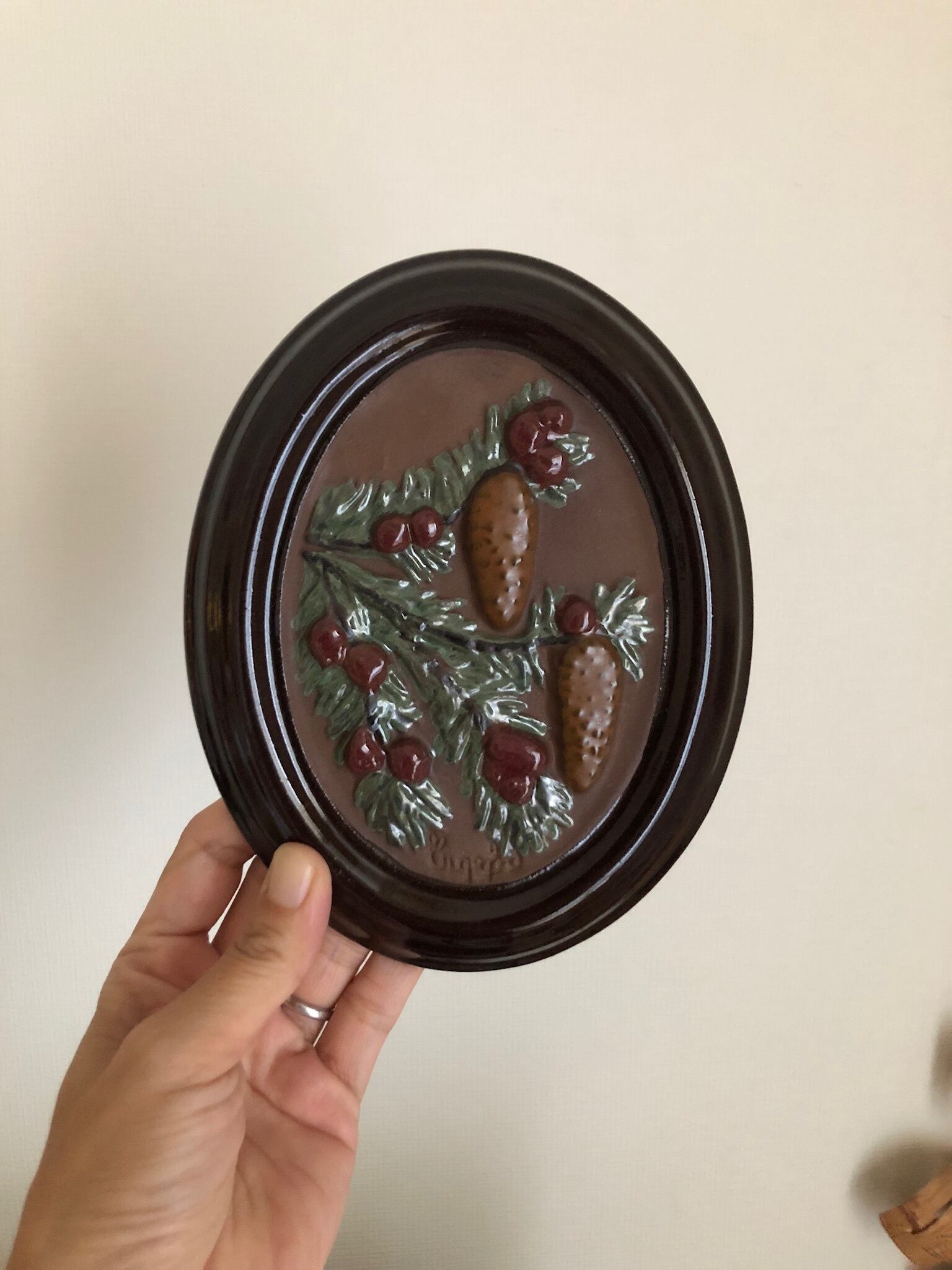 北欧 スウェーデン GABRIEL ヒイラギと松ぼっくりの陶板 ヴィンテージ