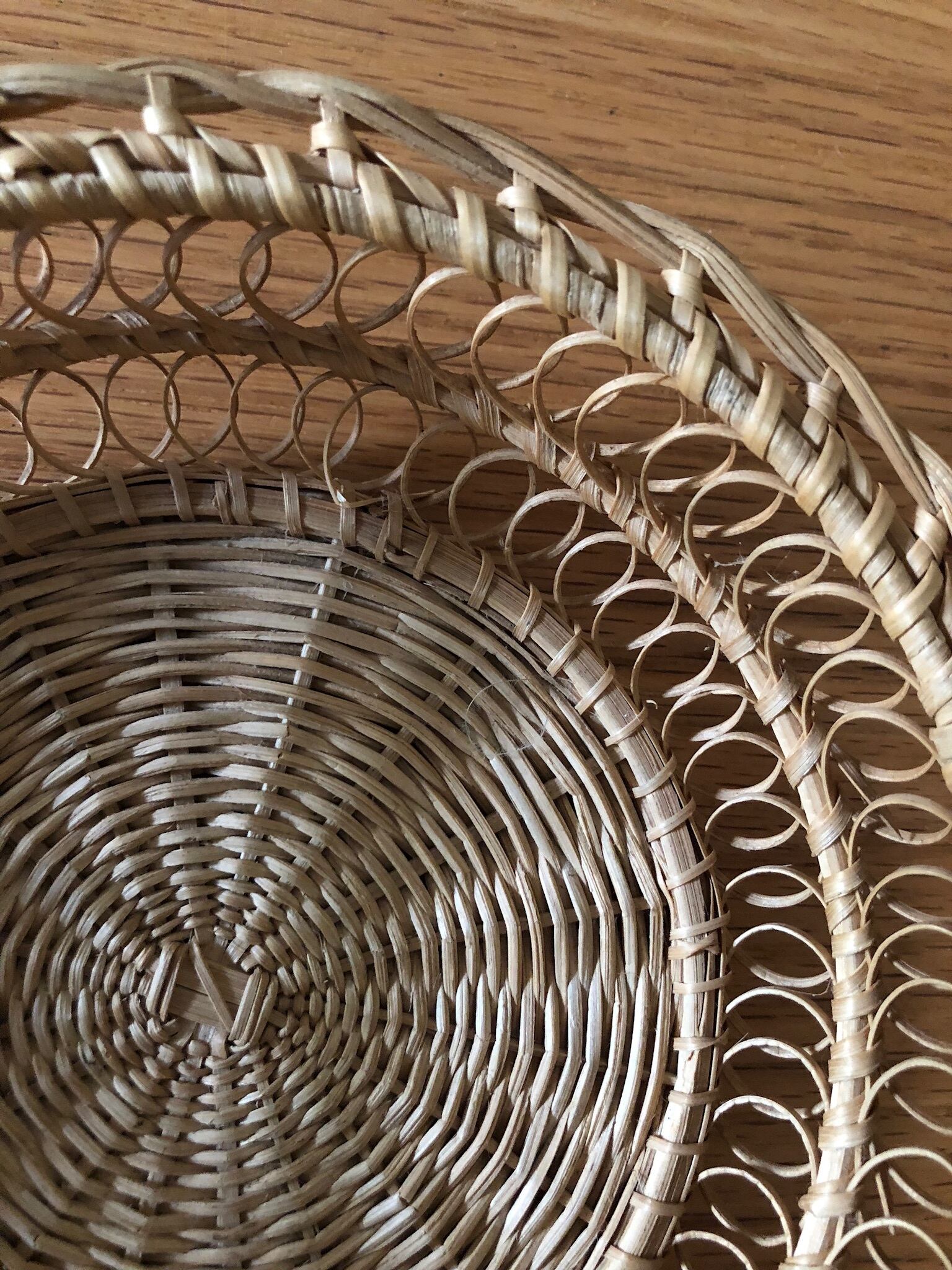 古いものなので、よく見ると、籐の切れや小さな汚れが見られる箇所がございます。写真でご確認ください。