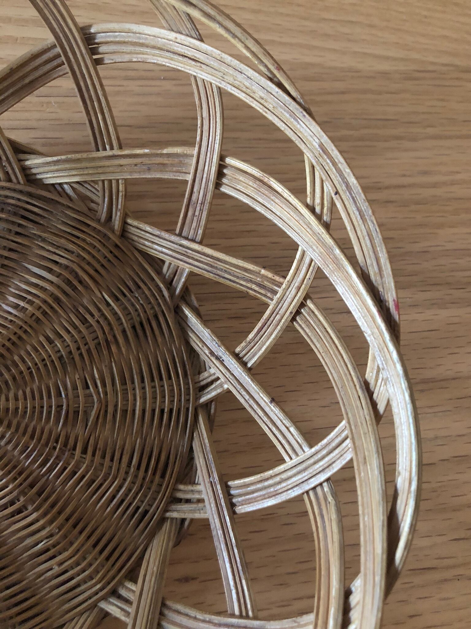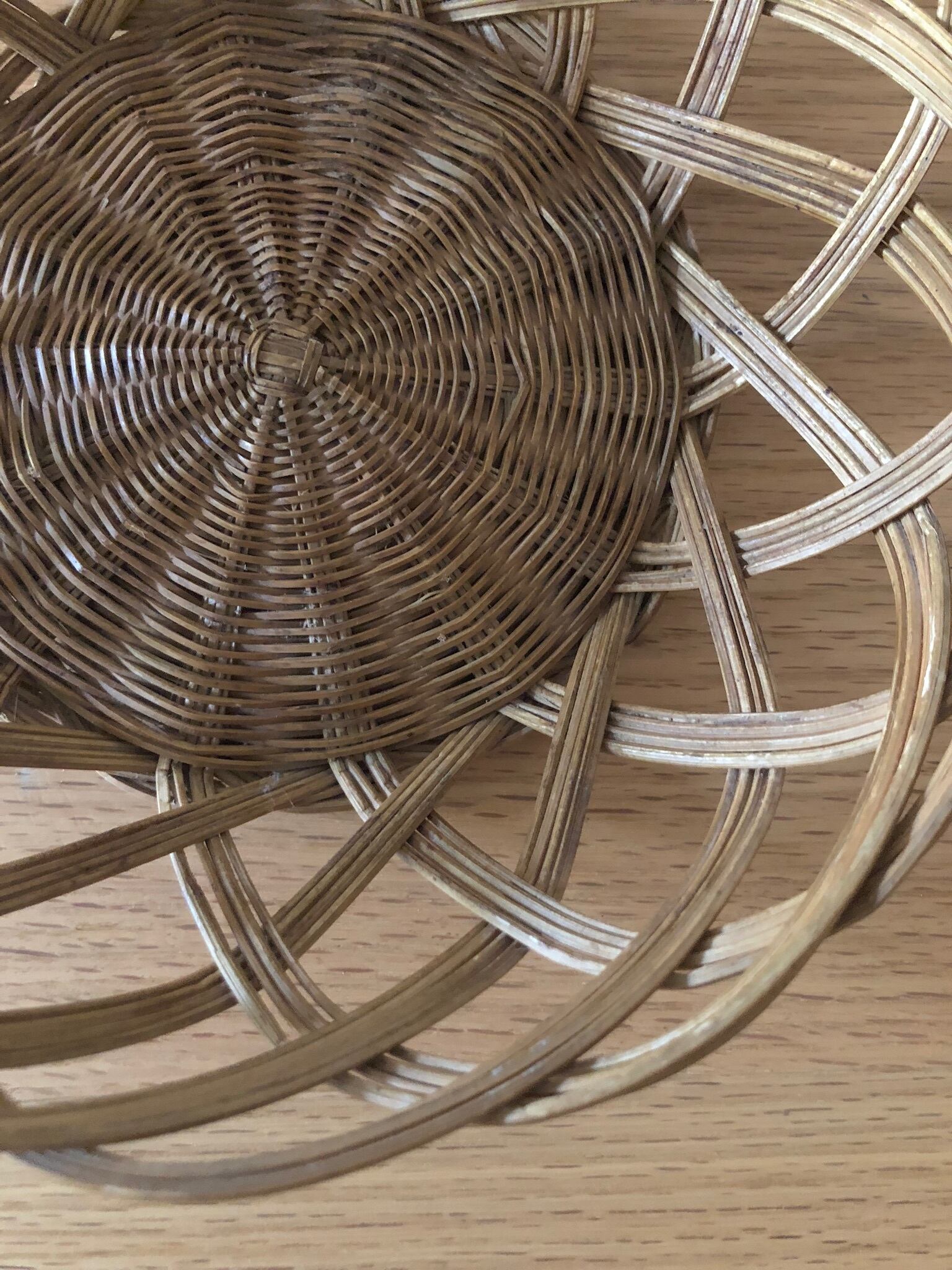 古いものなので、よく見ると、籐の切れや小さな汚れが見られる箇所がございます。写真でご確認ください。