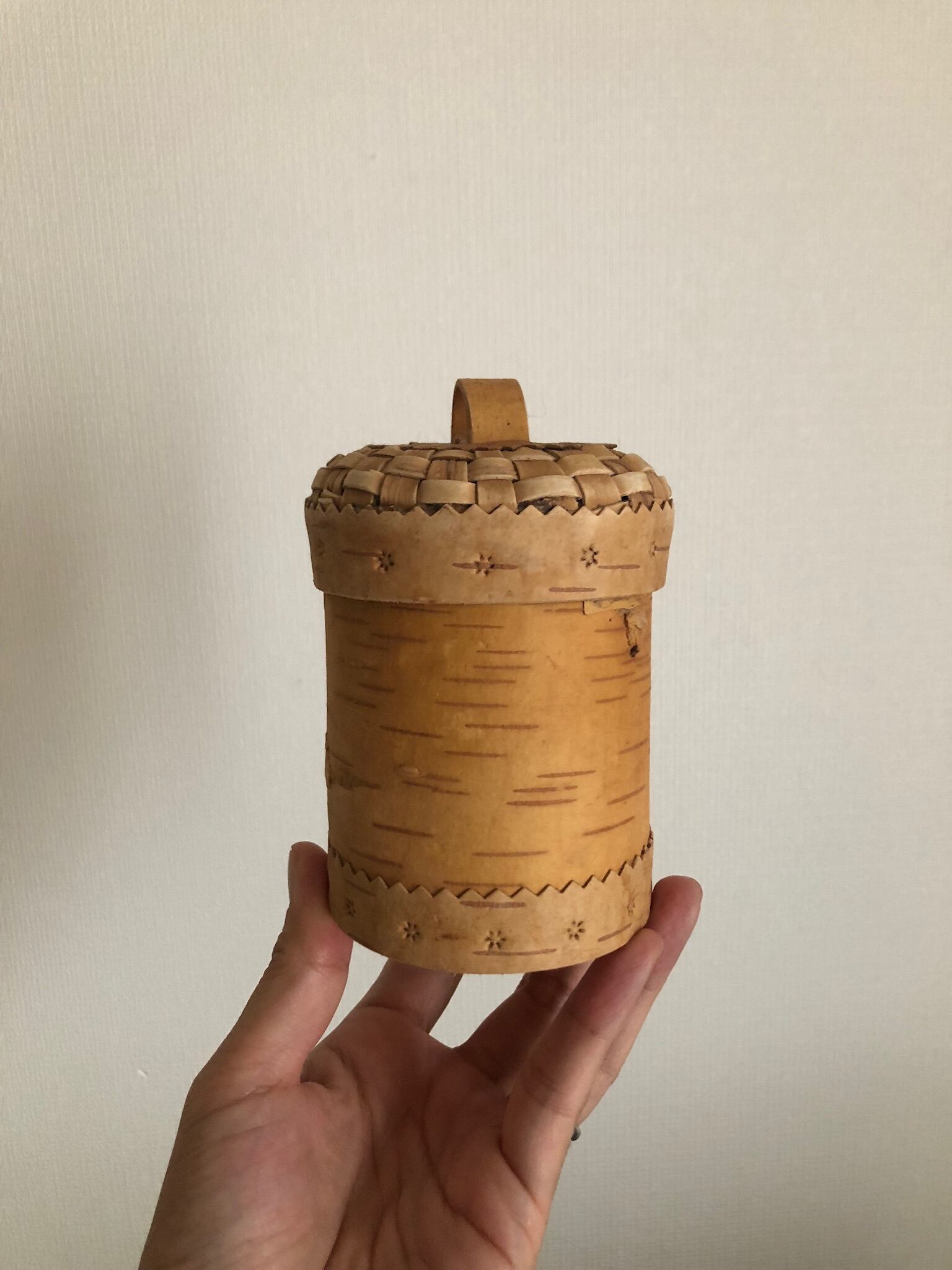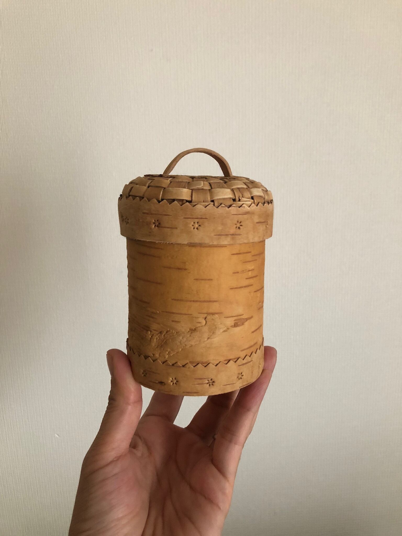 ロシア 白樺編みの筒型キャニスター S