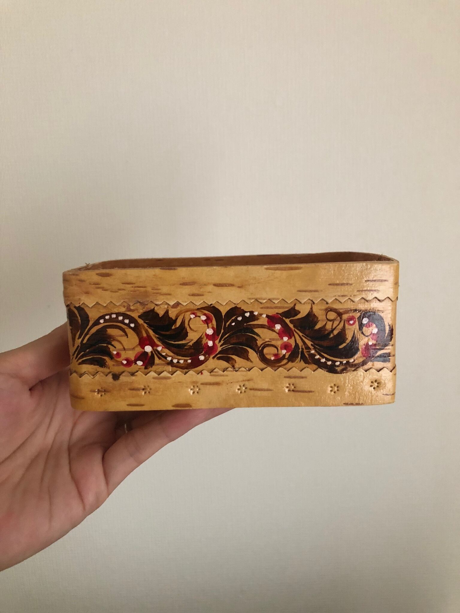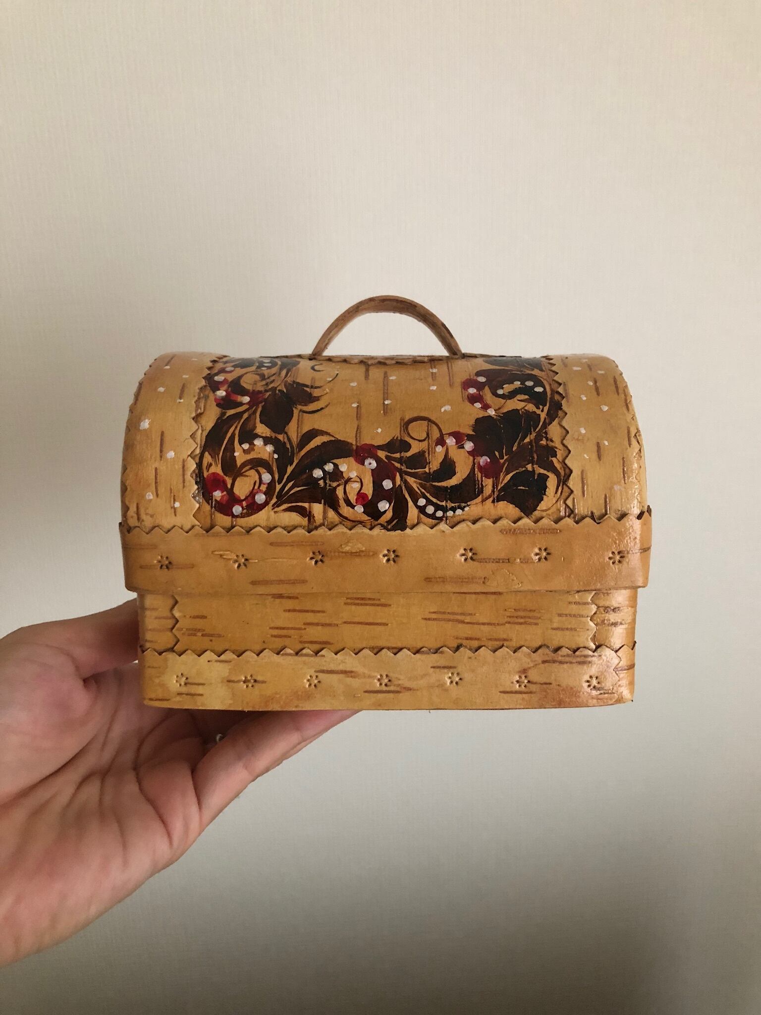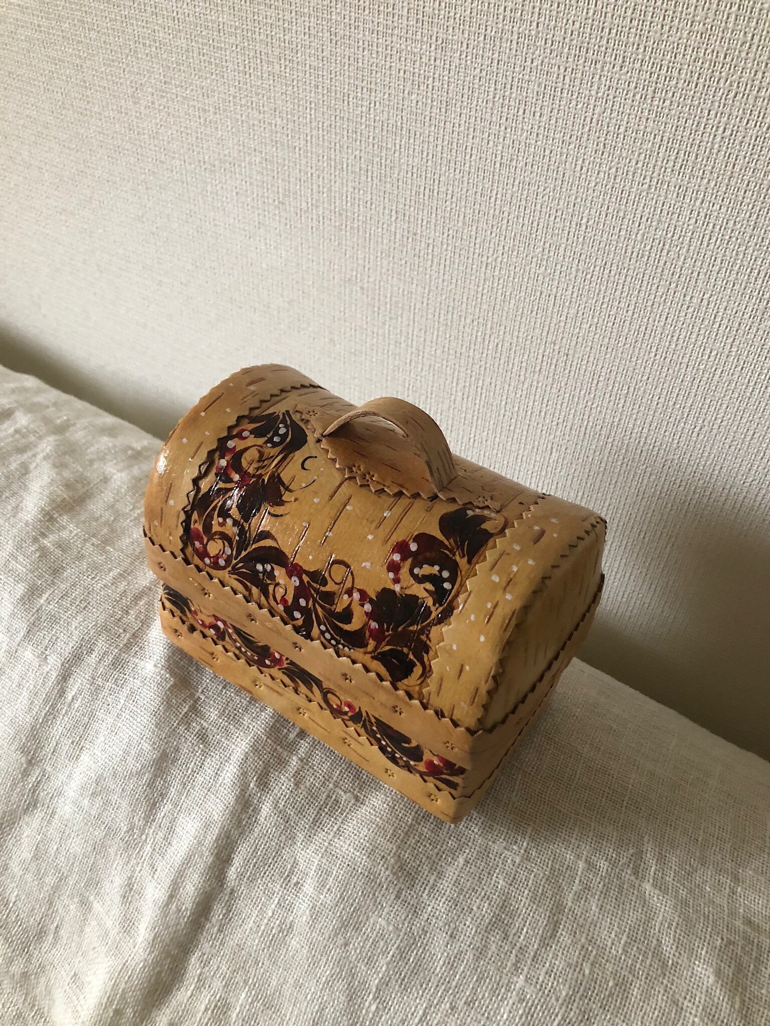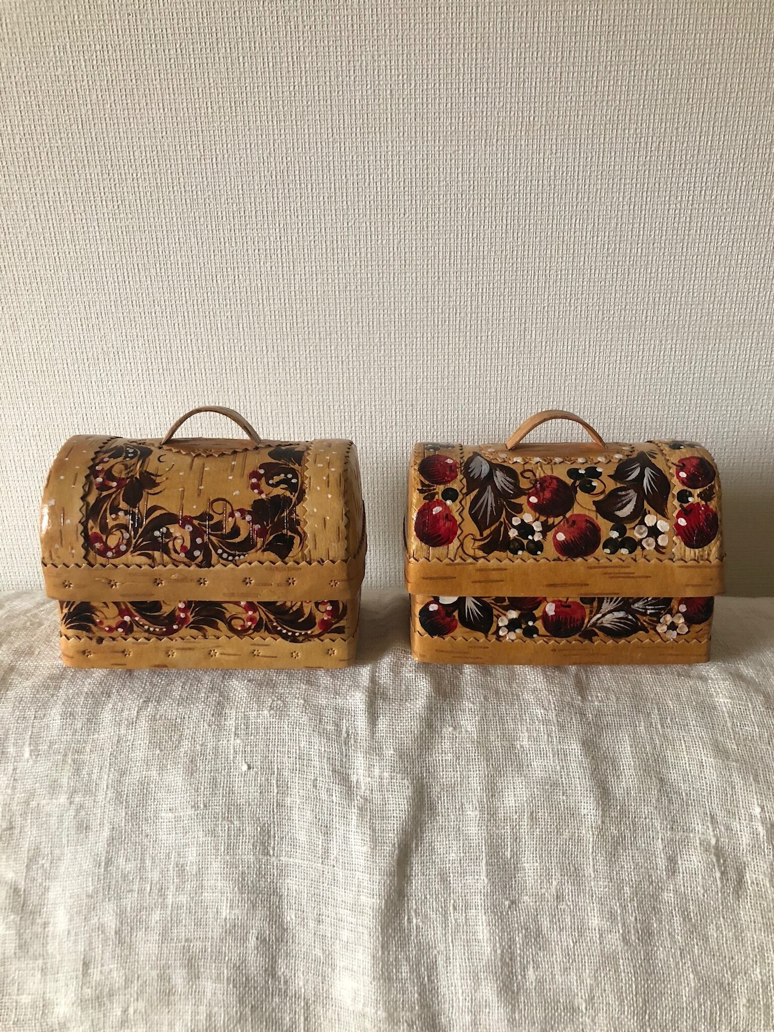 ロシア 白樺のミニトランク型のキャニスター 絵付けタイプ