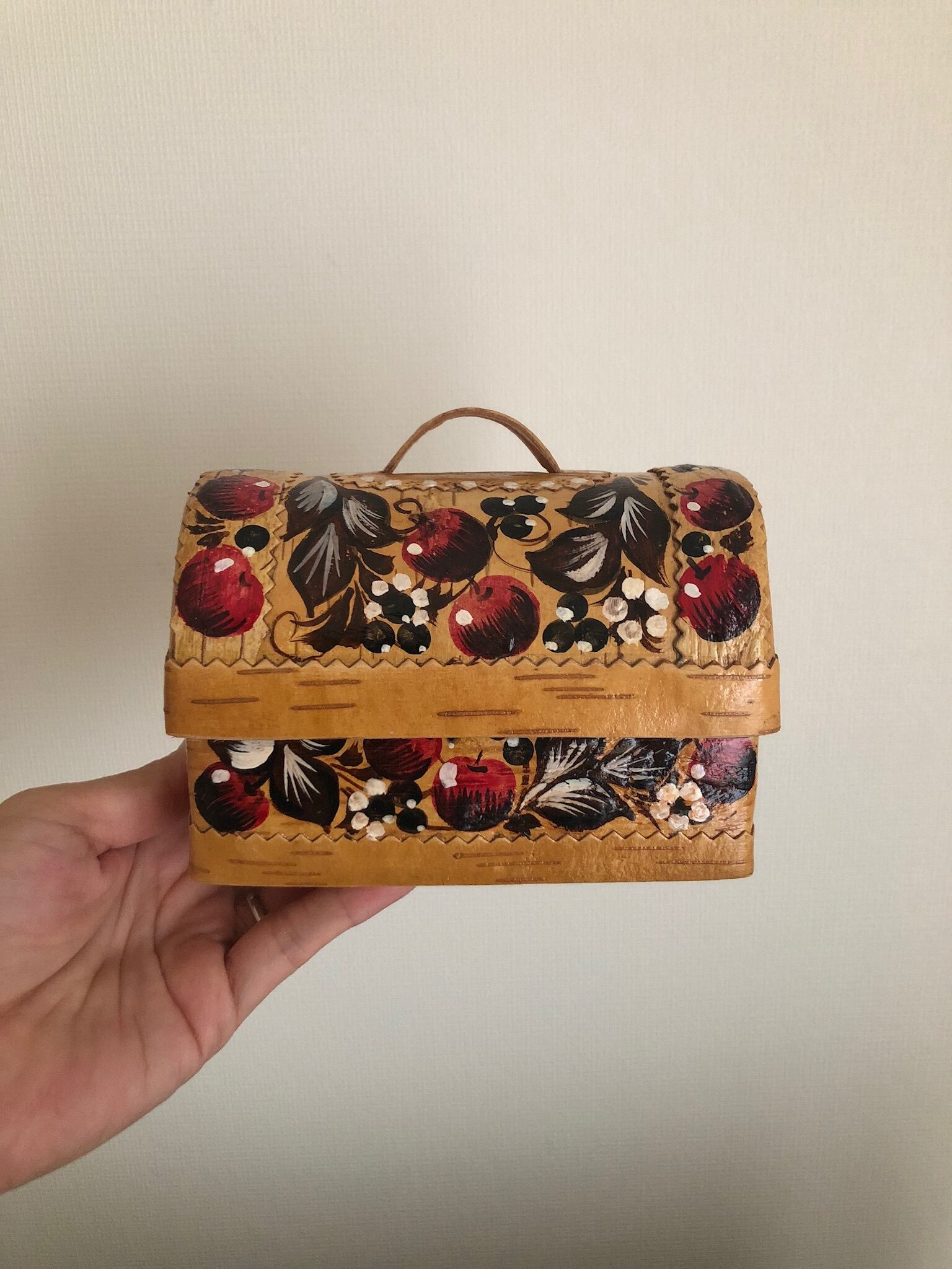 チェリー ロシア 白樺のミニトランク型のキャニスター 絵付けタイプ