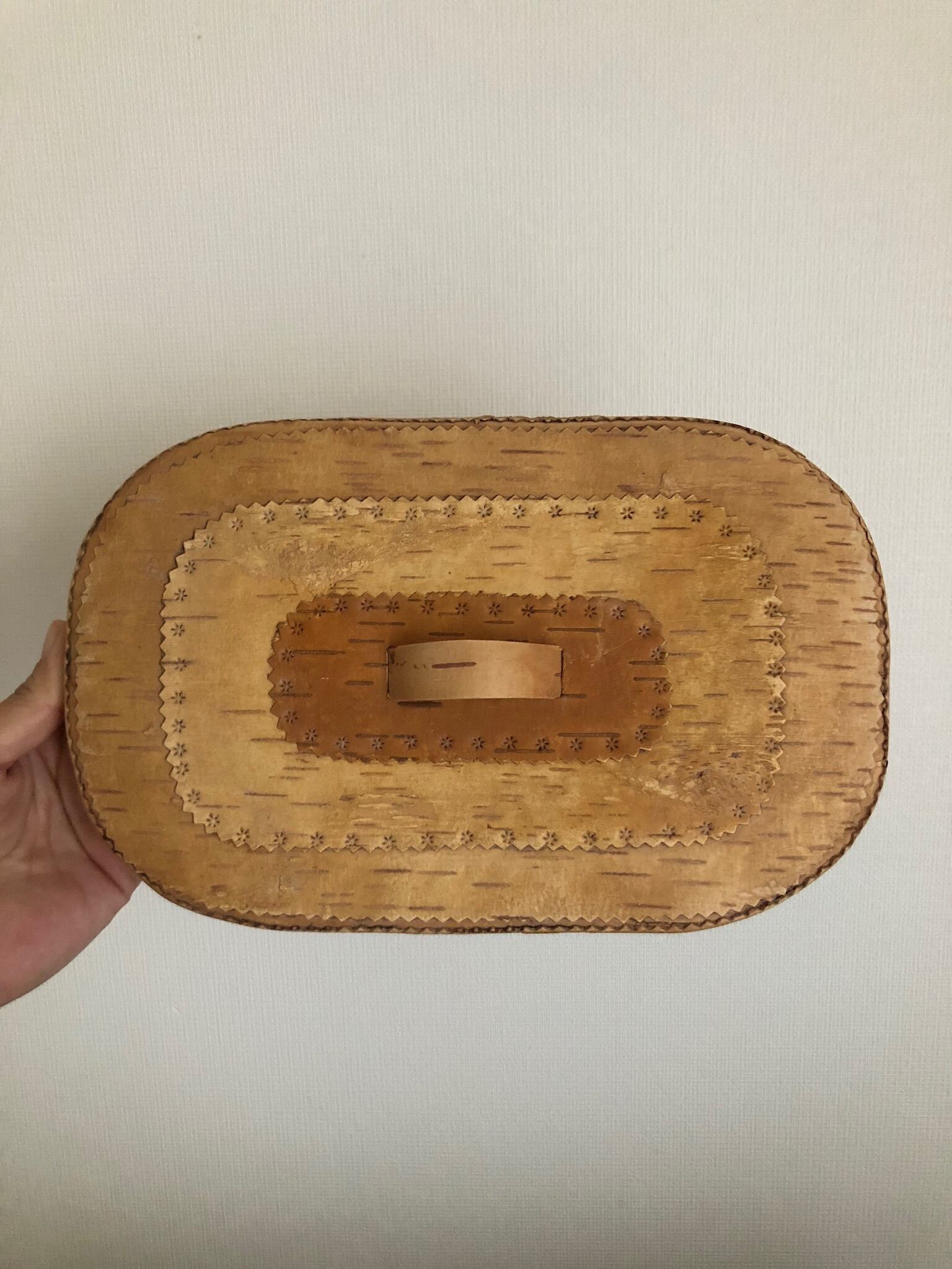 細かい白樺編みが、とても凝っていて可愛らしい大きめのキャニスター。