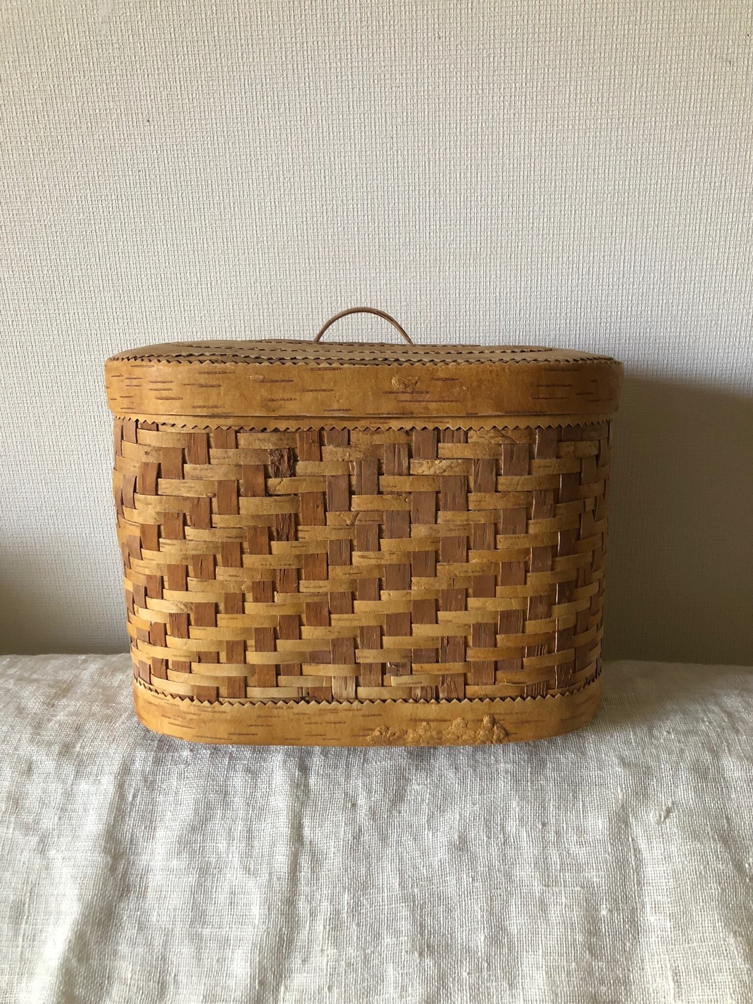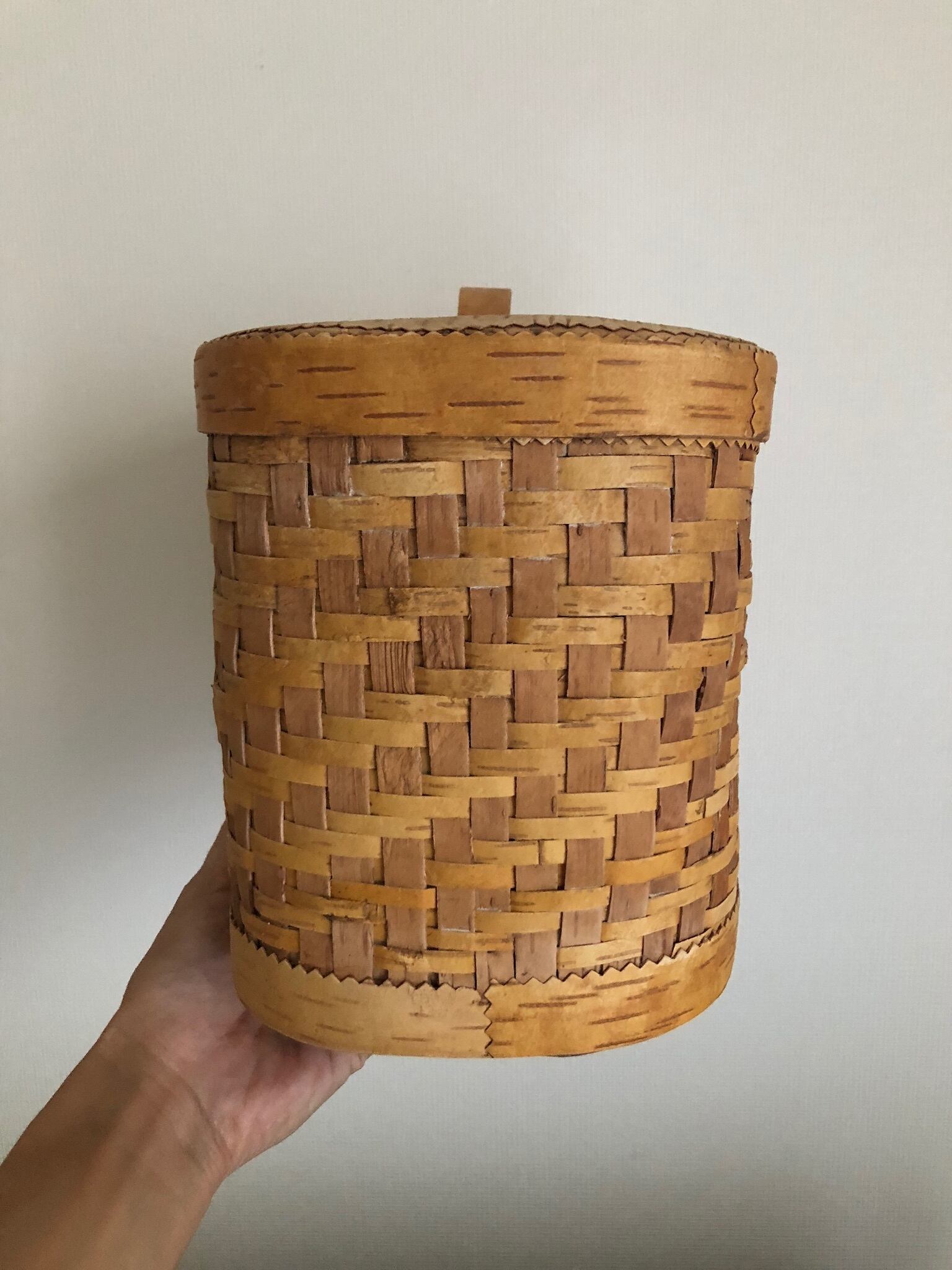 ロシア 白樺編みのキャニスター 大