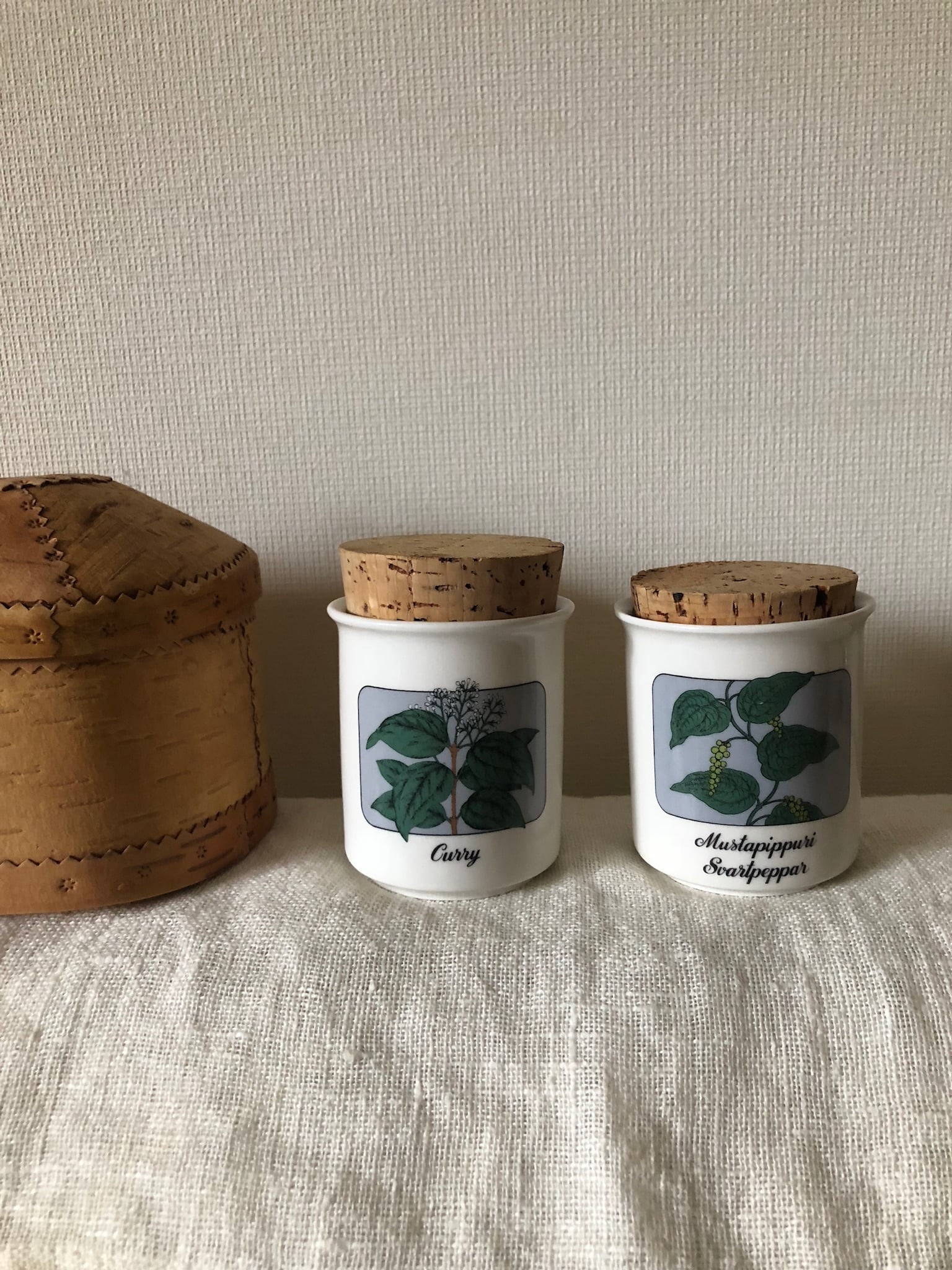 フィンランド、ARABIA社のコルクの蓋付きスパイスジャーになります。