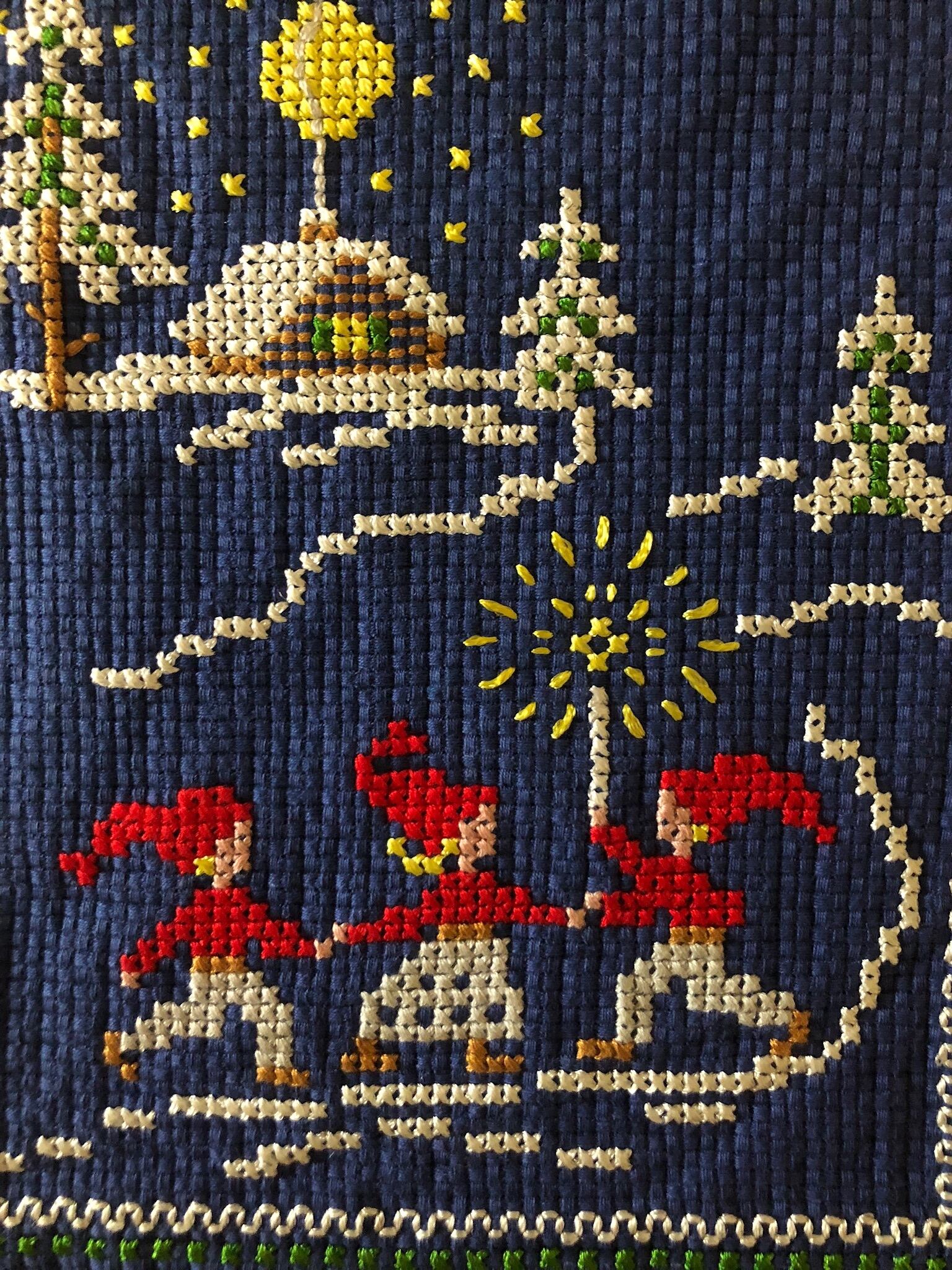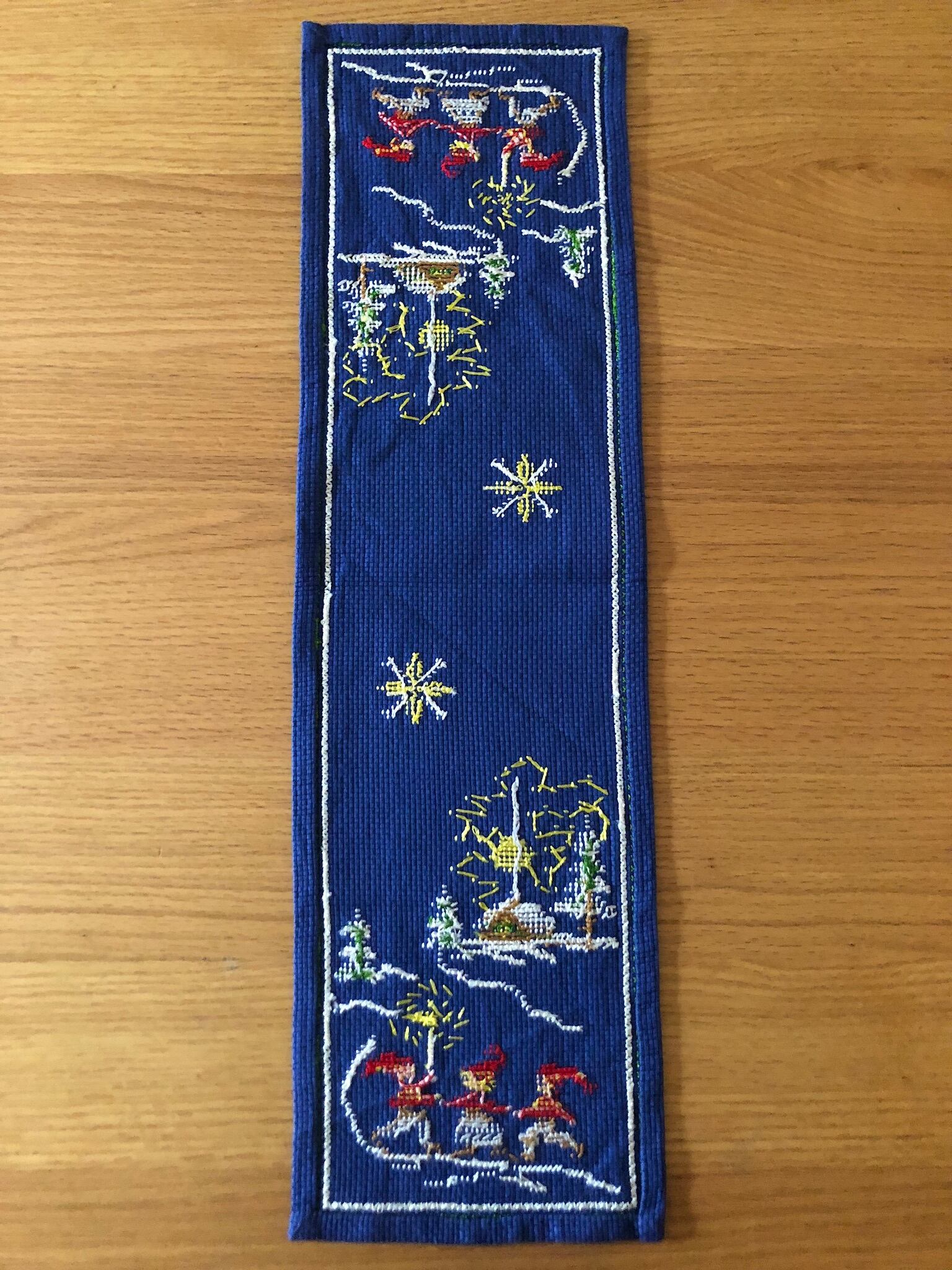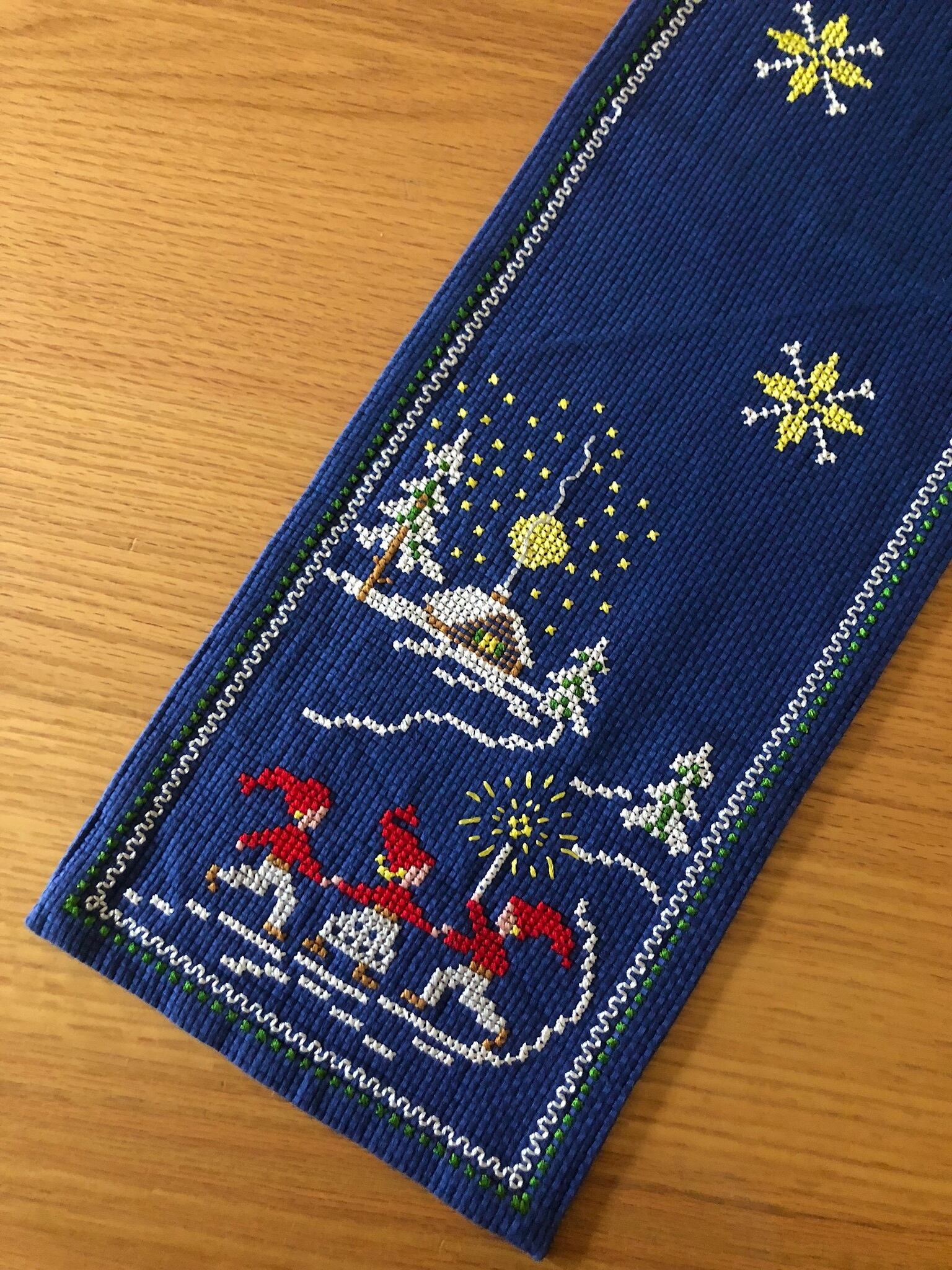 北欧 トムテと雪景色の刺繍ロングクロス ヴィンテージ