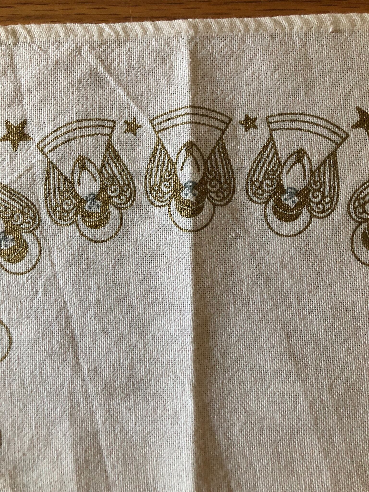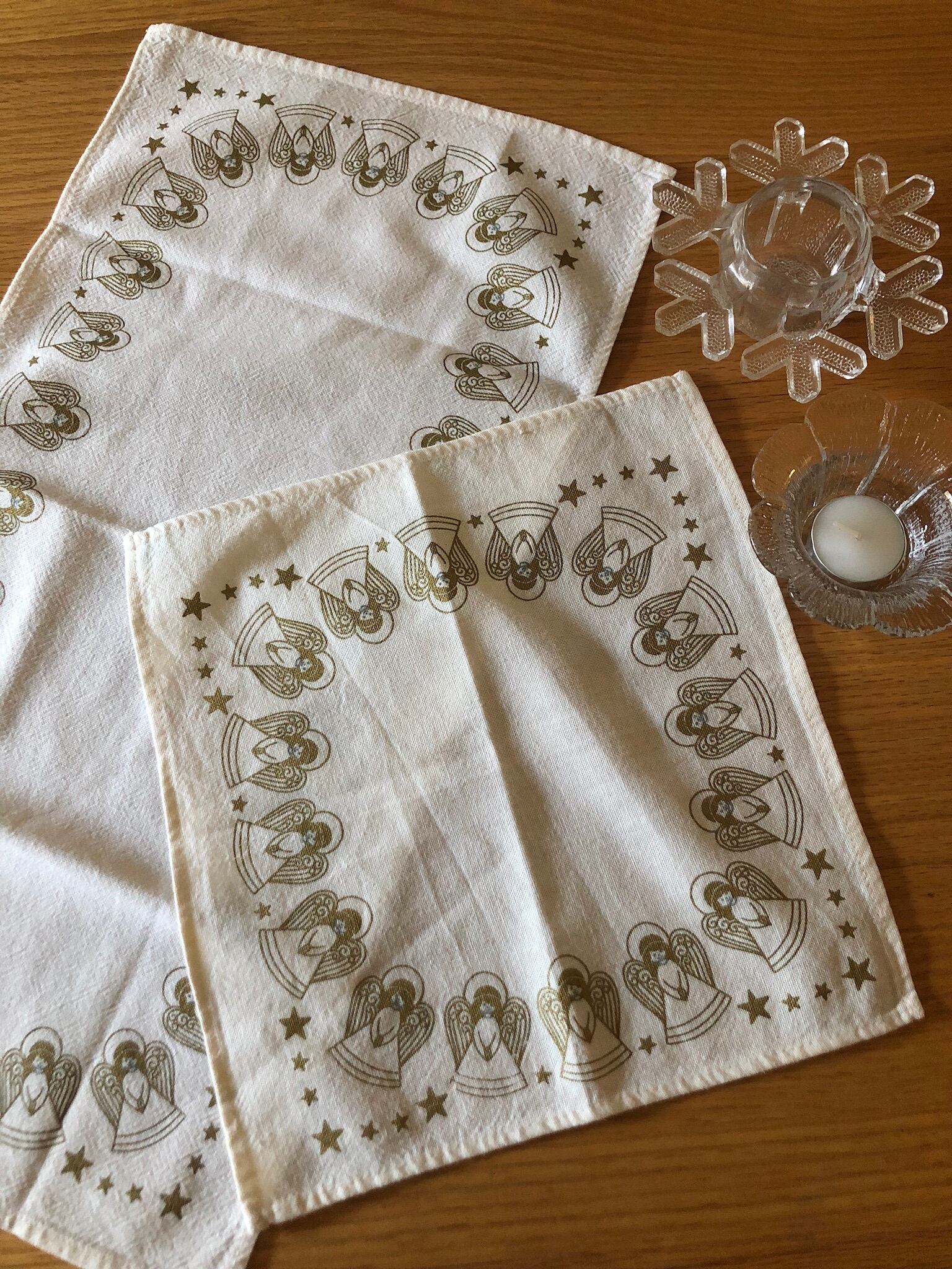 白いコットン生地に、たくさんの天使と星の絵柄が可愛らしいクロスになります。