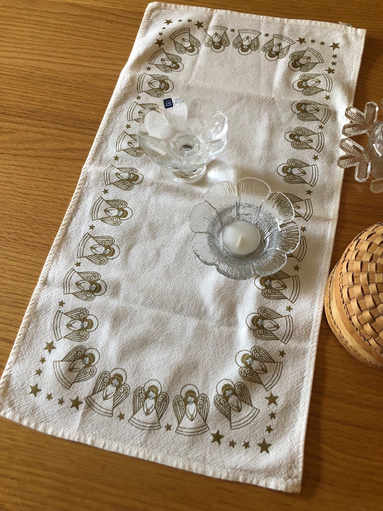 棚やテーブルの上にさらっと敷いたり、キャンドルホルダーの下に敷いたりと、いろいろ使い勝手のいいサイズです。