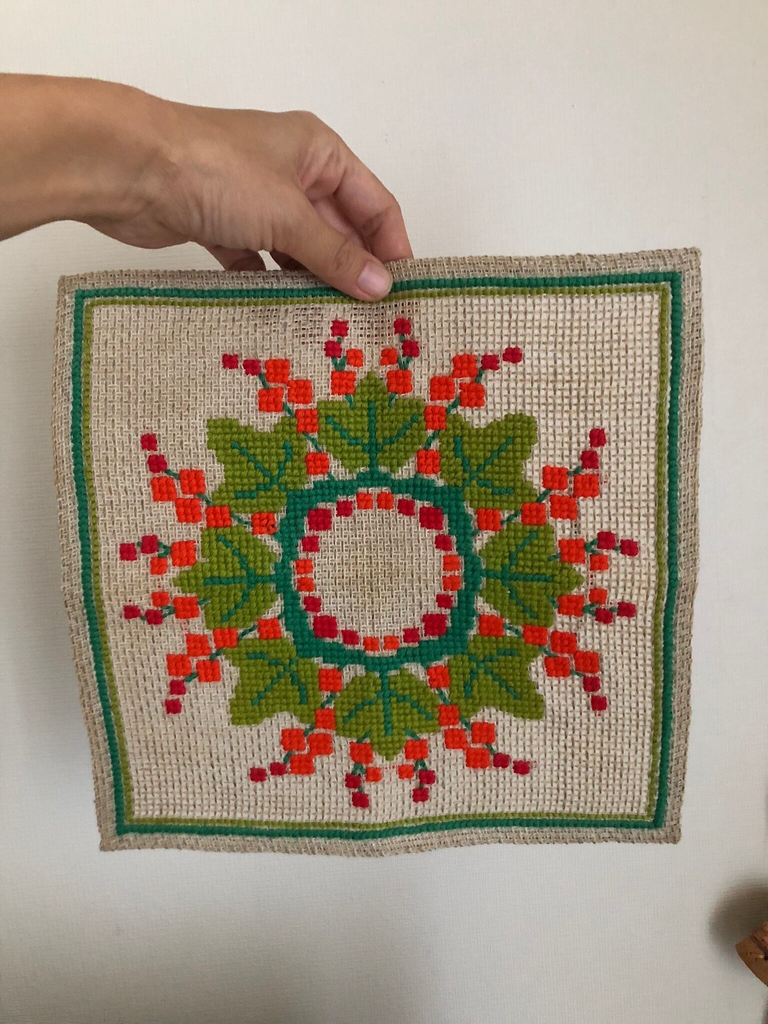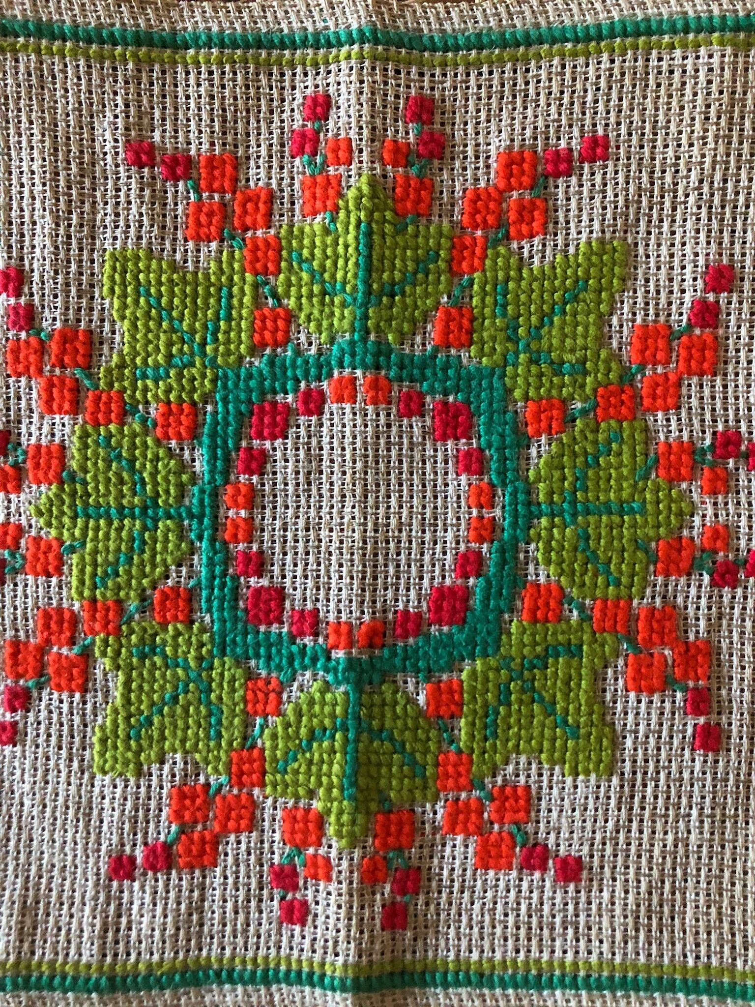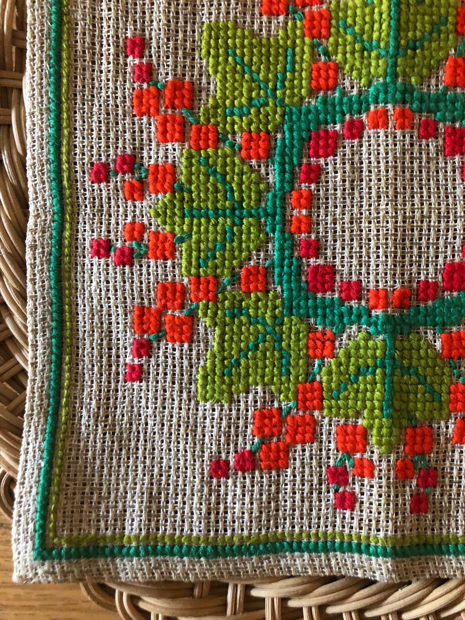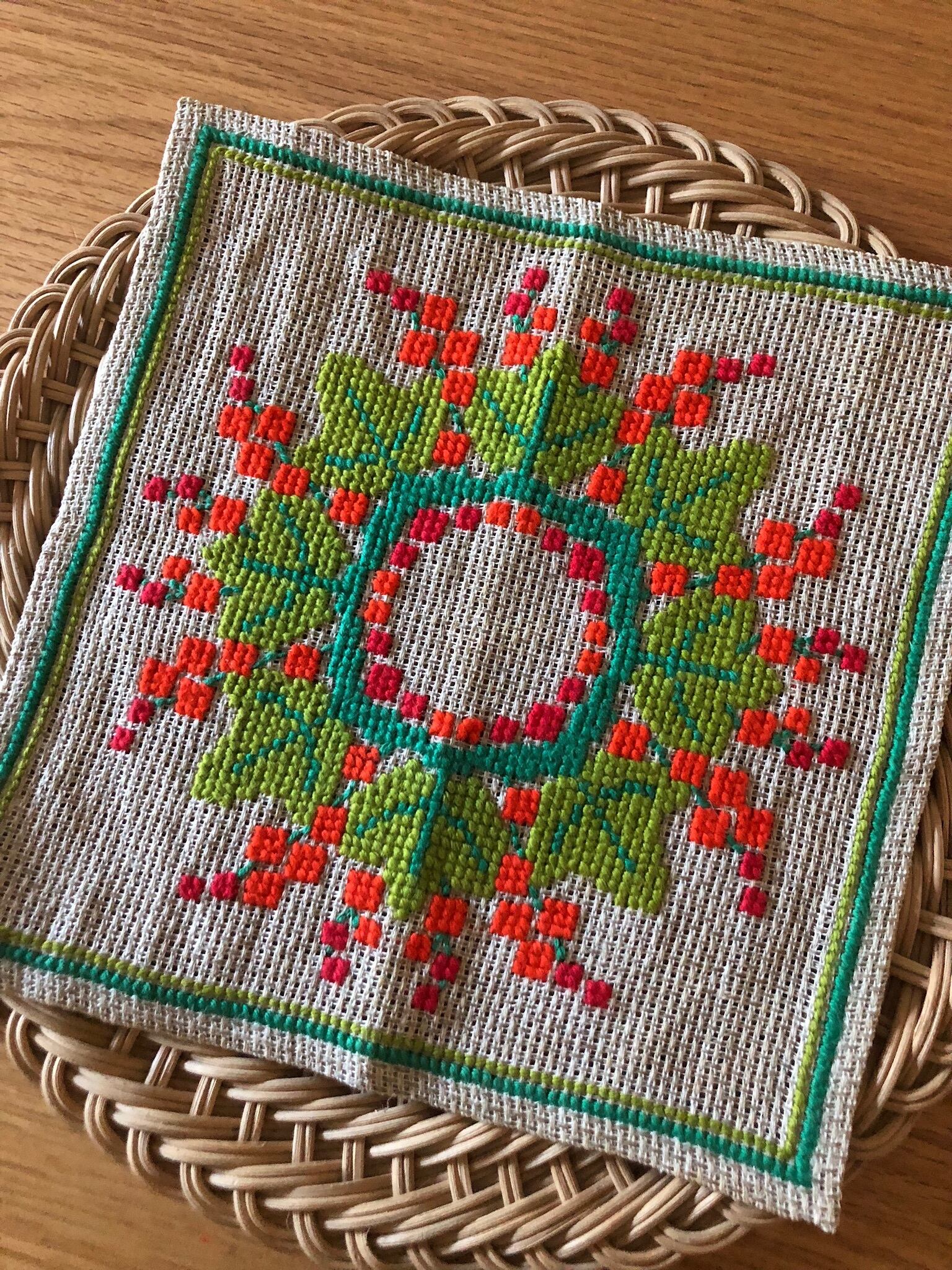 北欧 リース刺繍リネンクロス ヴィンテージ