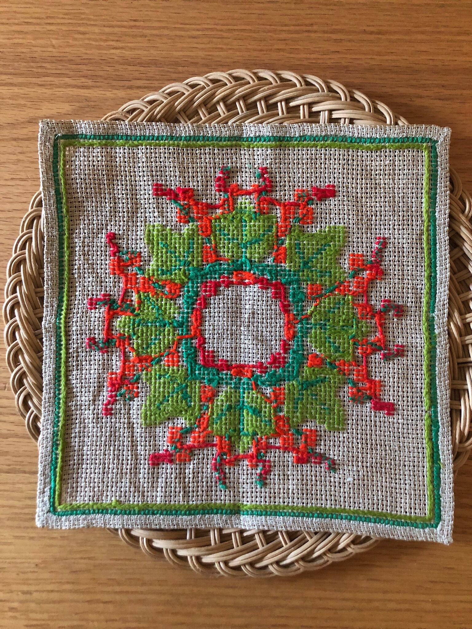 ◉クリスマスセット 商品説明◉単品でもご購入可能 北欧 リース刺繍リネンクロス ヴィンテージ