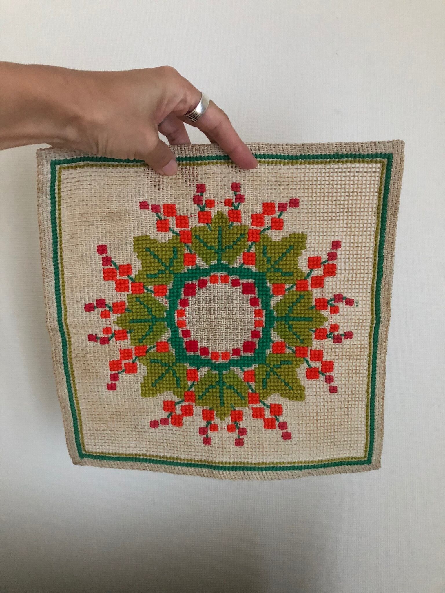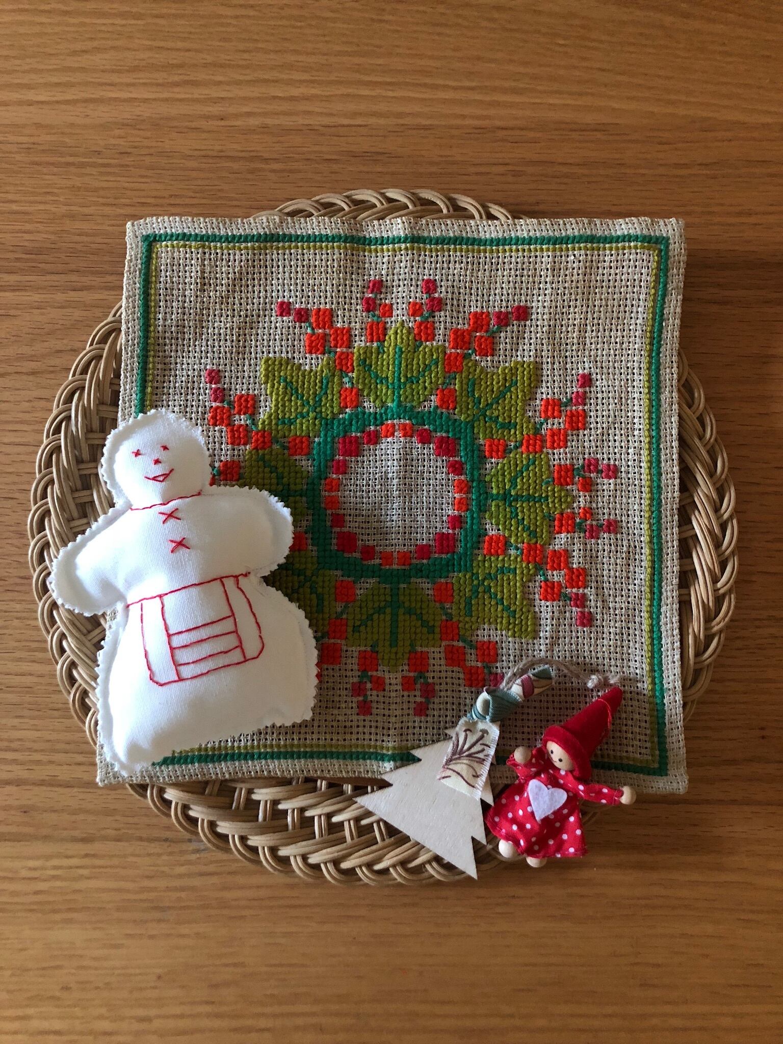 ♫クリスマス2点セット♫ リース刺繍リネンクロス/ジンジャーマン女の子のオーナメント
