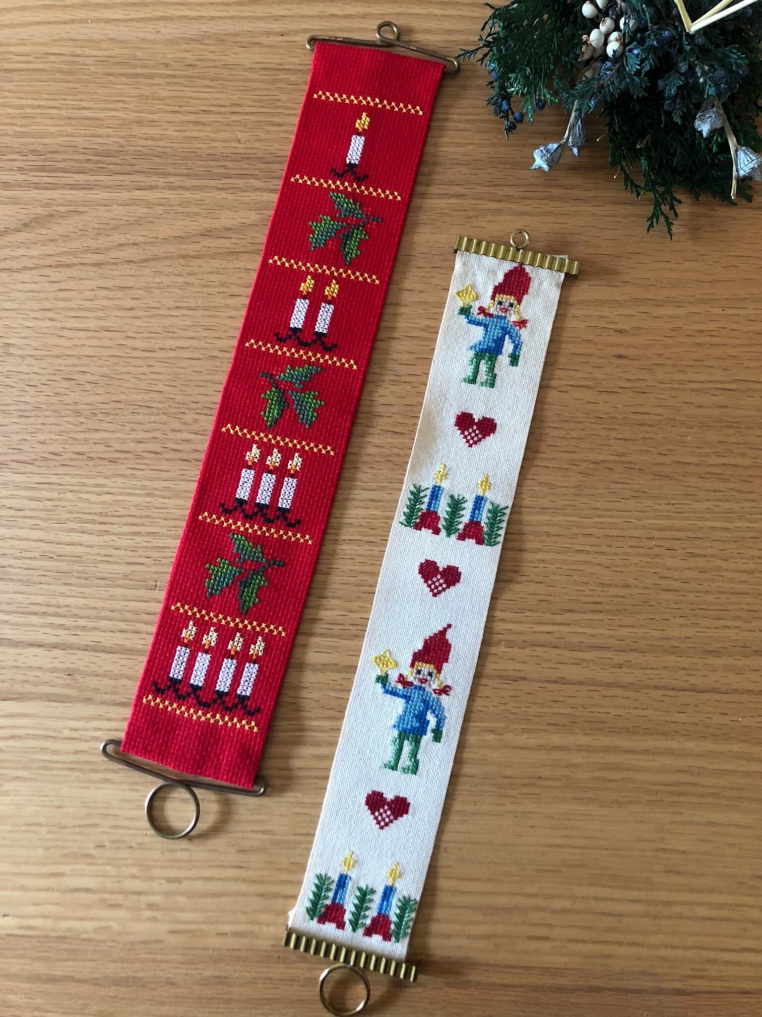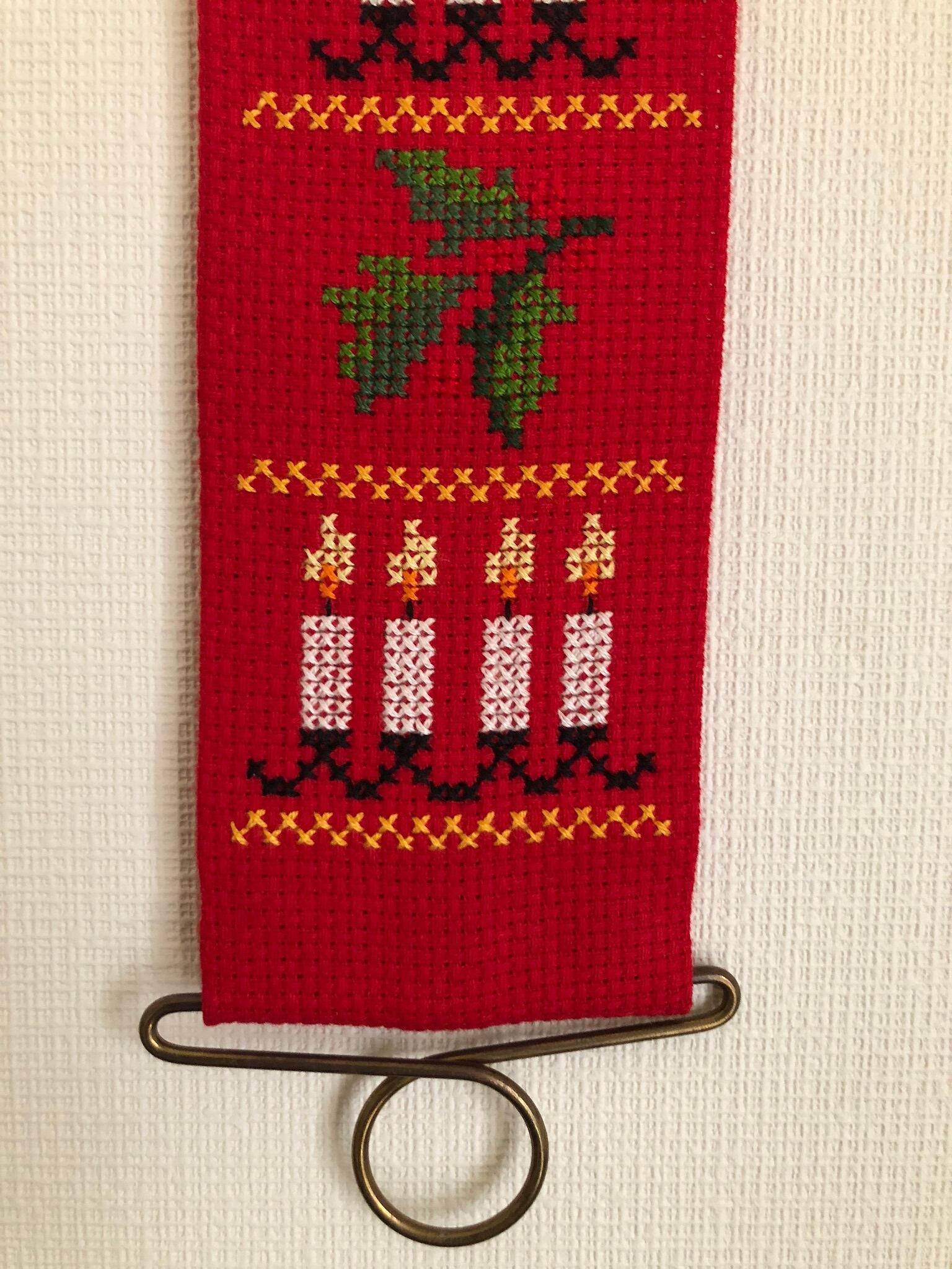 北欧 キャンドルとヒイラギ刺繍 タペストリー ヴィンテージ