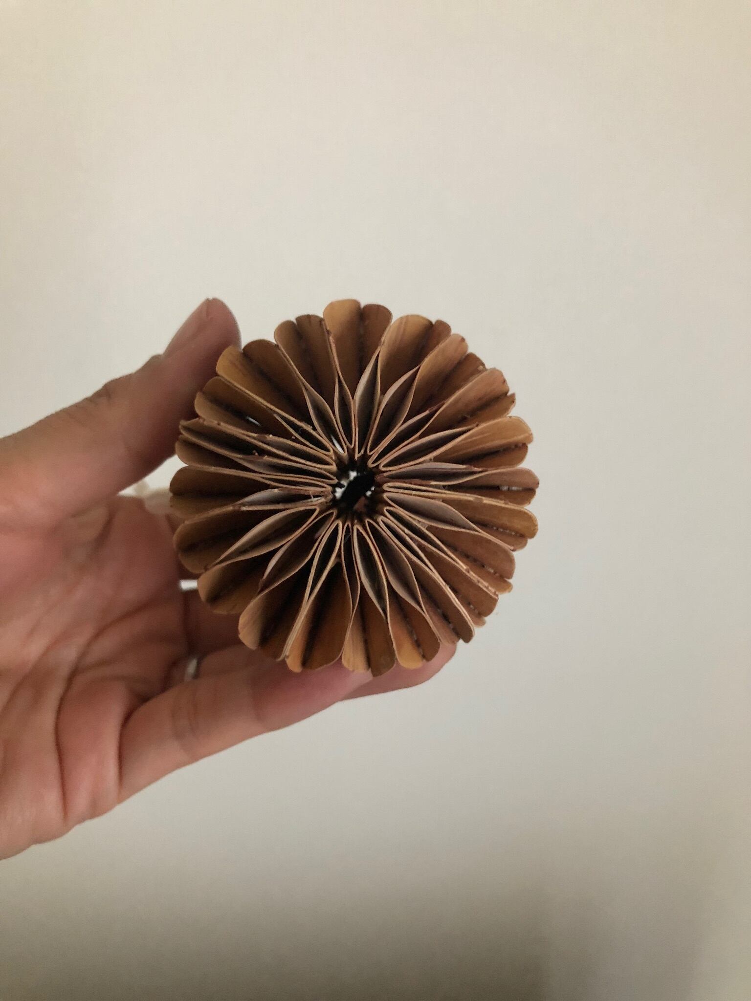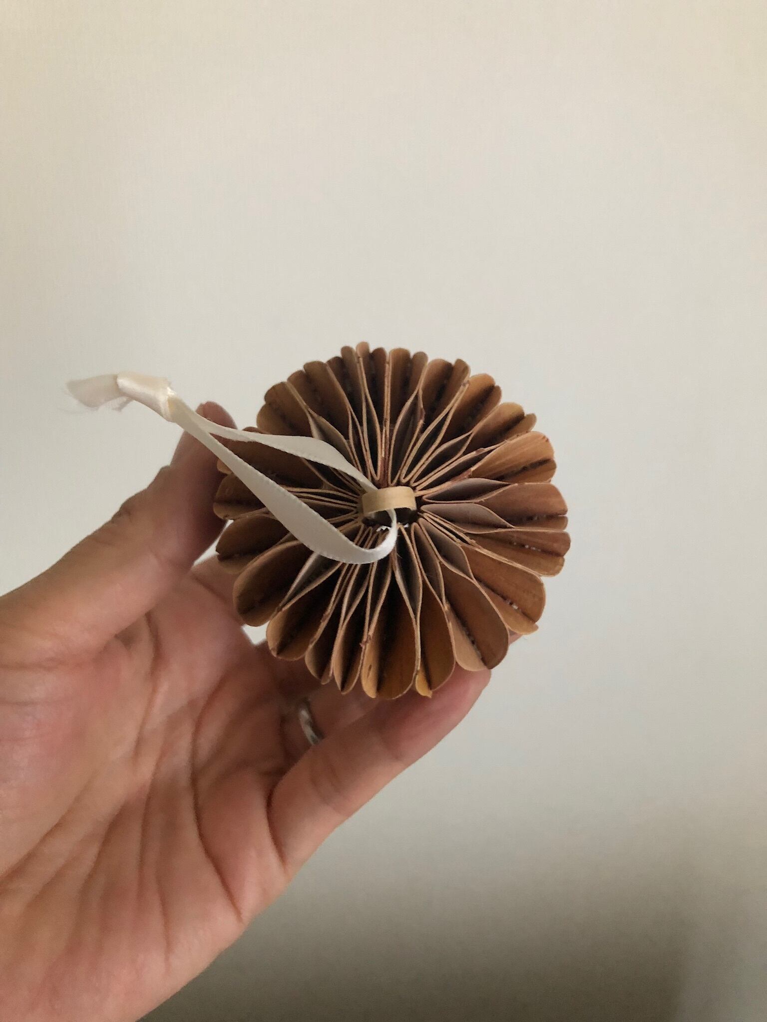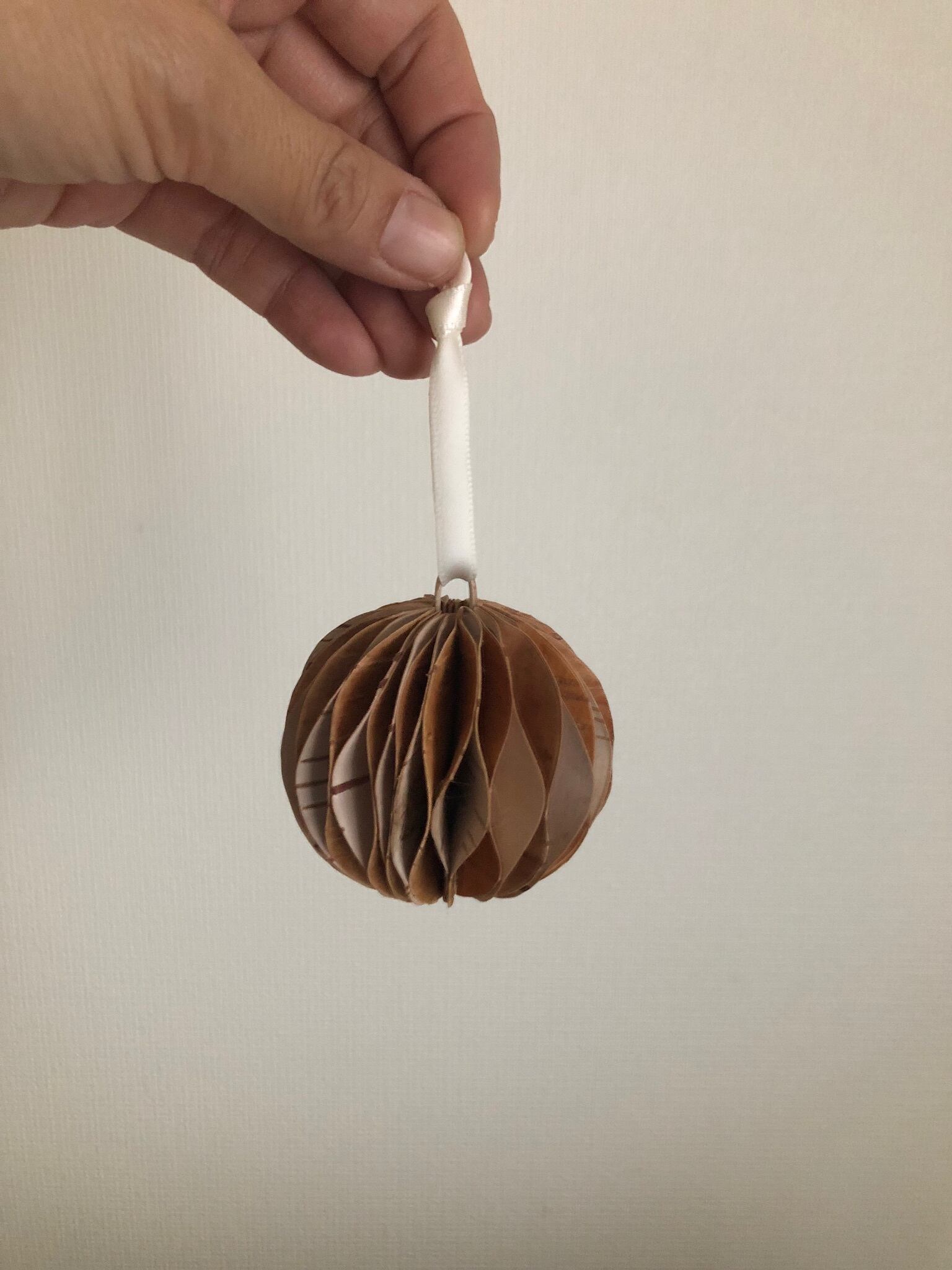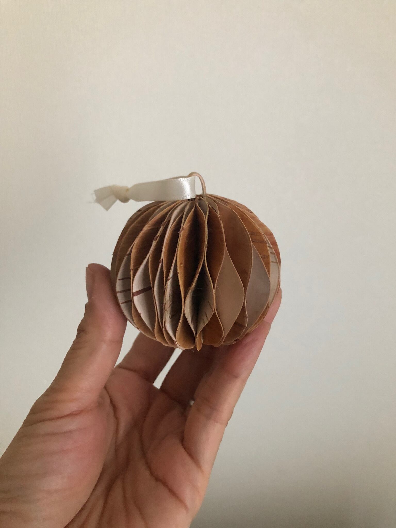 白樺の樹皮を何枚も重ねてボール状にした、とても凝った作りの白樺のオーナメントボール。