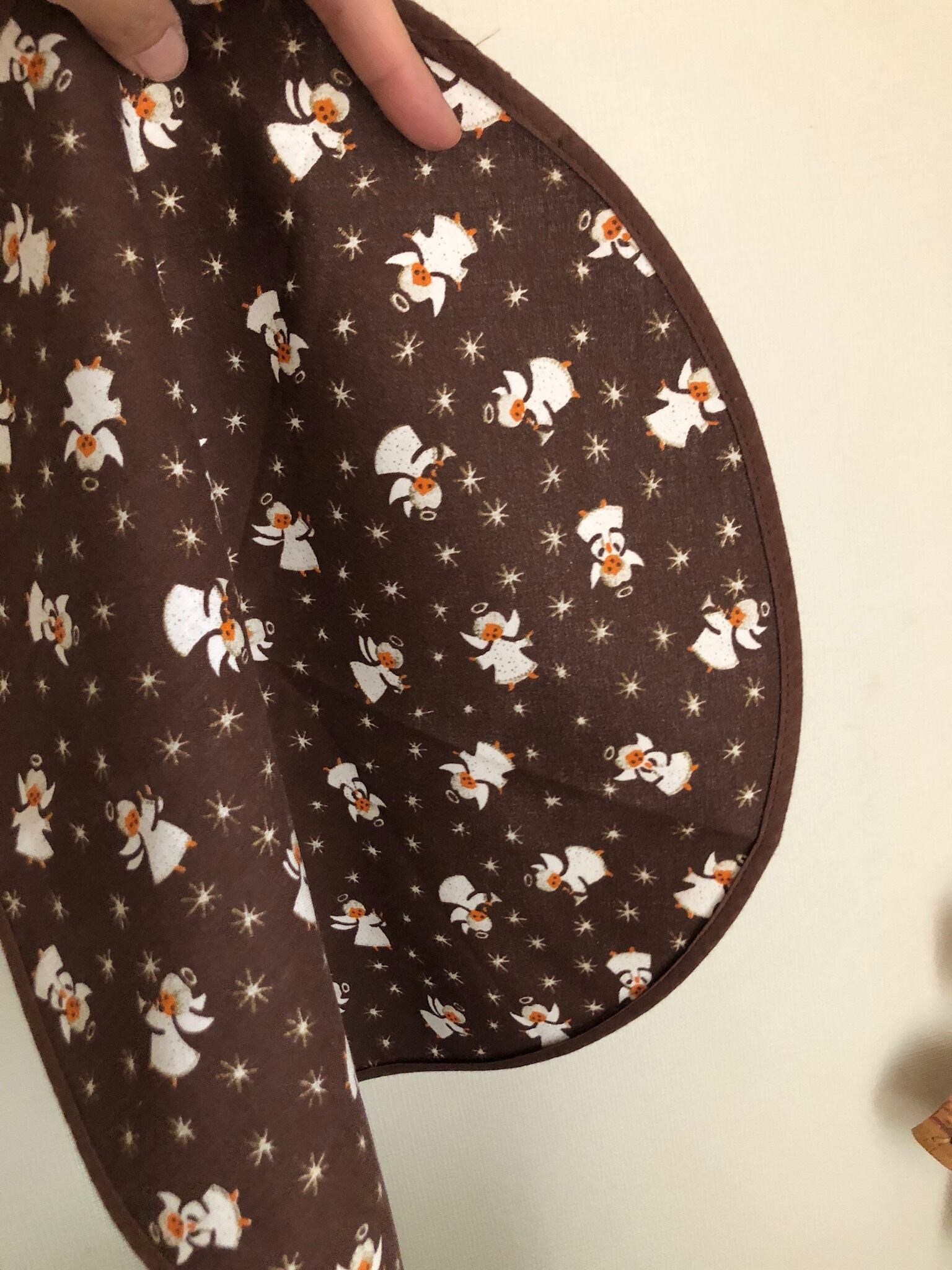ブラウンのコットン生地に、天使とベツレヘムの星の絵柄が、可愛らしいクロスになります。