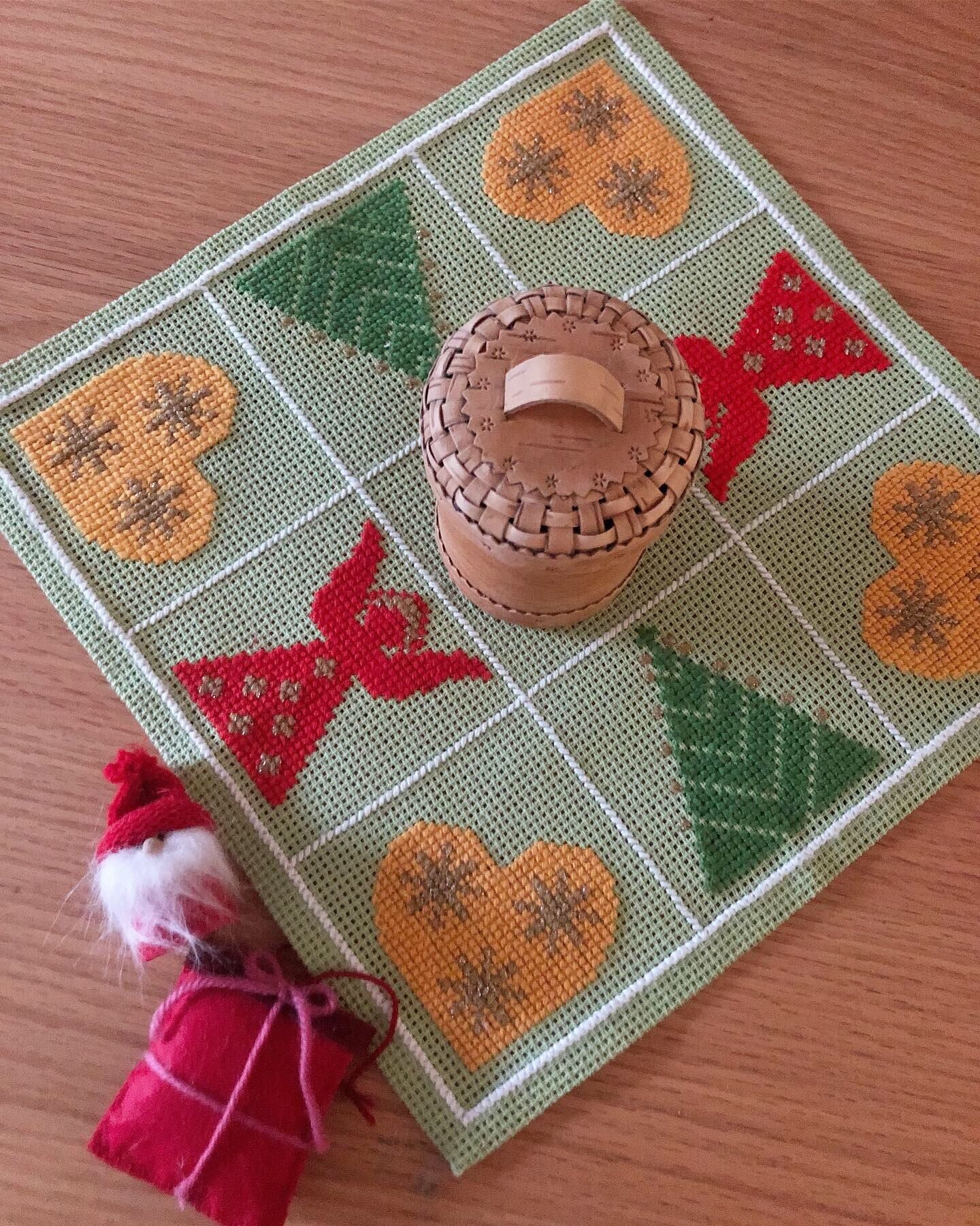 ◉ツリーと天使の刺繍リネンクロス ¥2400
