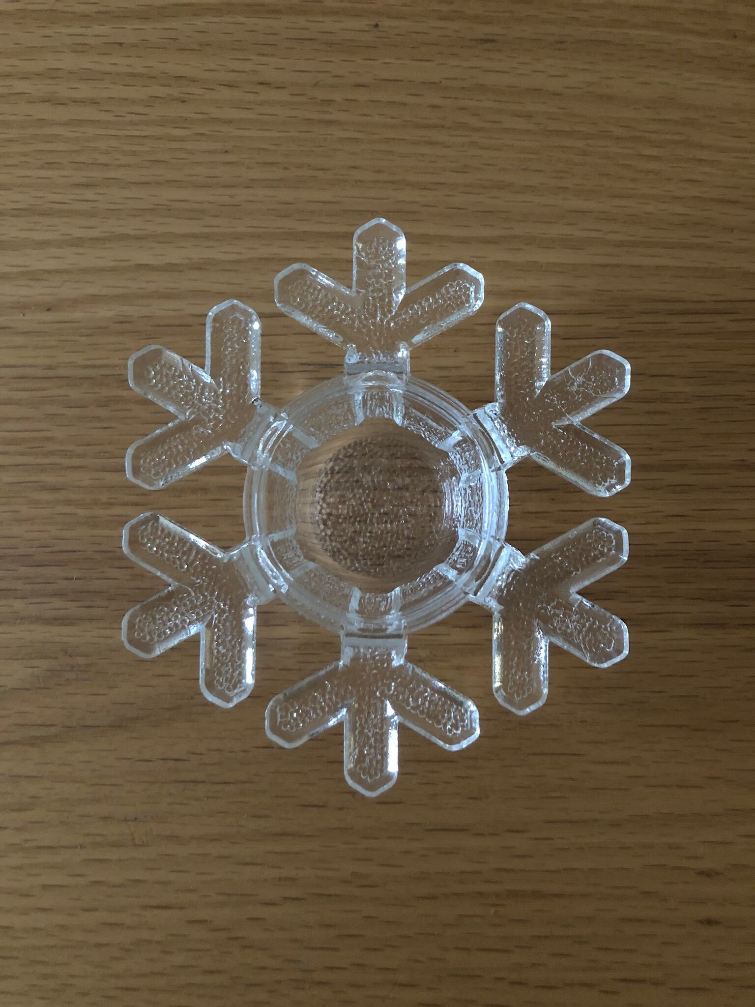 ガラスの雪の結晶の形が素敵なキャンドルホルダー。