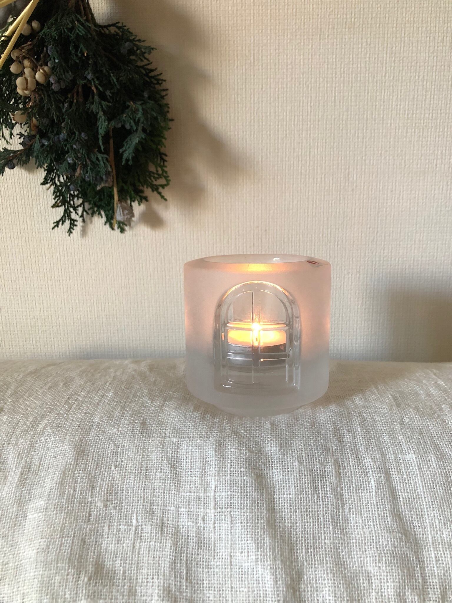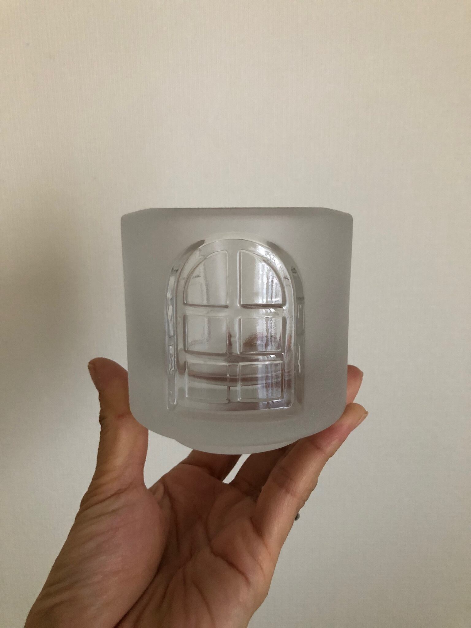 フロストガラスと、窓のクリアガラスの組み合わせが素敵なキャンドルホルダーです。