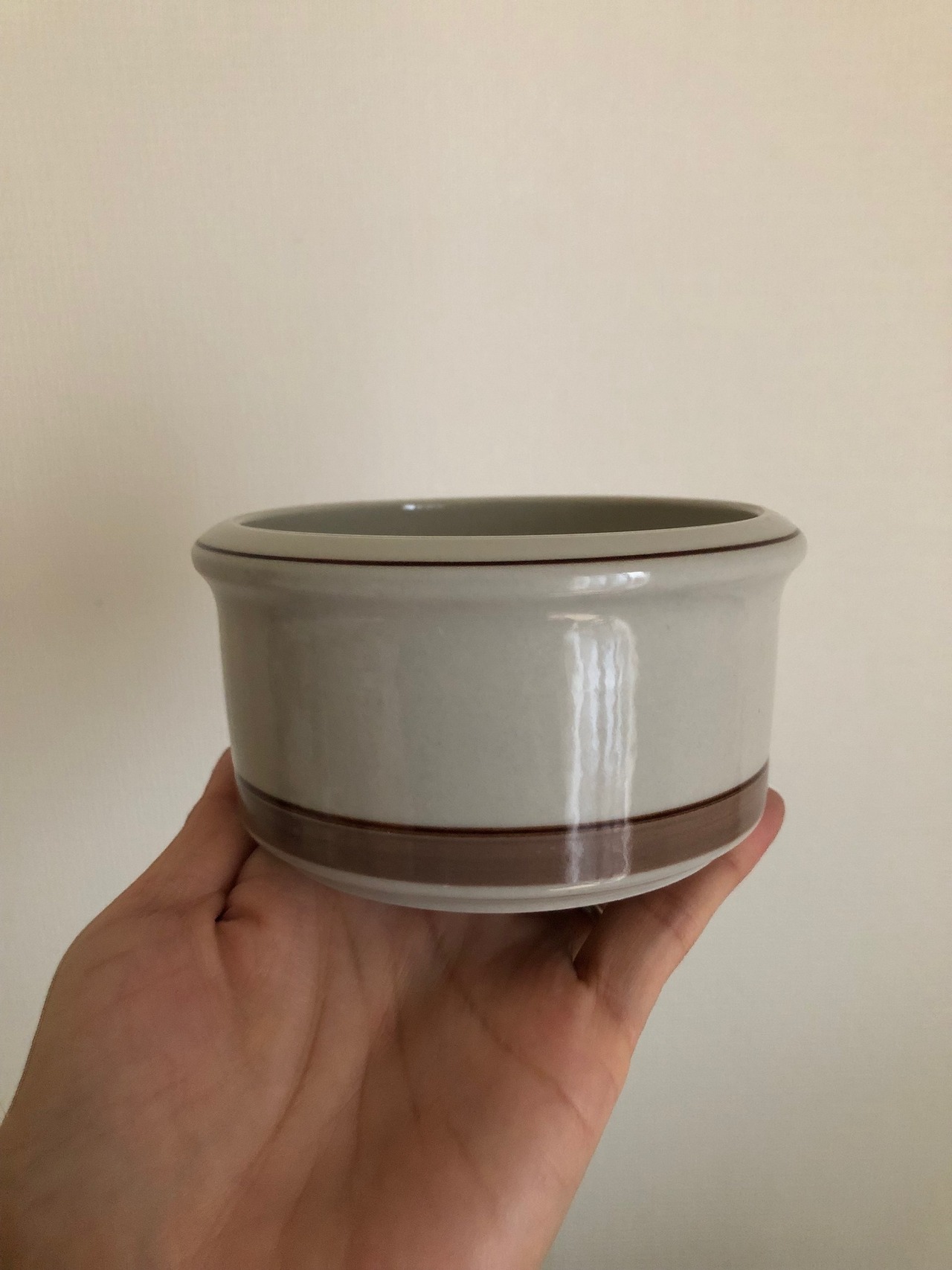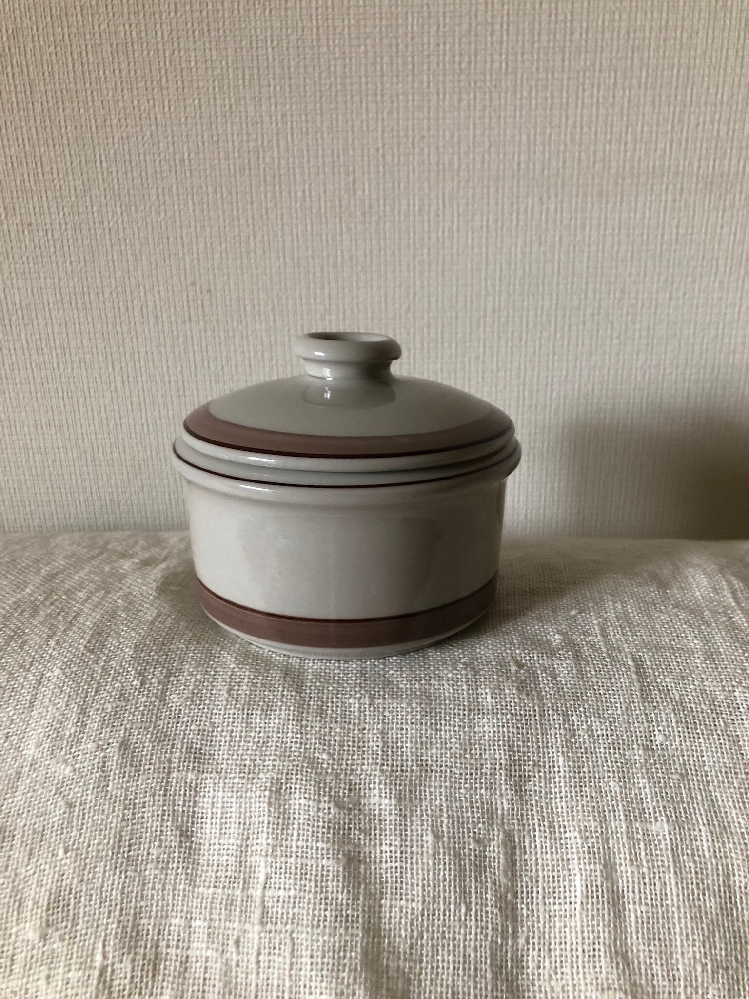 シンプルですが、くすんだピンクとブラウンのラインがシックで素敵なシュガーポットになります。