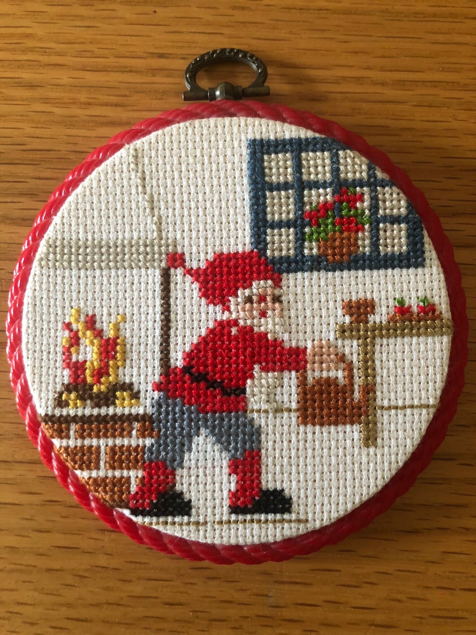 北欧 スウェーデン 丸額入りクリスマス刺繍飾り ヴィンテージ