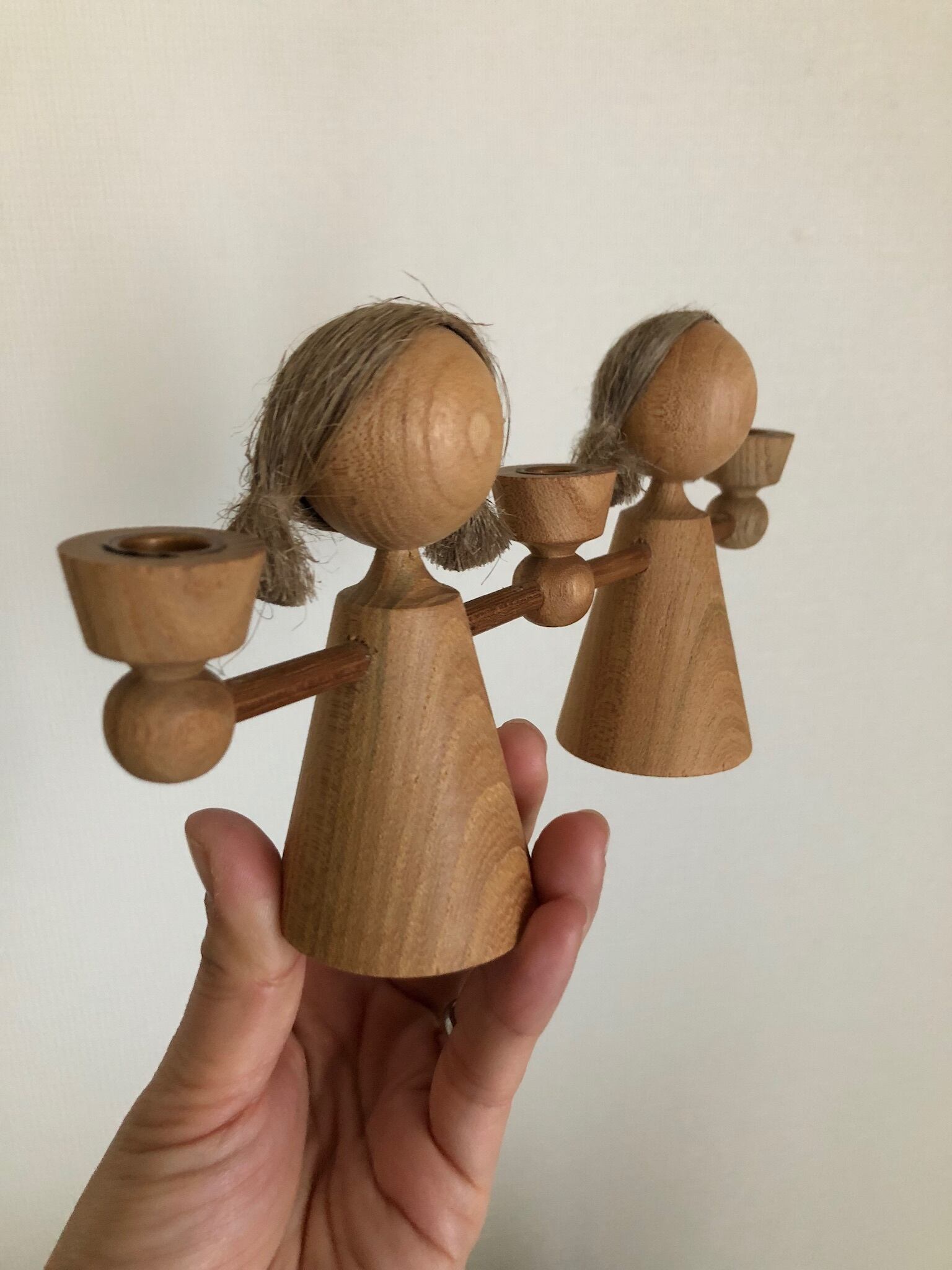 ヴィンテージチークの女の子のキャンドルスタンドです。1960年代のもの。