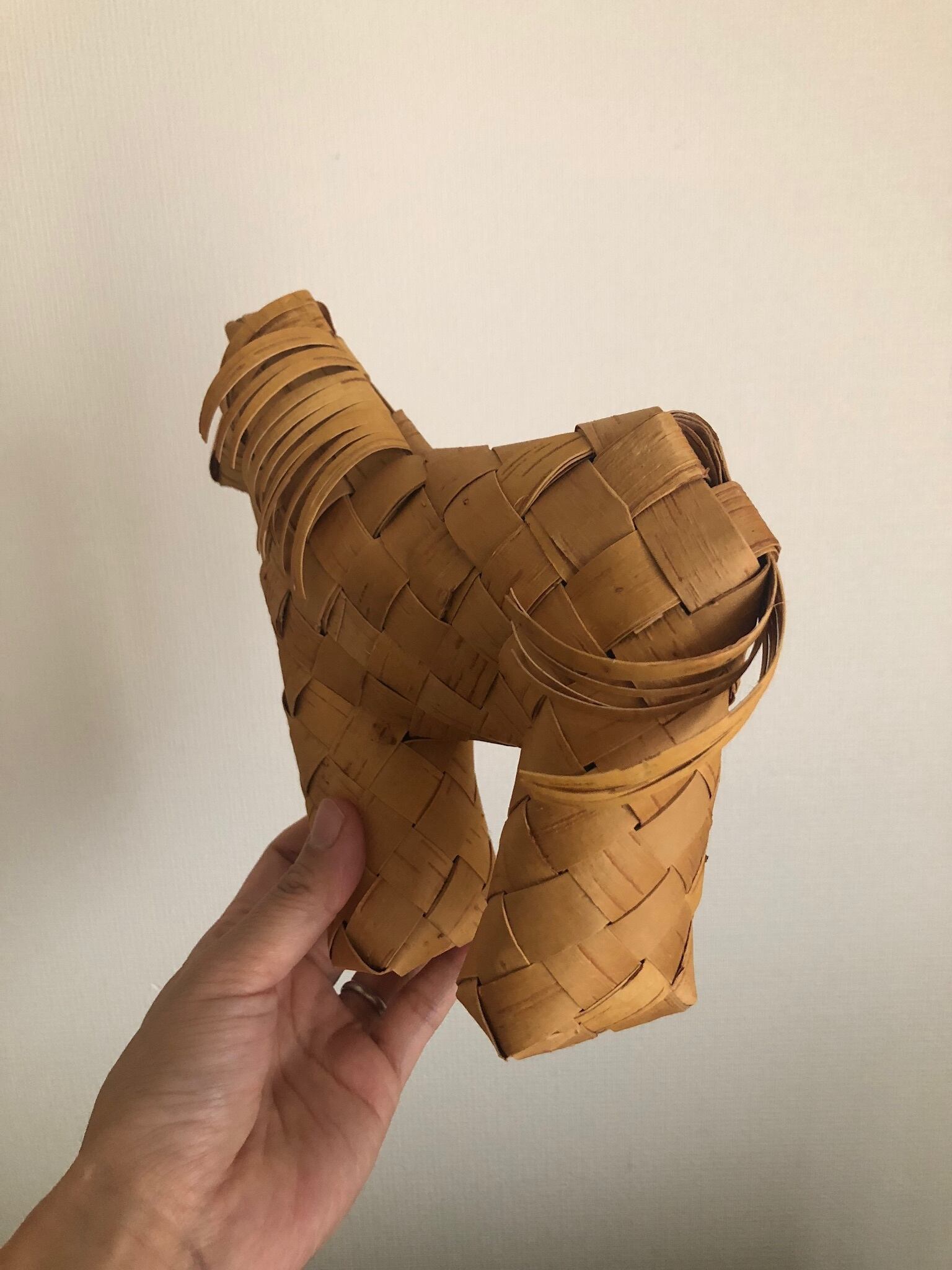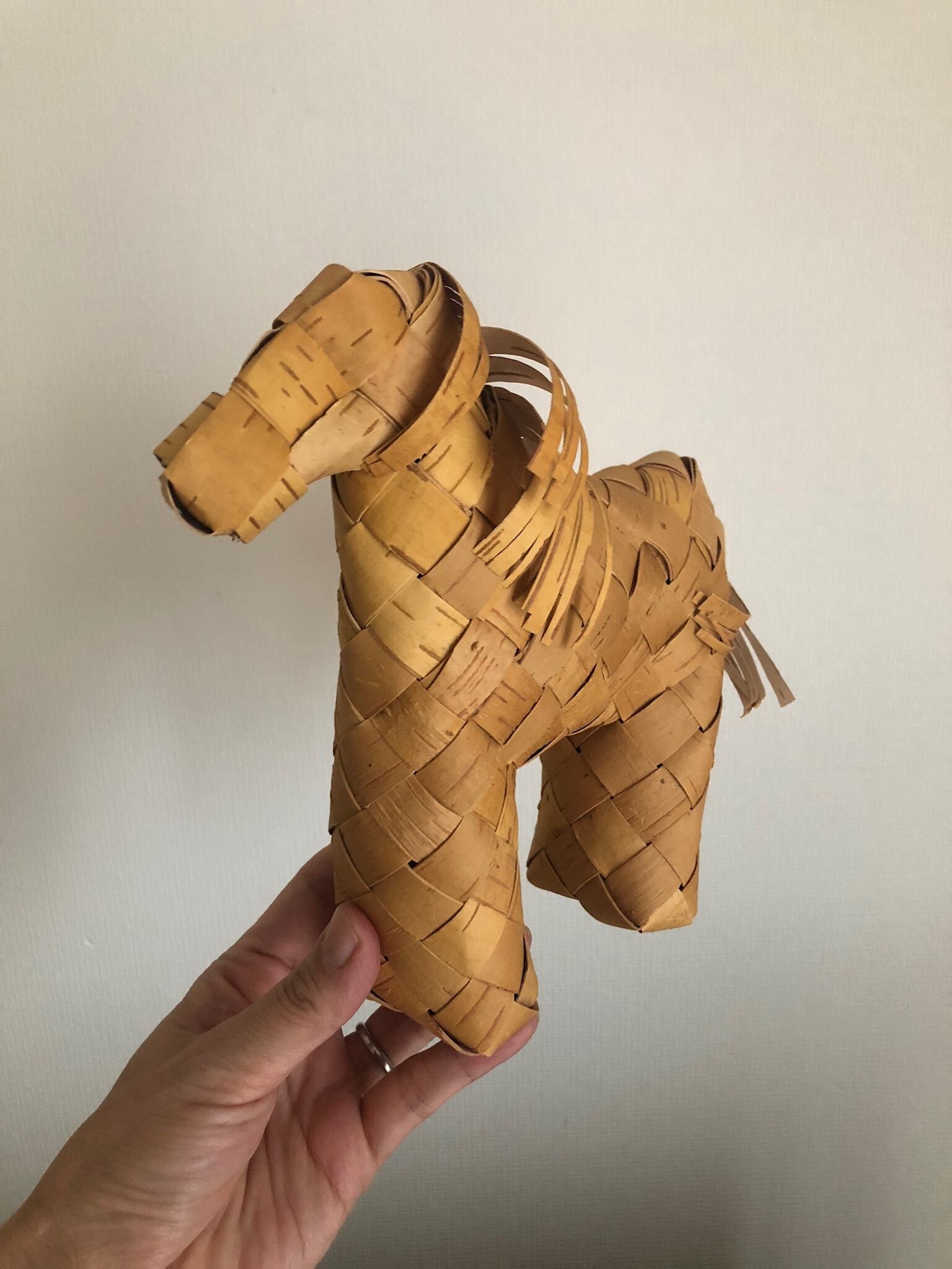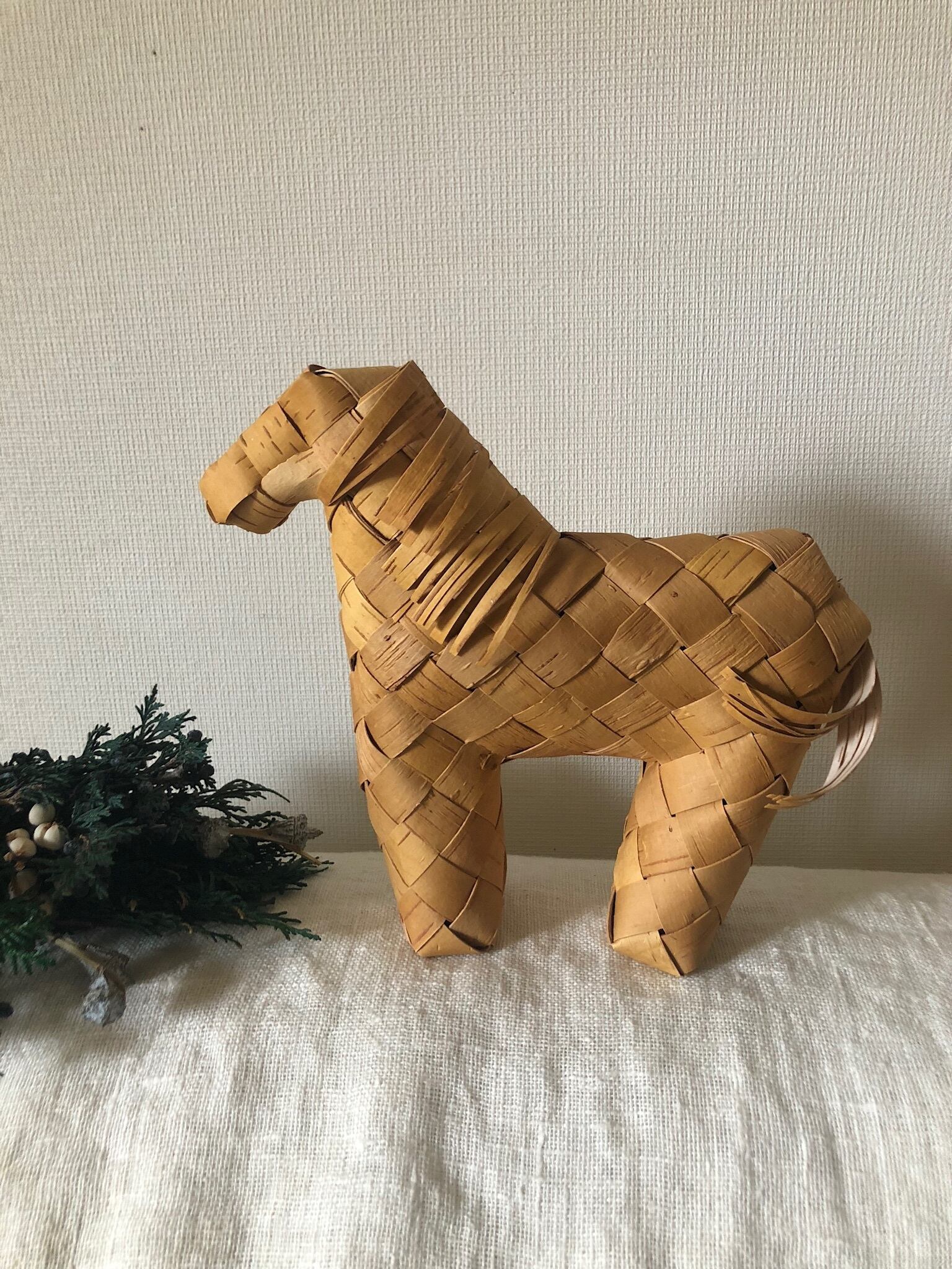 白樺の樹皮で編まれた、可愛いらしい白樺のポニー。