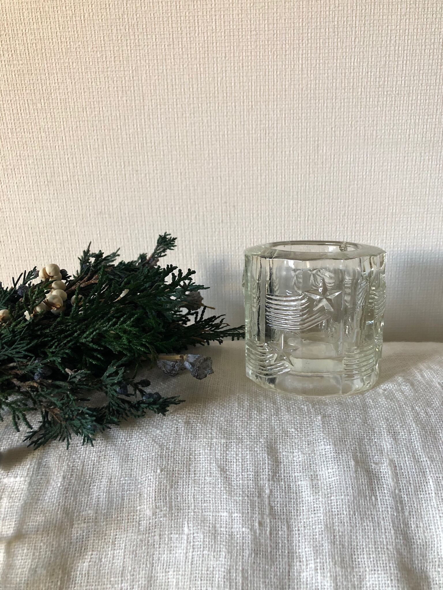 日中は自然光の下でクリアガラスがキラキラと輝き、夜は部屋の明かりやキャンドルの灯りで、また違った雰囲気を楽しめます♫