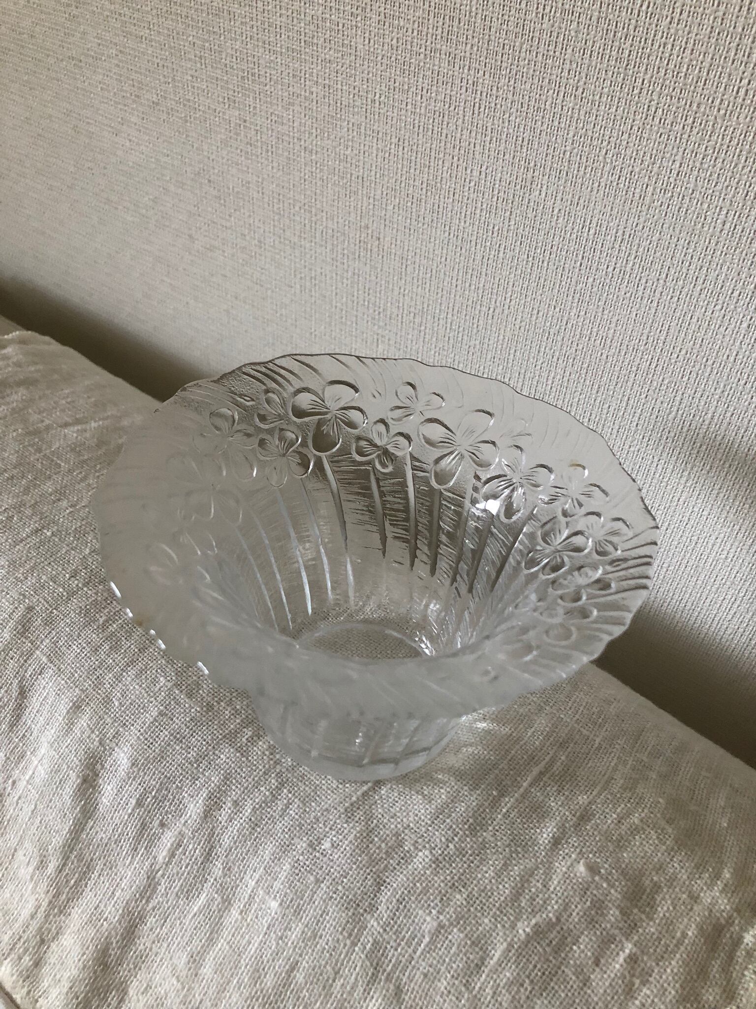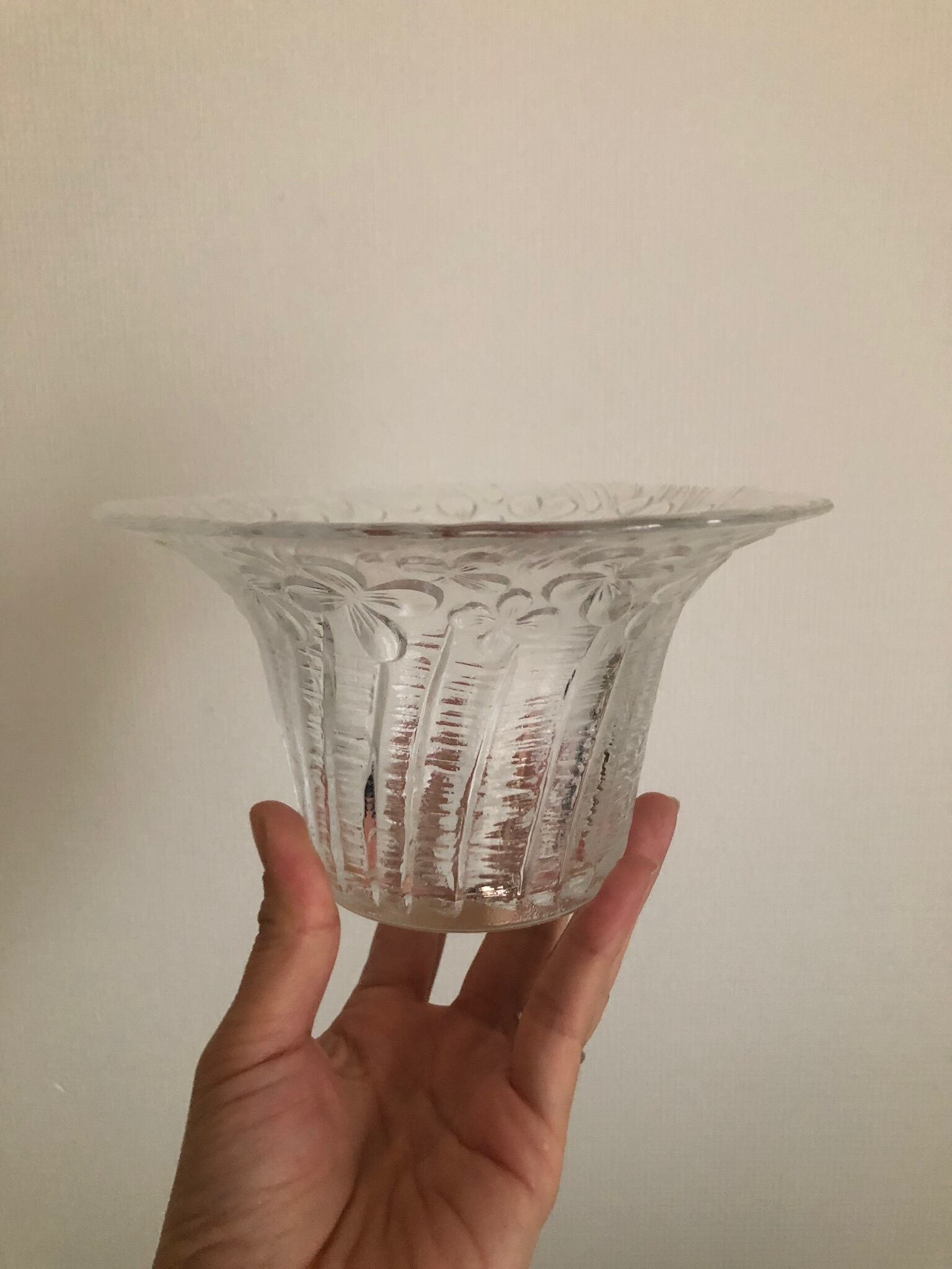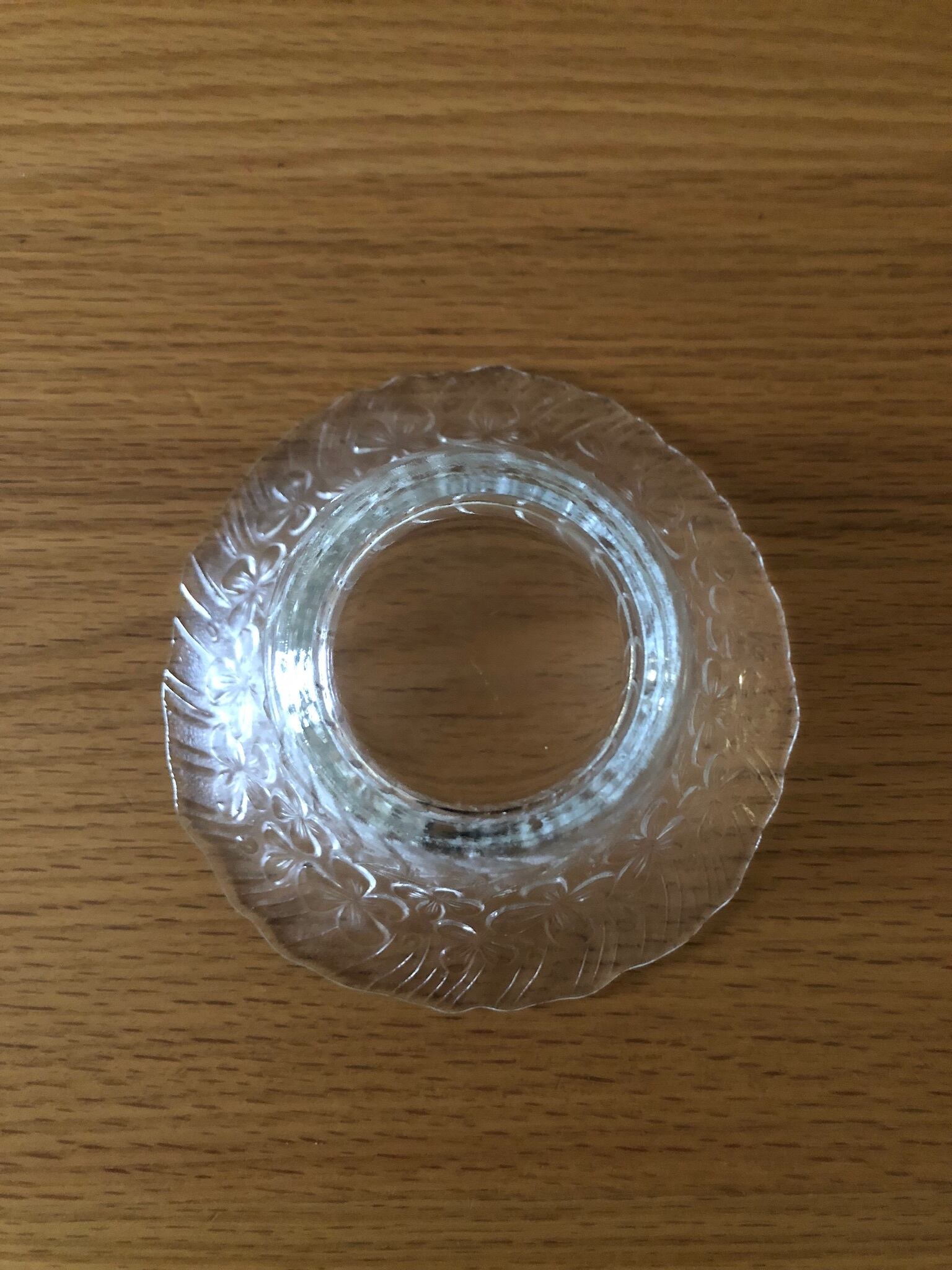 ORVOKKI (パンジー)と名のついたガラスのキャンドルホルダー。ORVOKKI は、何色かの色合いが作られていますが、こちらはクリアなタイプになります。