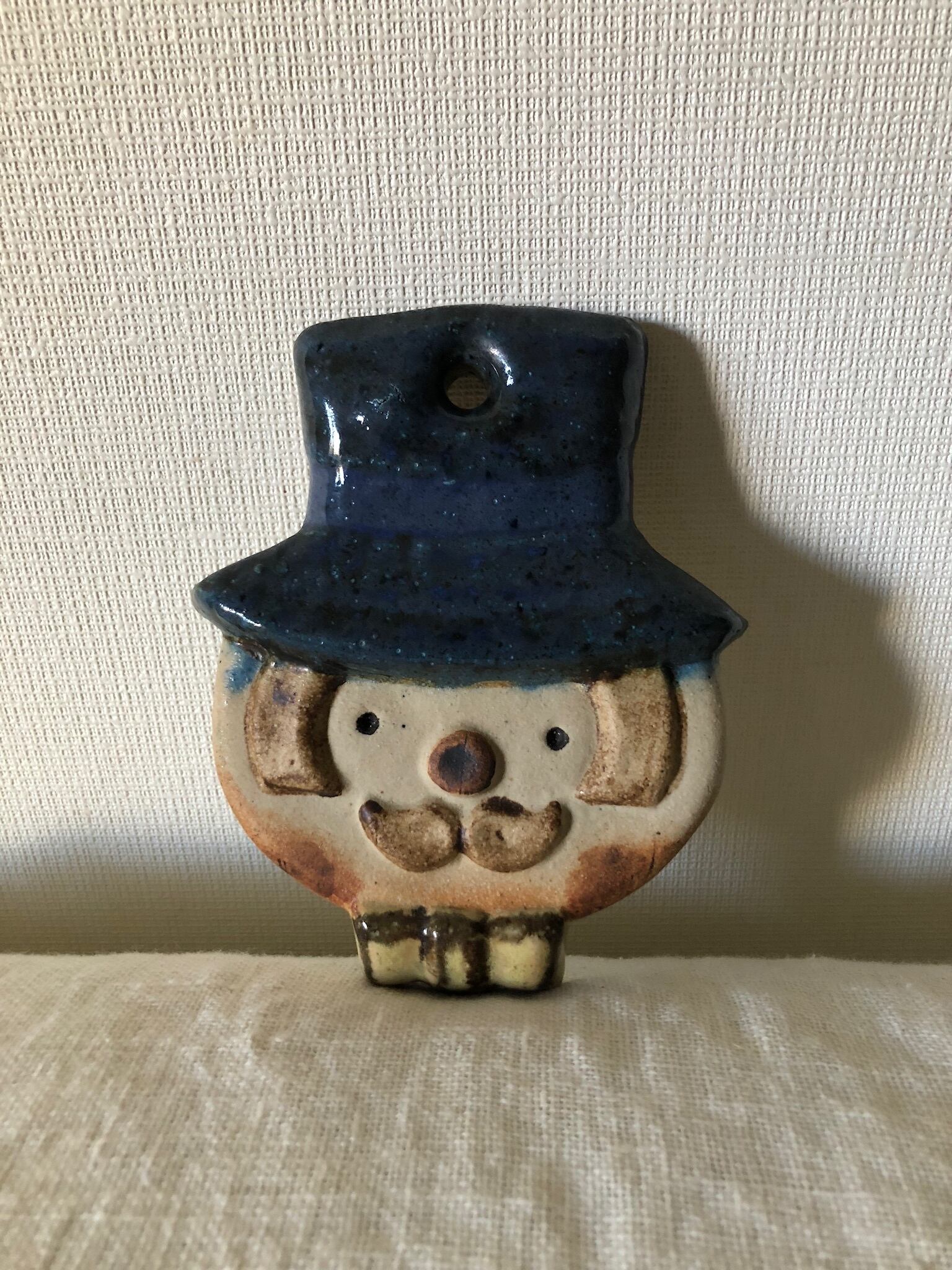 素焼きの顔に、青い帽子と蝶ネクタイ、ヒゲがなんとも素朴で可愛いらしいムッシューです♬
