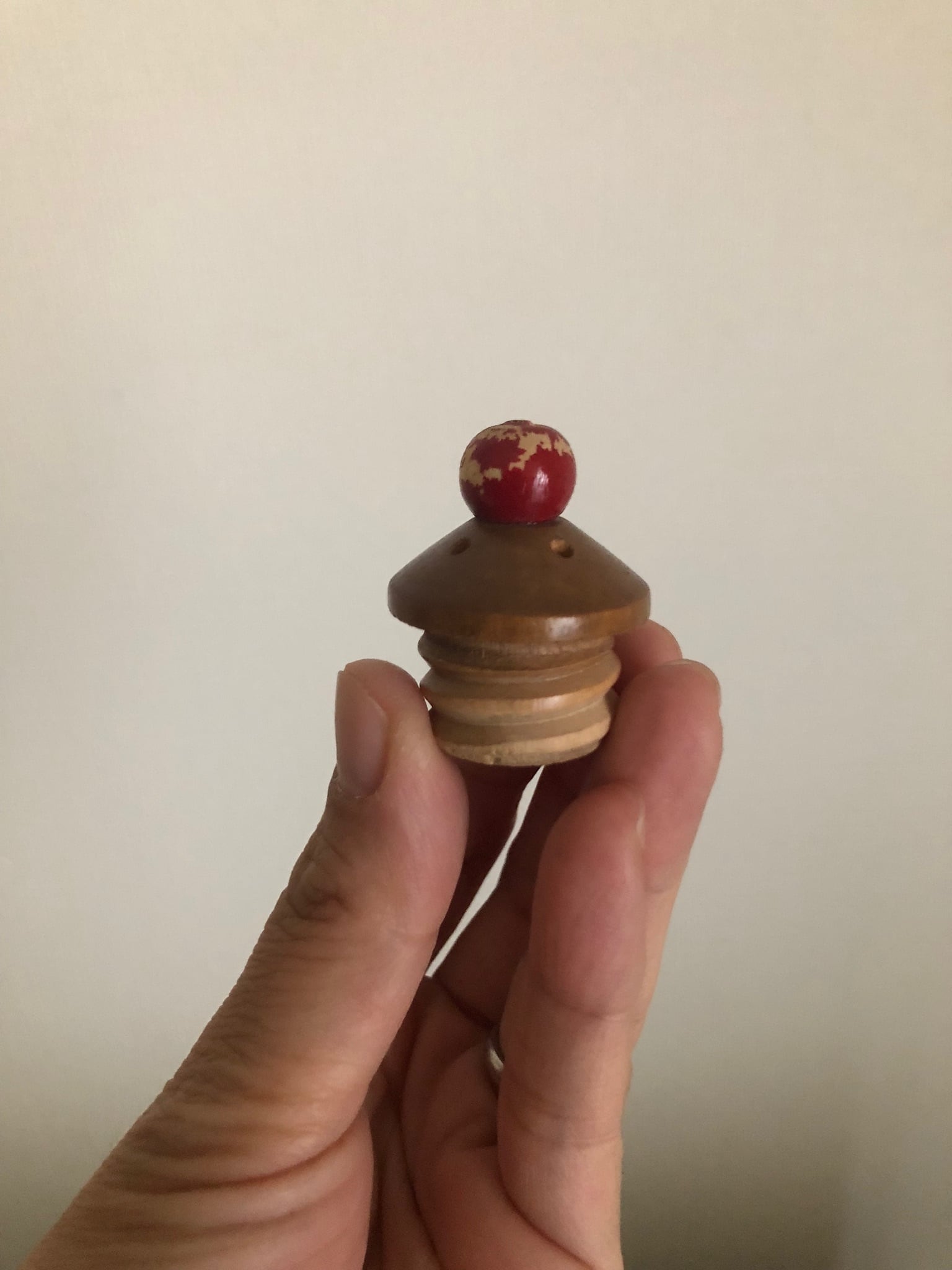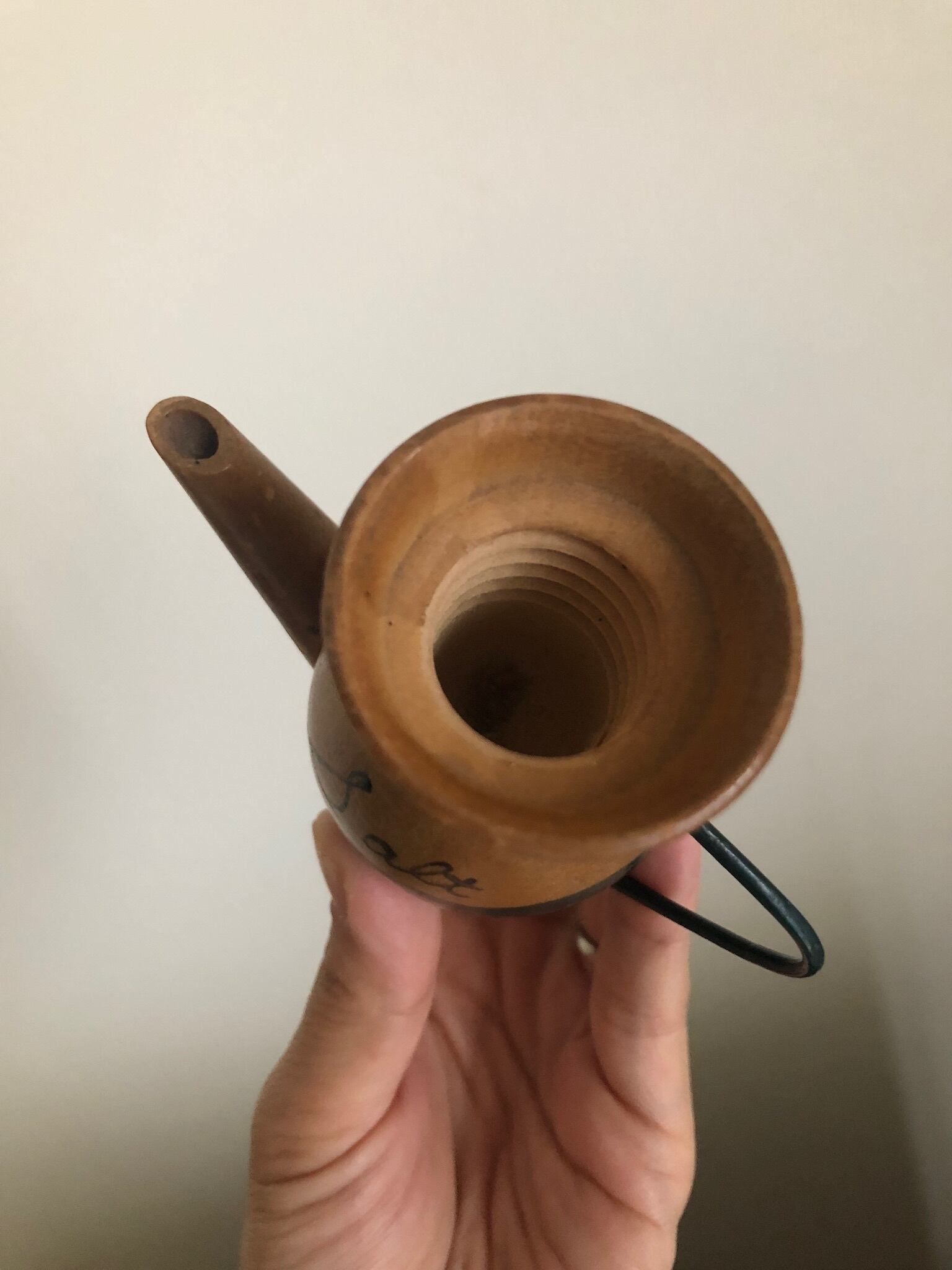 ポットの蓋の部分をクルクル回すと、蓋が取れます。木製に、グリーンと赤の色味も可愛いらしいです♫