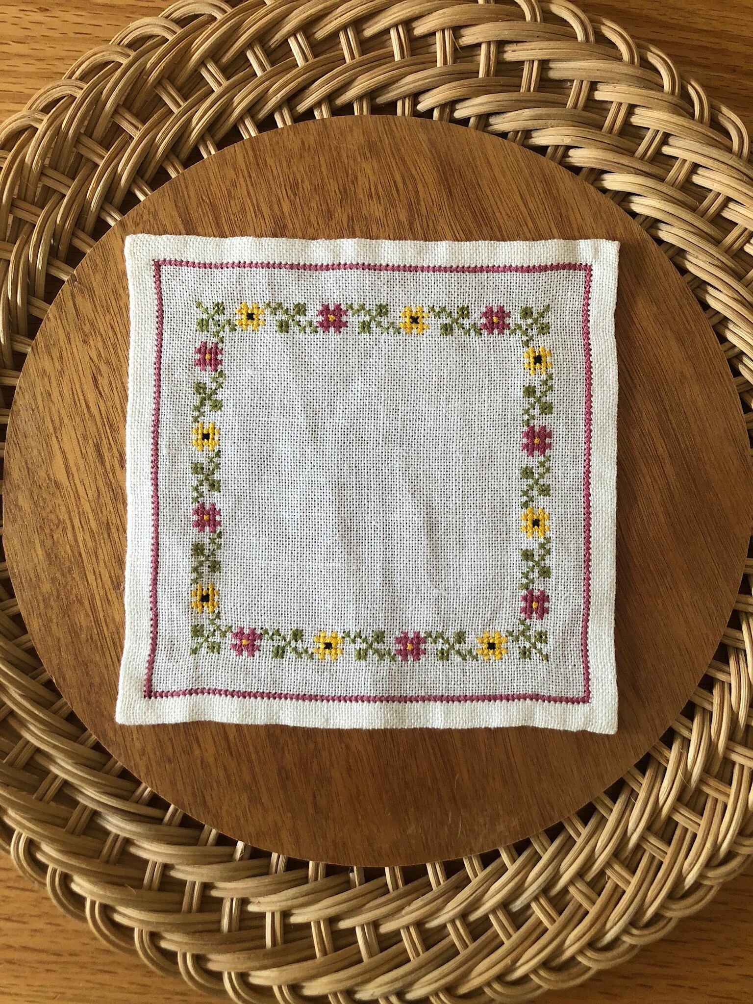 ①北欧 小花刺繍のリネンクロス ヴィンテージ