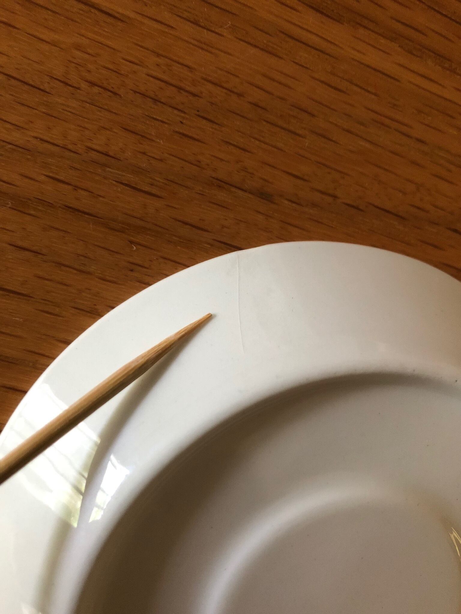 ソーサーは、見た目には分かりにくいですが、フチの部分に触るとザラつきが見られる箇所と少し凹凸が見られる箇所、細い貫入が入ってる箇所(ヒビではありません)がございます(写真 18-20 枚目参照)。