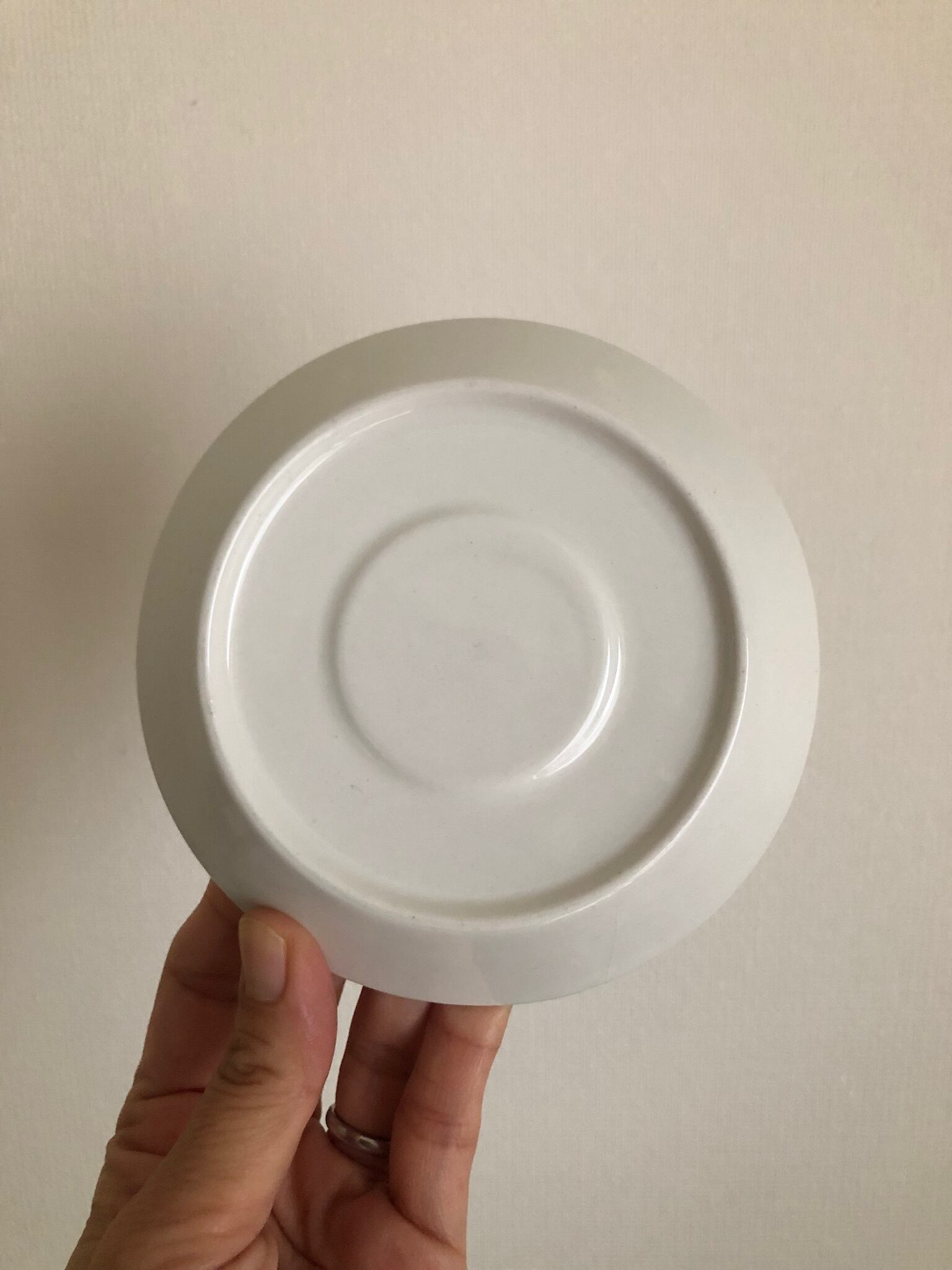 ソーサーの裏に、焼成時の支柱跡が三箇所、ございます。