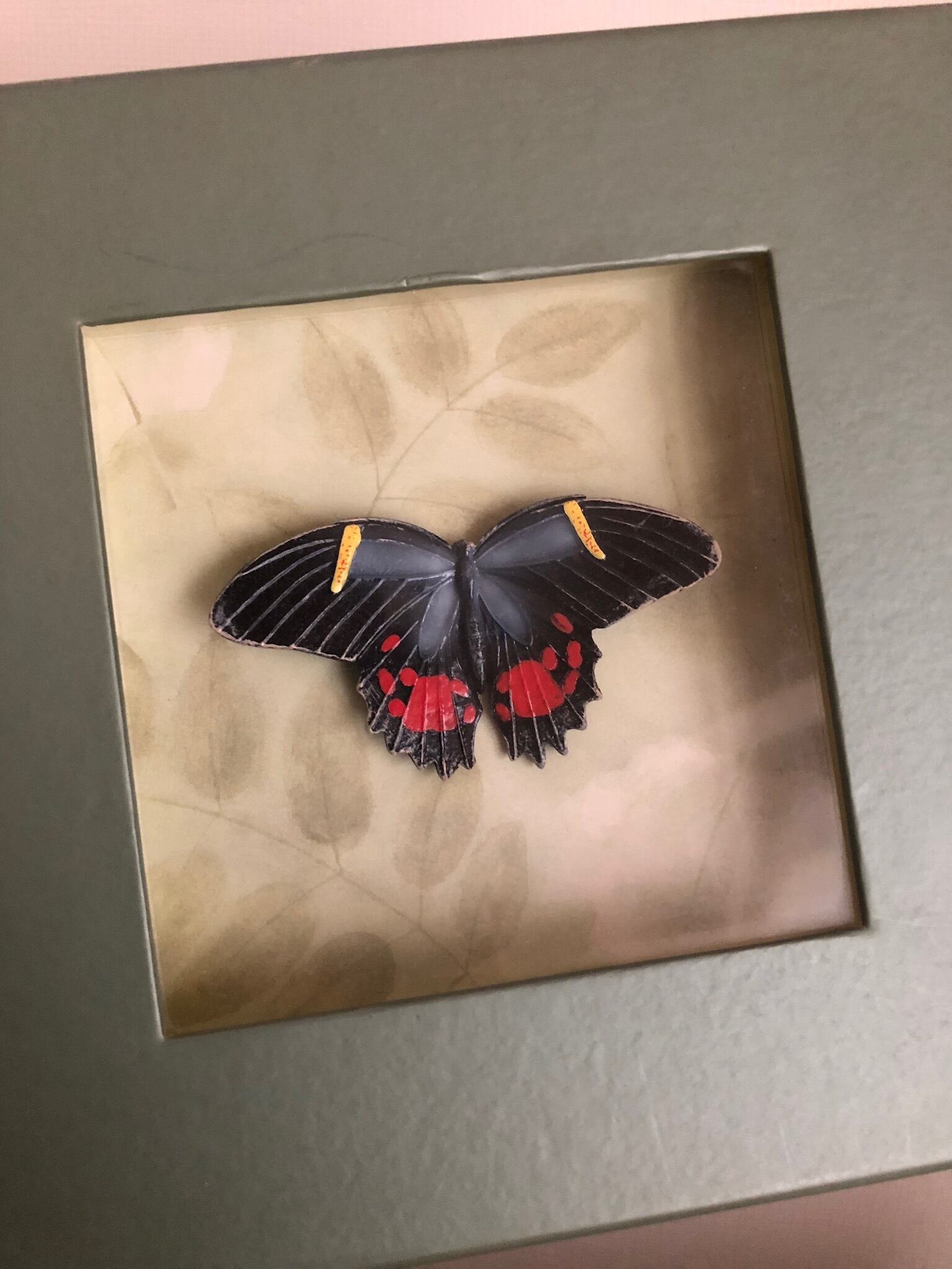 チョウチョのギフトボックスは、蓋の内側に立体的な紙製のチョウチョが入っていて、とても凝った作り♫