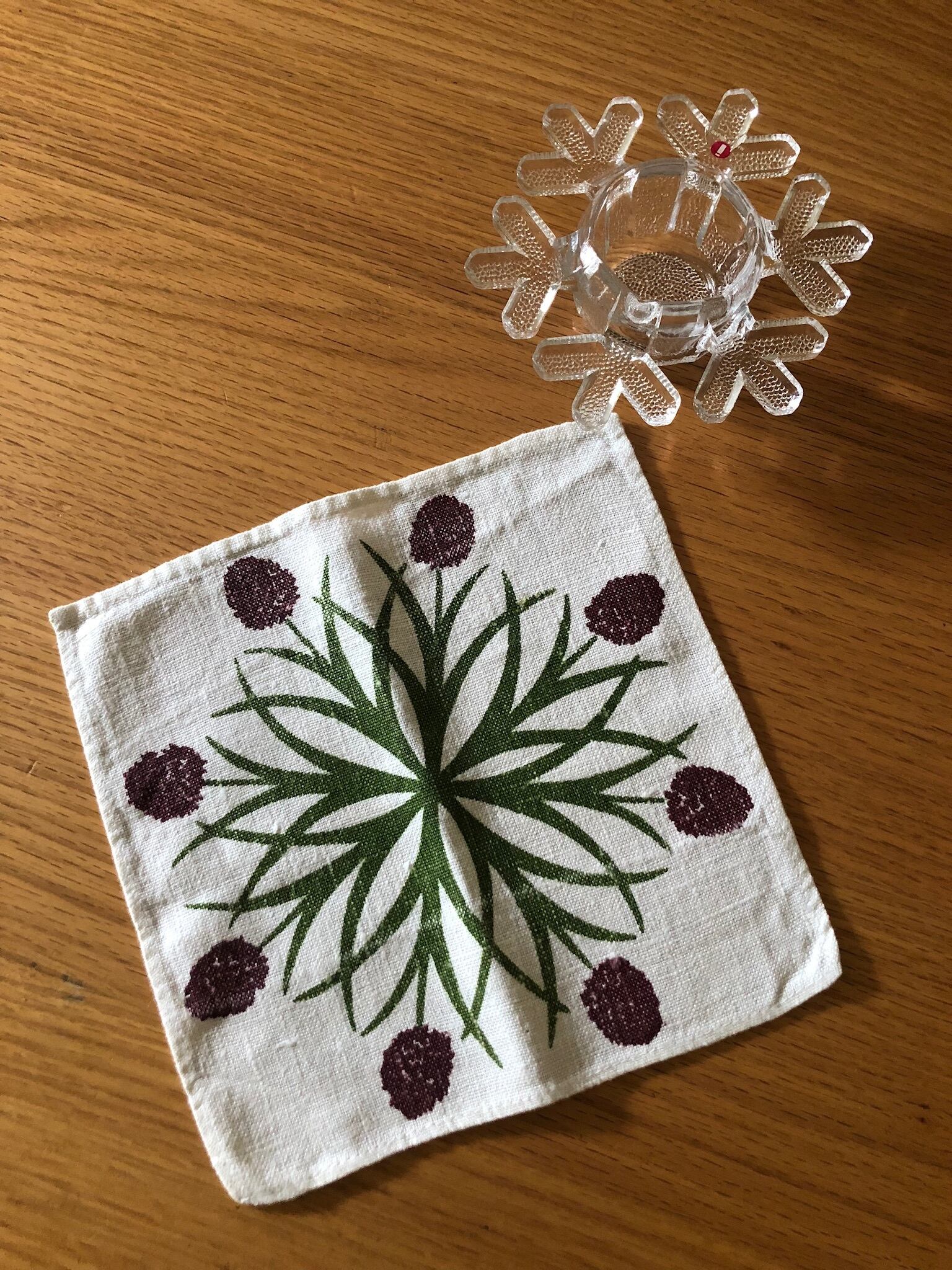 スウゥーデンのヴィンテージのリネンのクロスです。スウゥーデンでは、馴染みのある、Froso (フローソ)社のものになります。今もハンドプリントで作られて、とても味のある素敵なクロスをたくさん作られています。