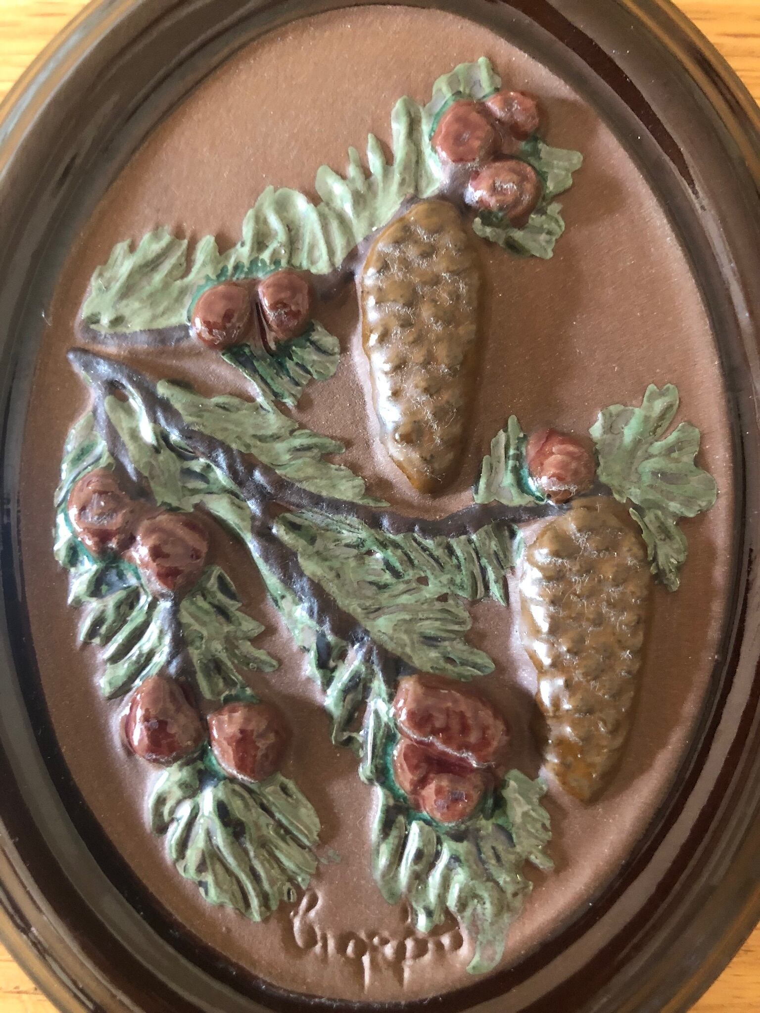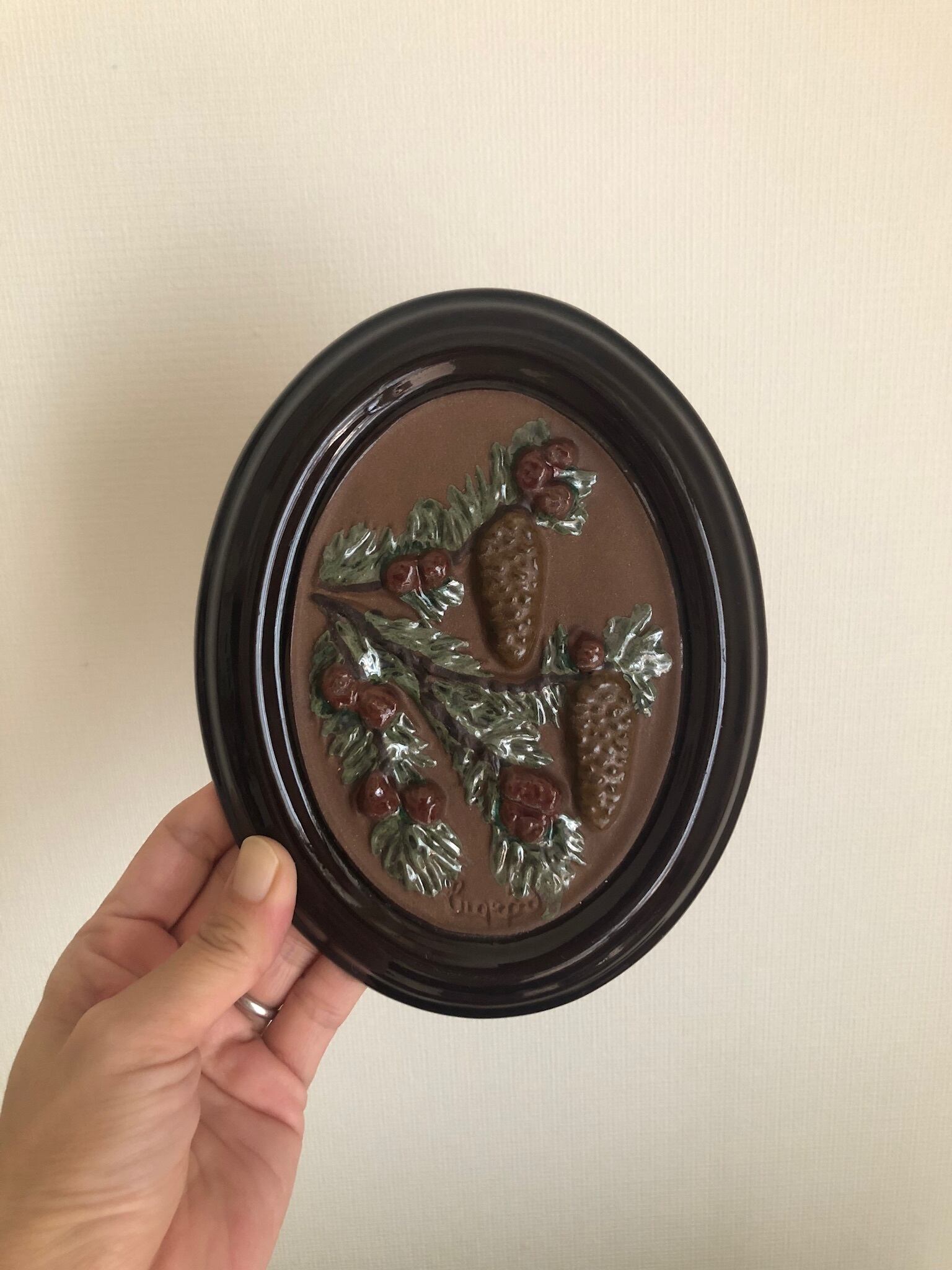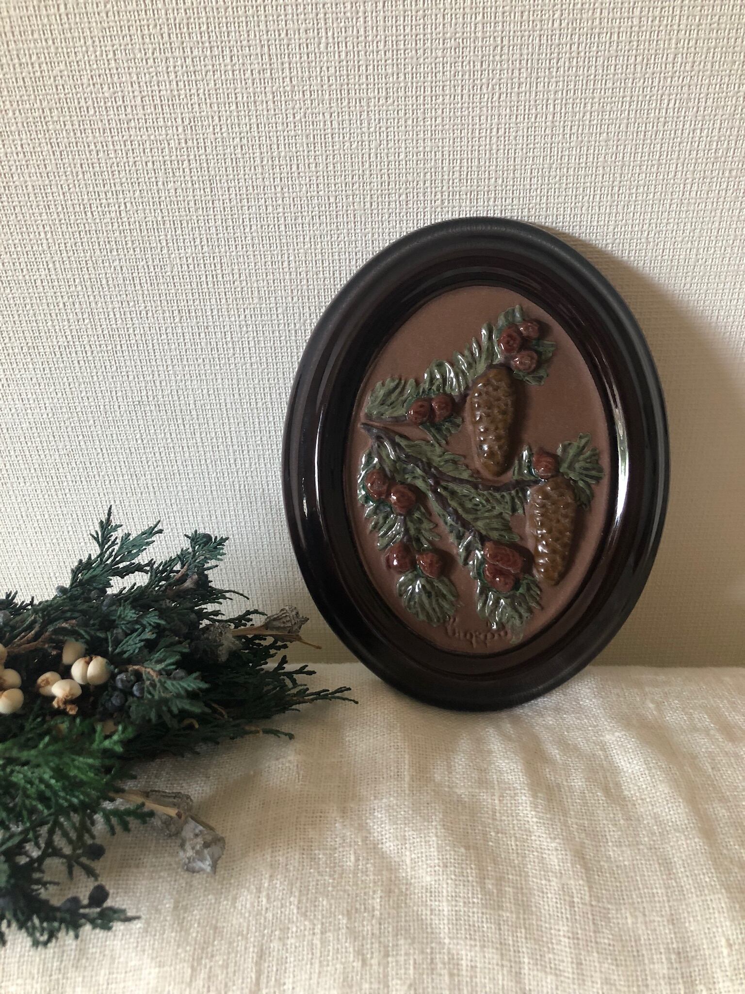 ♫再々入荷♫北欧 スウェーデン GABRIEL ヒイラギと松ぼっくりの陶板 ヴィンテージ