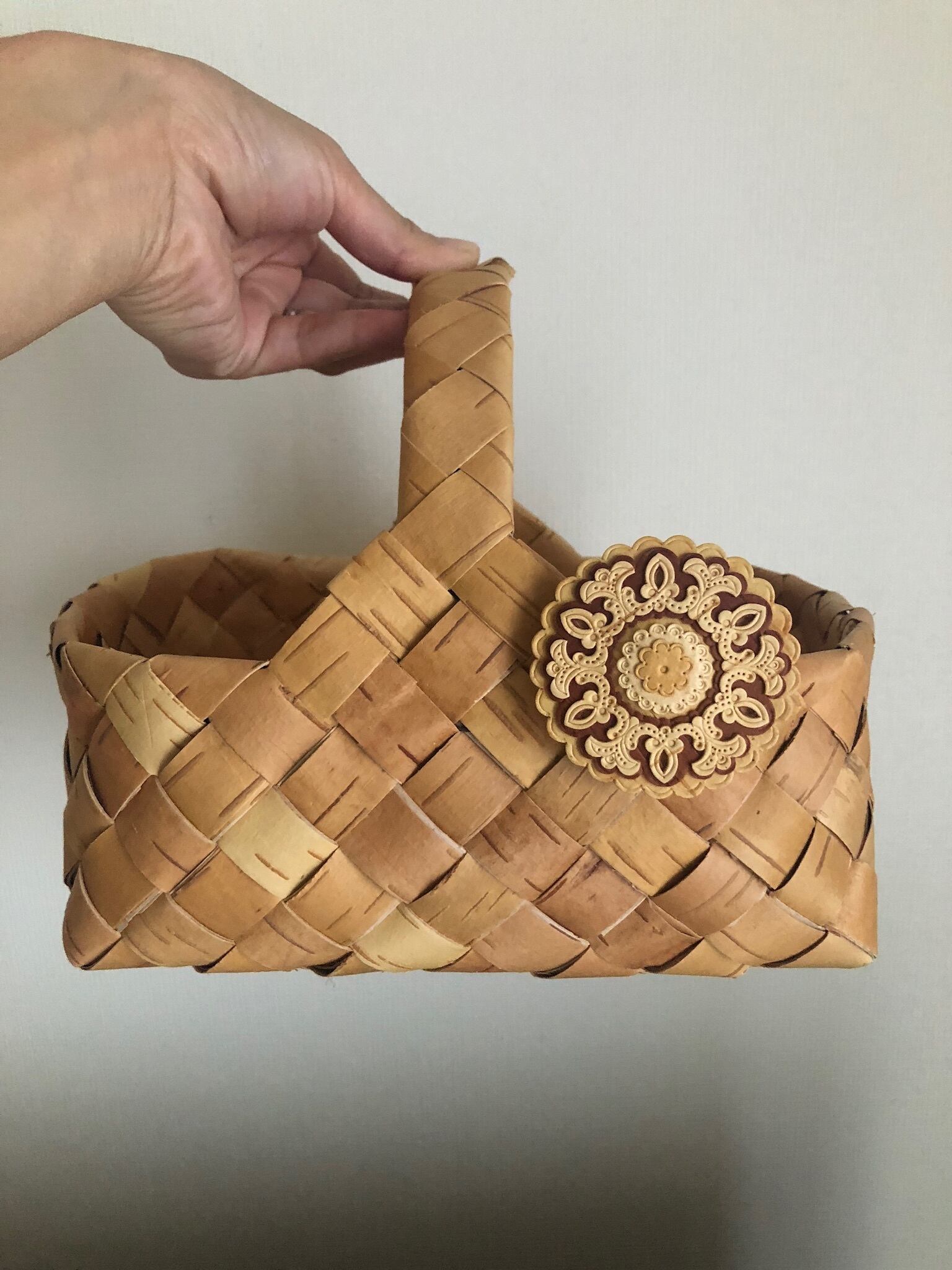 ベレスタの中でも多重柄は、色の違う白樺の樹皮を重ねて、細かくカットして繊細で美しい柄を表現するとても凝った作りです。白樺の樹皮を重ねているので強度も優れています。