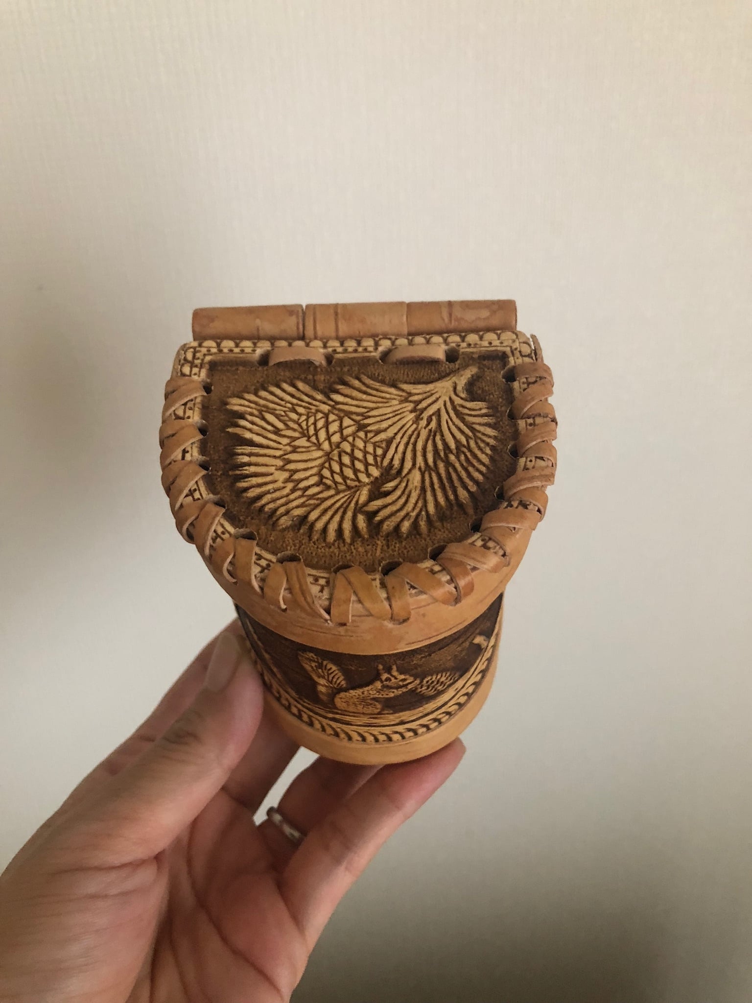 ロシア 白樺細工 ベレスタ リスの型押し蓋つきキャニスター