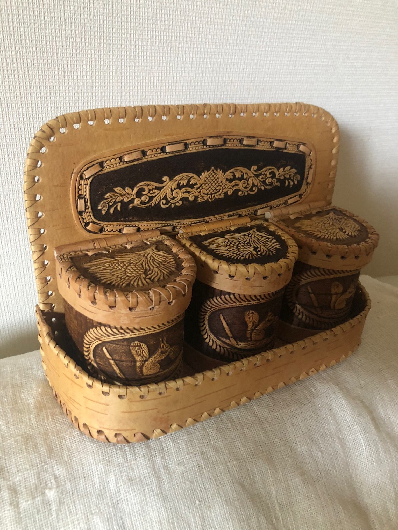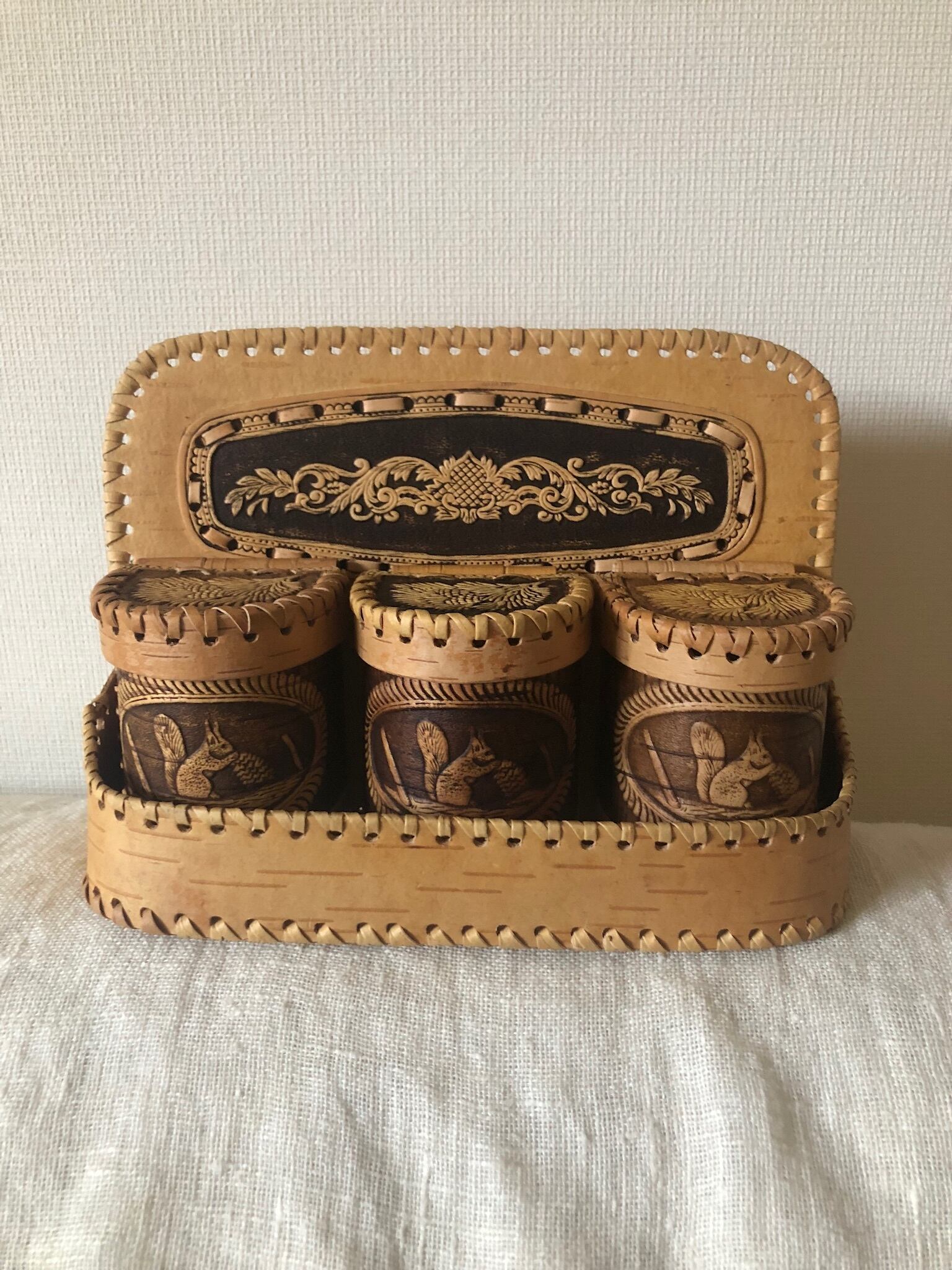 ロシア 白樺細工 ベレスタ リスの型押し蓋つきキャニスター