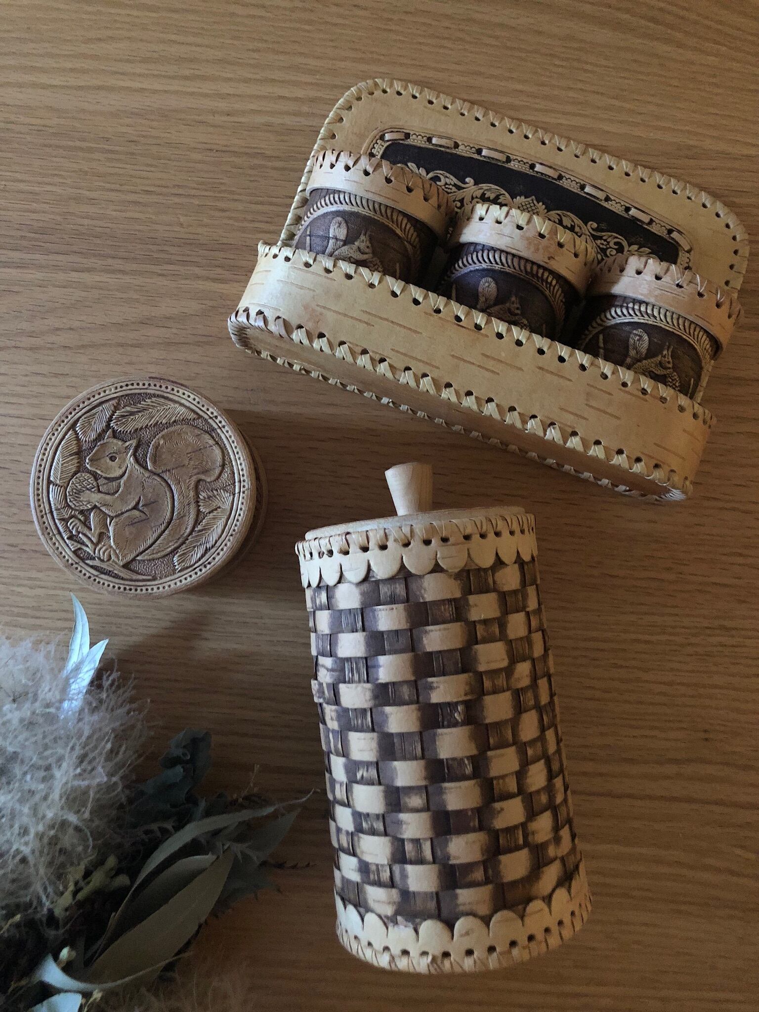 ロシア 白樺細工 ベレスタ リスの型押し丸型ボックス