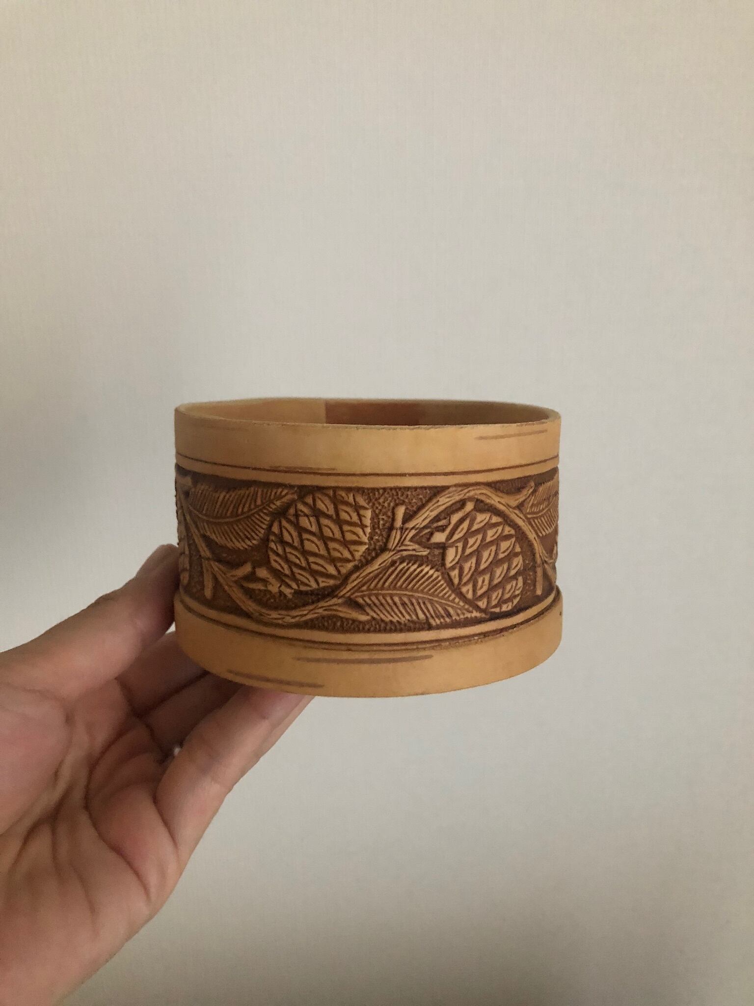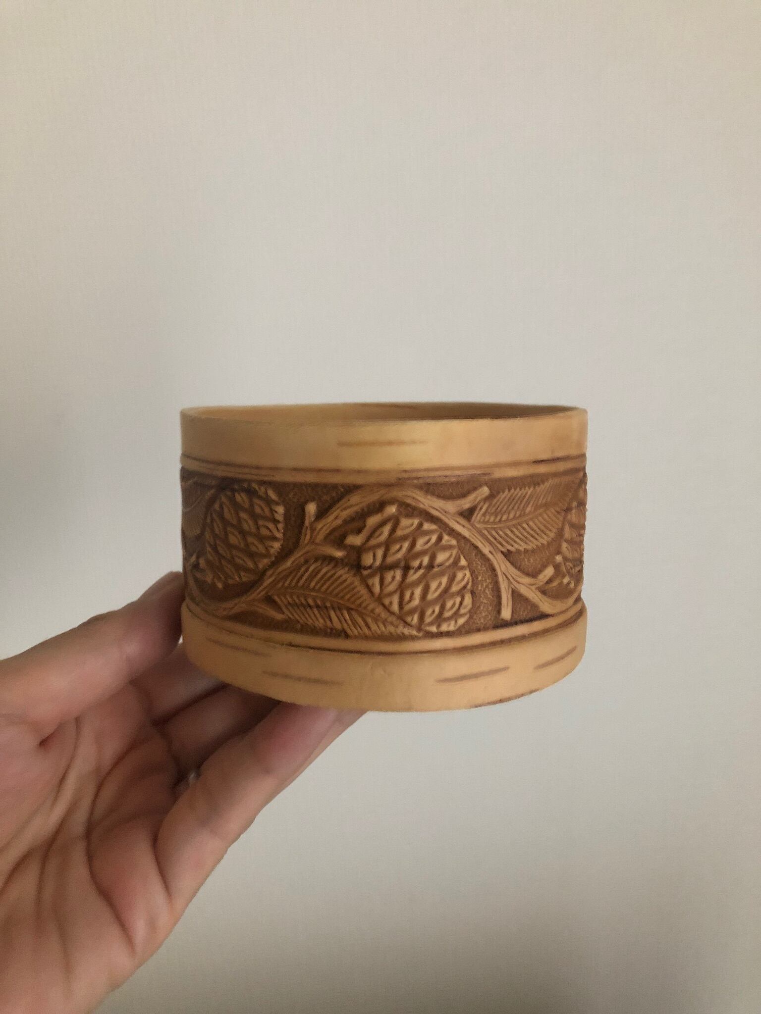ロシアの白樺細工、ベレスタの型押し丸型ボックスになります。