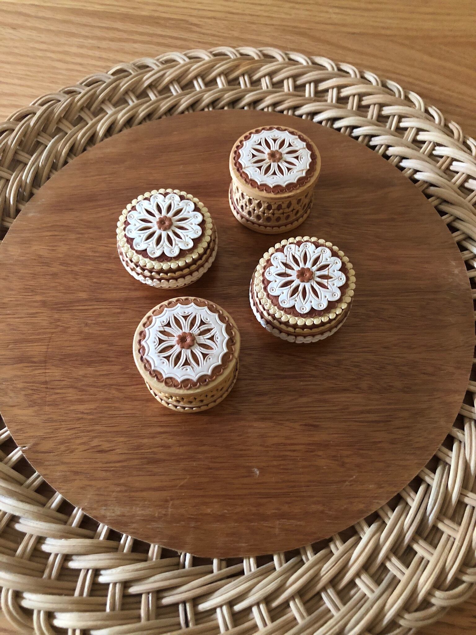 小さいので、いくつか並べて飾っでも可愛いです。小さなピアスやリング入れにしても♫