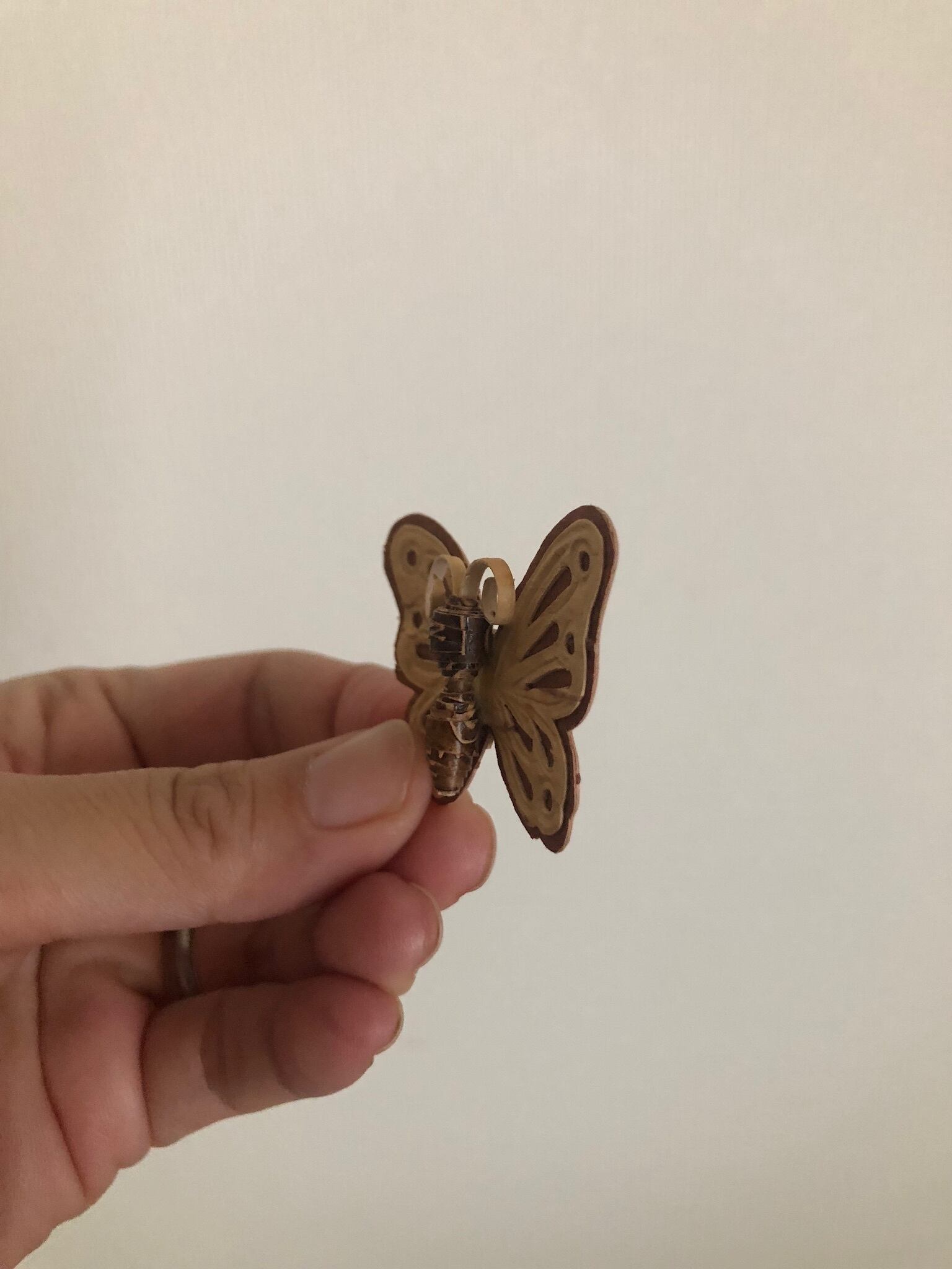 白樺の樹皮を重ねて作られた可愛いらしいちょうちょのブローチ。
