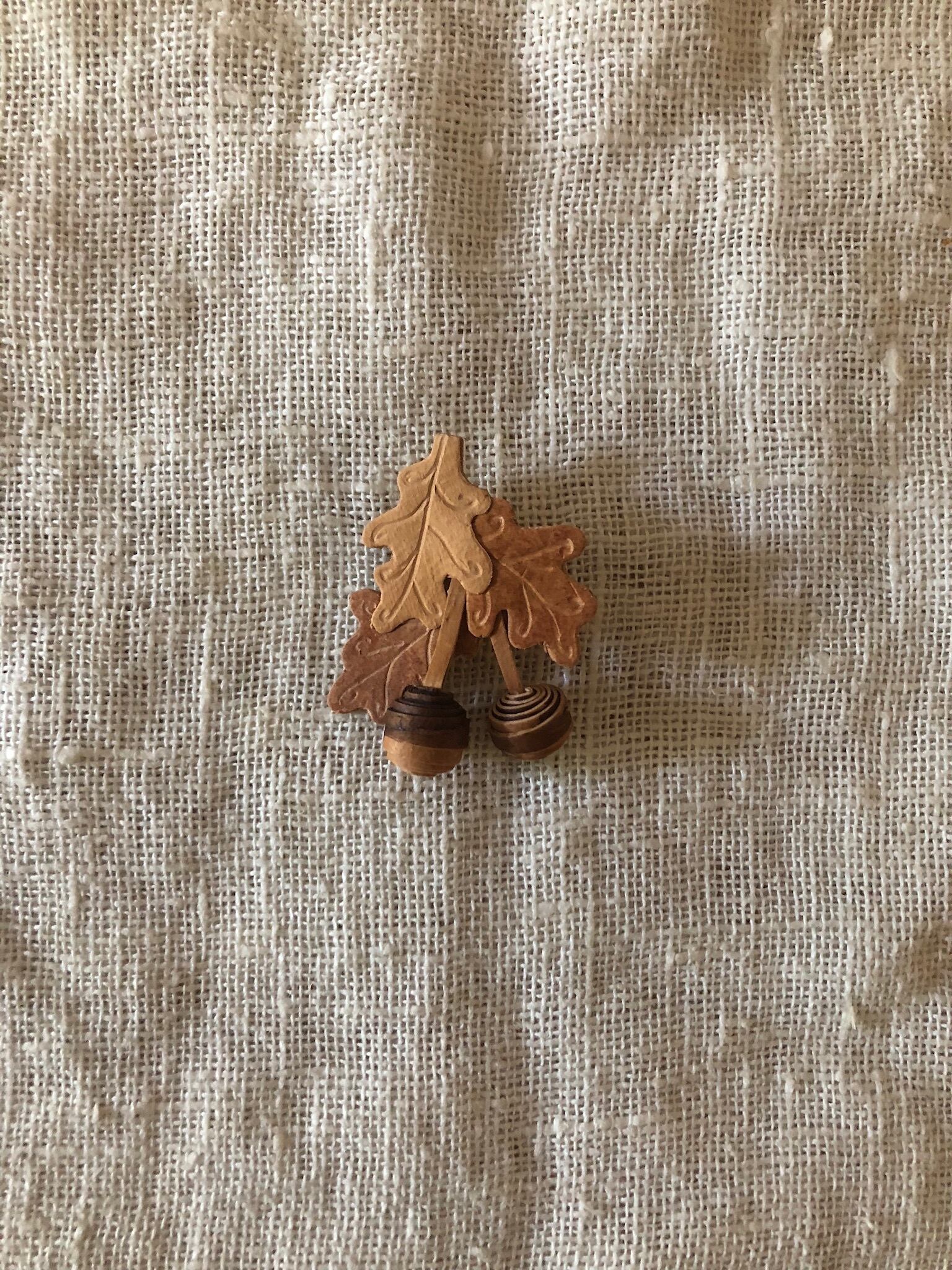 ロシアの白樺作家さんが作った、どんぐりの形をした白樺のブローチになります。