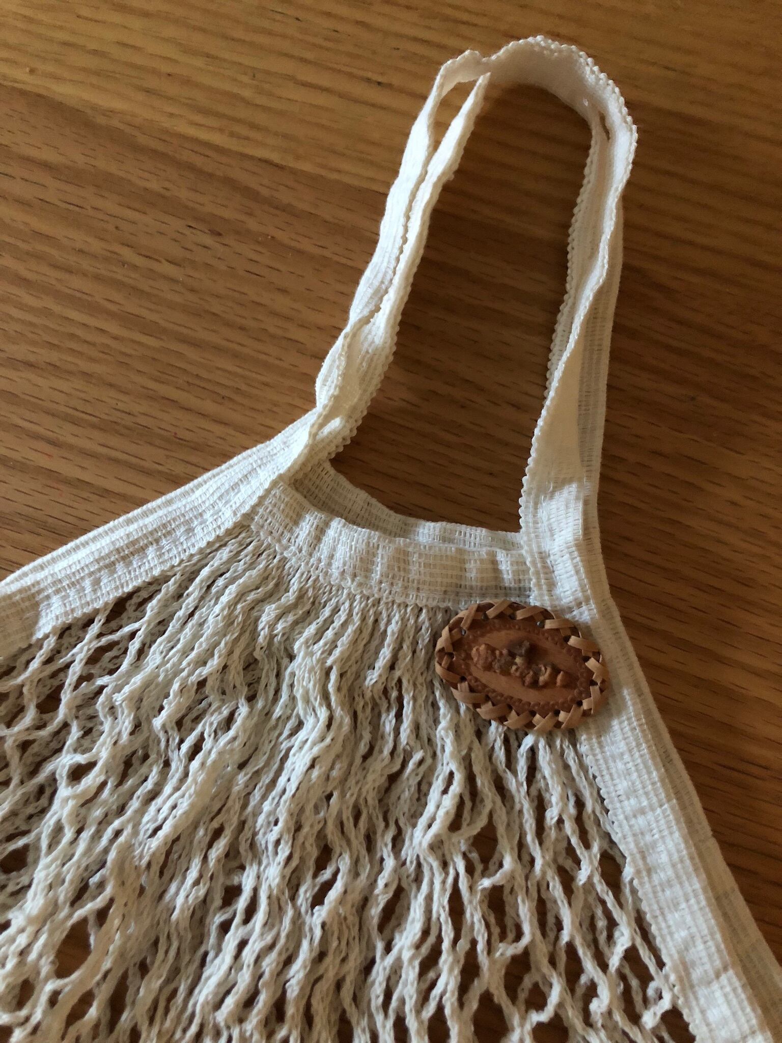 白樺の樹皮を重ねて作られた可愛いらしい楕円型のブローチ。縁かがりがまたポイント♫