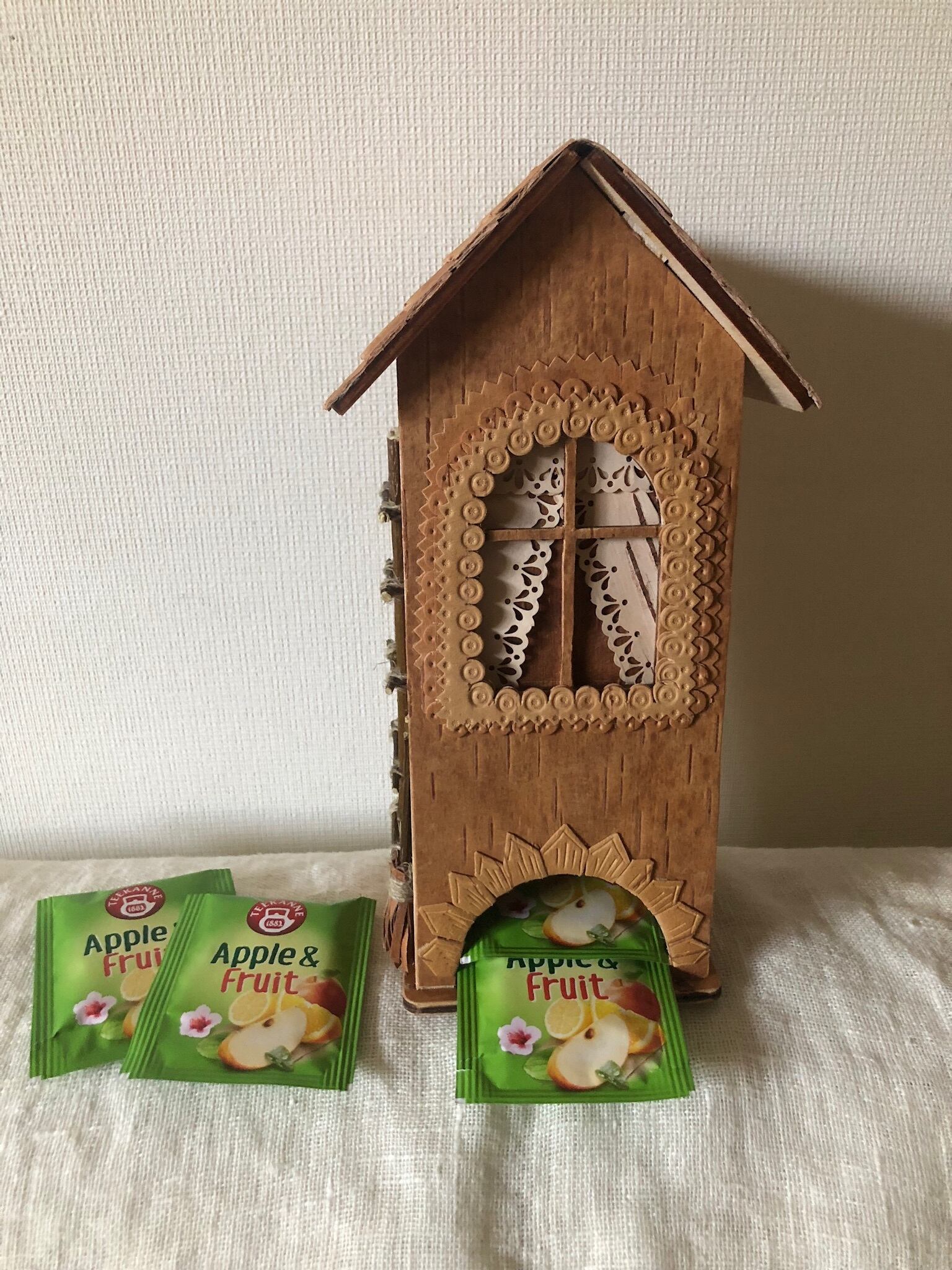 屋根がフタになっていて、ティーバッグを入れると、白樺のおうちの入り口からティーバッグが取り出せる作りになっています。