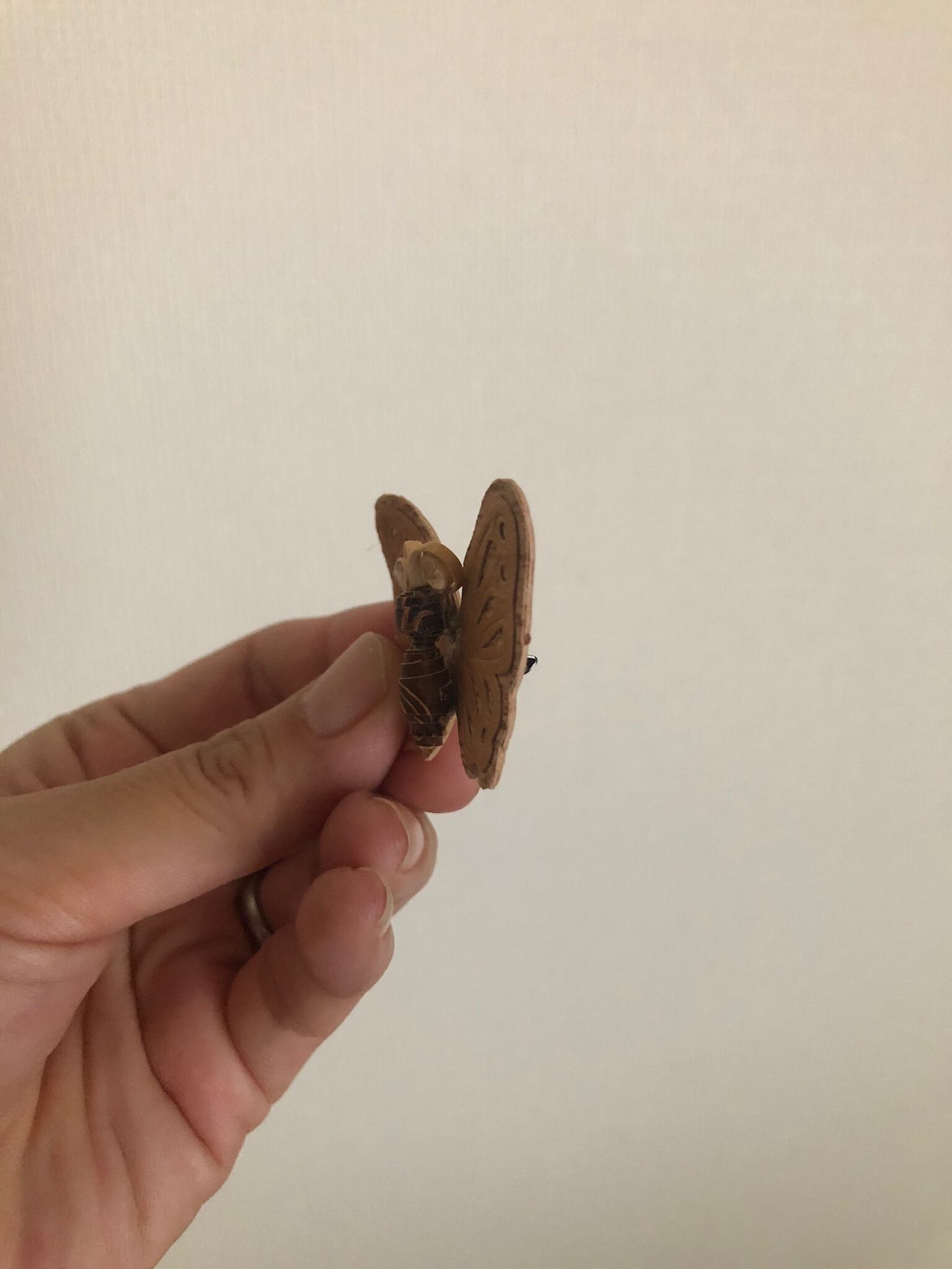 白樺の樹皮を重ねて作られた可愛いらしいちょうちょのブローチ。